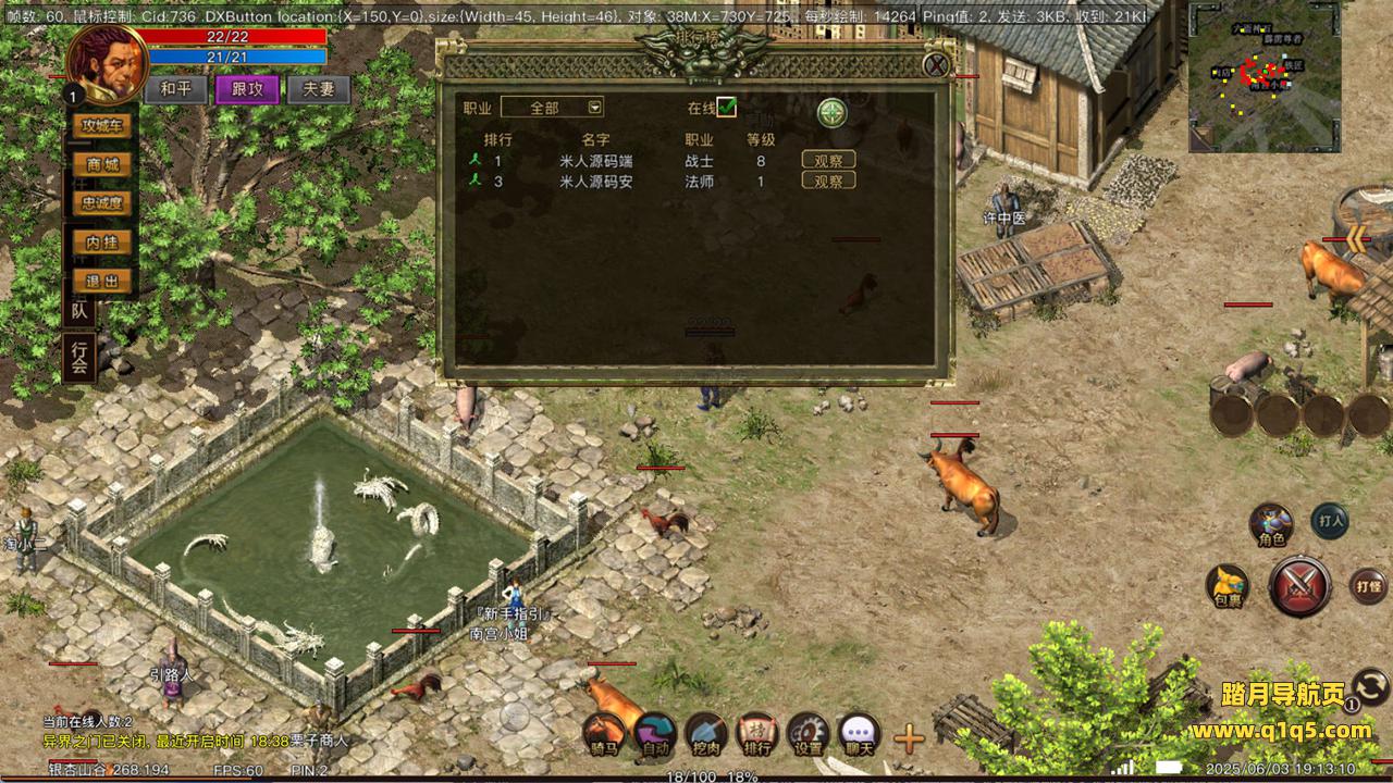 下面我们先来测试下手机安卓的功能。在进入PC里测试具体游戏里的功能。好了,其他功能就自行测试吧。更多的游戏资源可以访问www.q1q5.com下载,我们每款游戏资源均单独制作了独立的视频架设教程。让小白也可以快速上手游戏架设,快来体验自己做GM的乐趣吧!