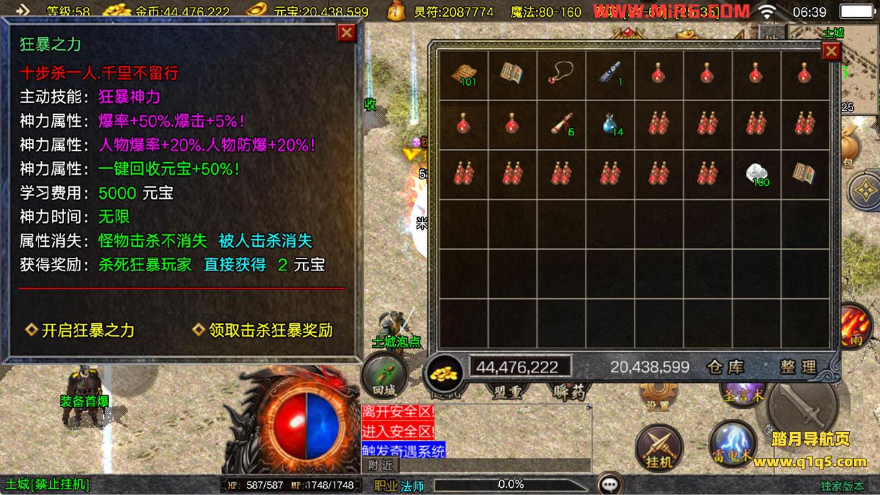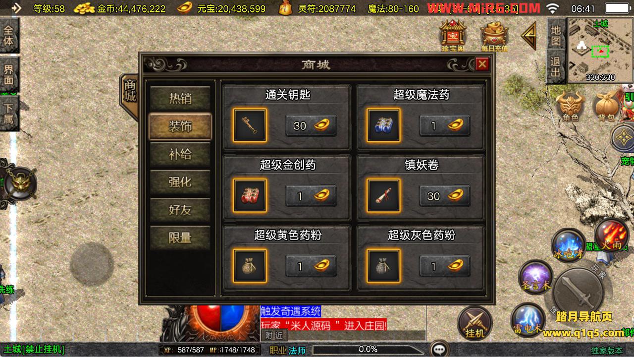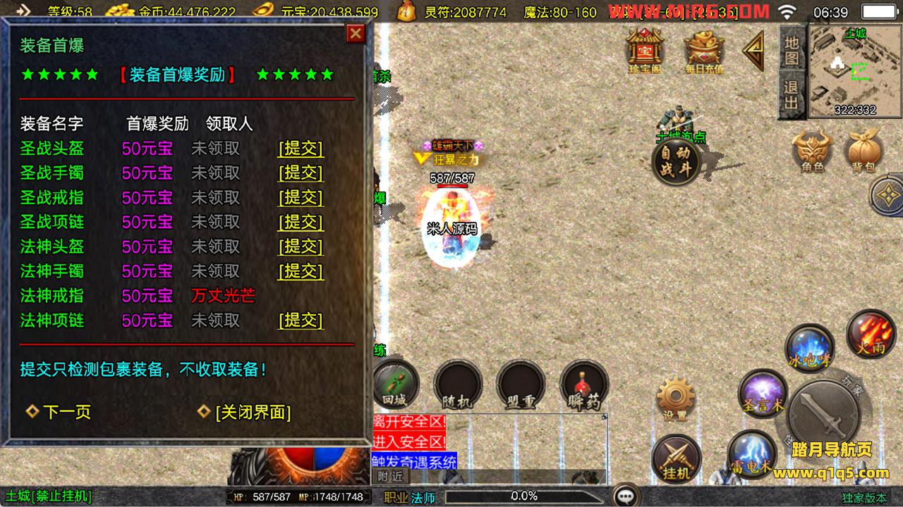 下面我们开始测试下游戏里的功能看看。好了,其他功能就自行测试吧。更多的游戏资源可以访问www.q1q5.com下载,我们每款游戏资源均单独制作了独立的视频架设教程,让小白也可以快速上手游戏架设,快来体验自己做GM的乐趣吧!