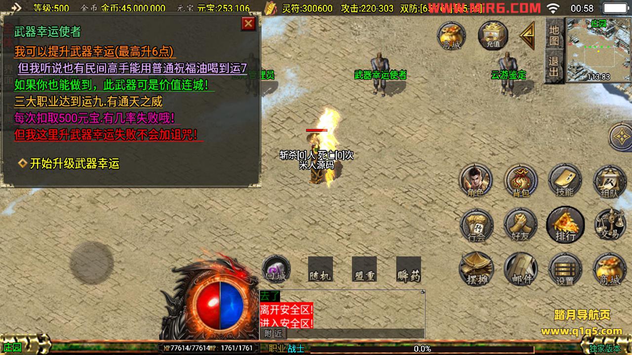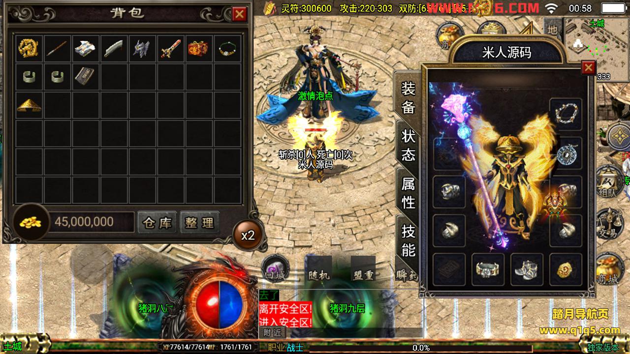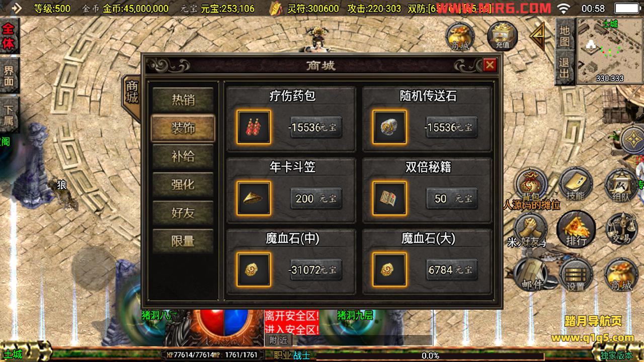 下面我们去测试下游戏里的功能吧。好了,其他功能就自行测试吧。更多的游戏资源可以访问www.q1q5.com下载,我们每款游戏资源均单独制作的有独立视频架设教程,让小白也可以快速上手游戏架设,快来体验自己做GM的乐趣吧!