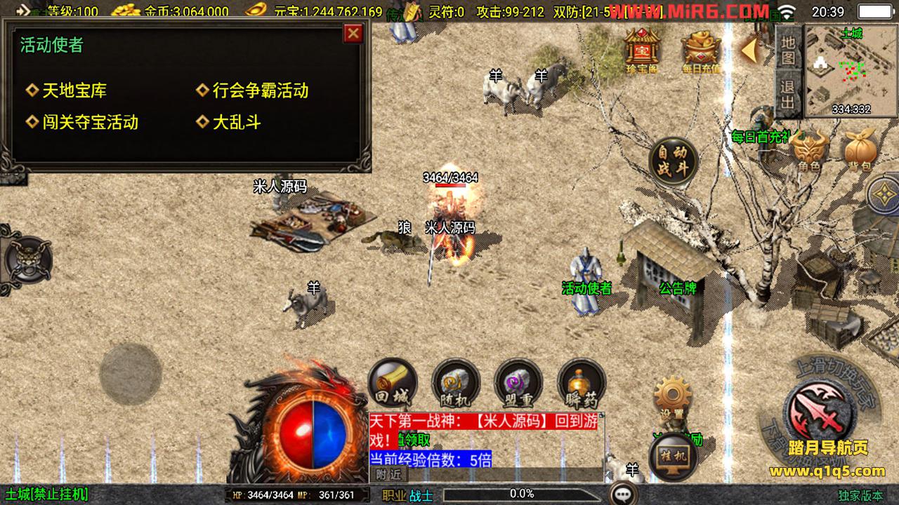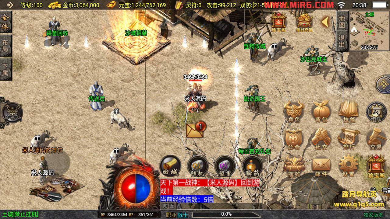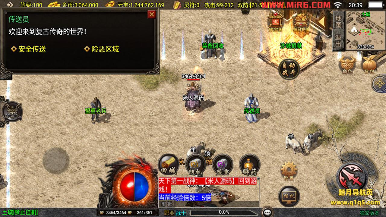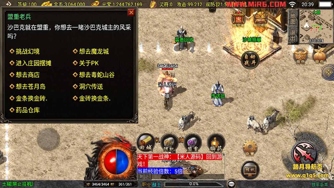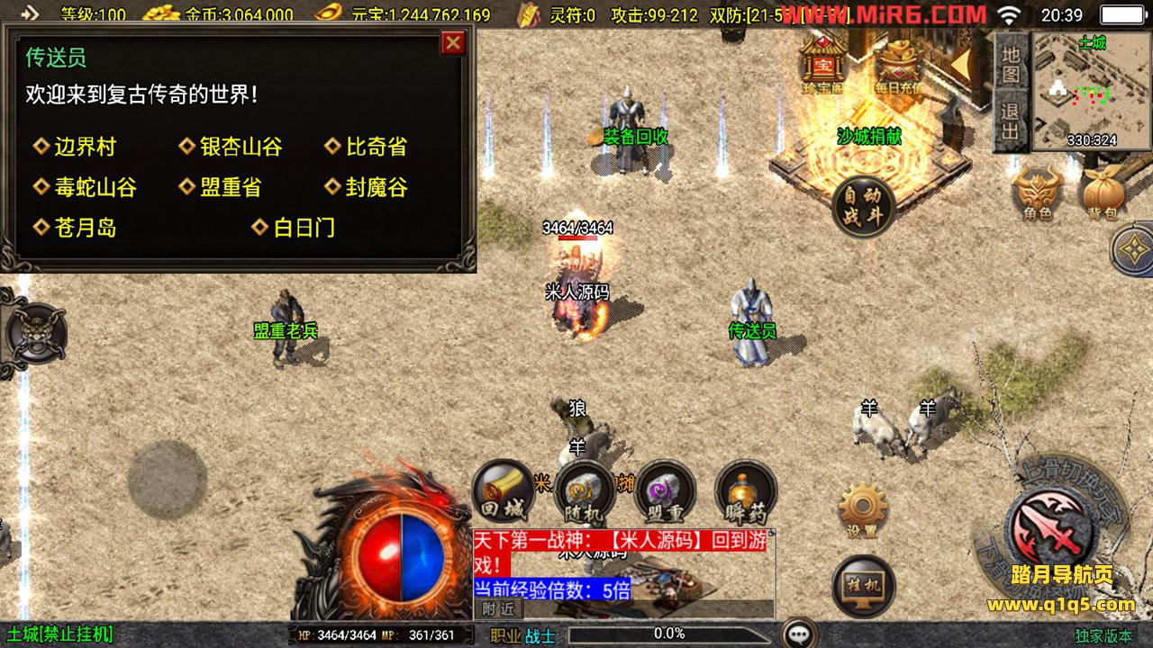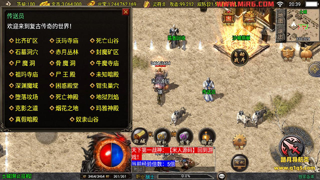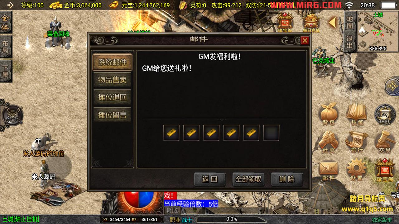 下面我们来测试下游戏里的功能。好了,其他功能自行测试吧。更多的游戏资源请访问www.q1q5.com下载,我们每款游戏资源均单独制作的有视频架设教程,让小白也可以快速上手游戏架设,体验做GM的乐趣!