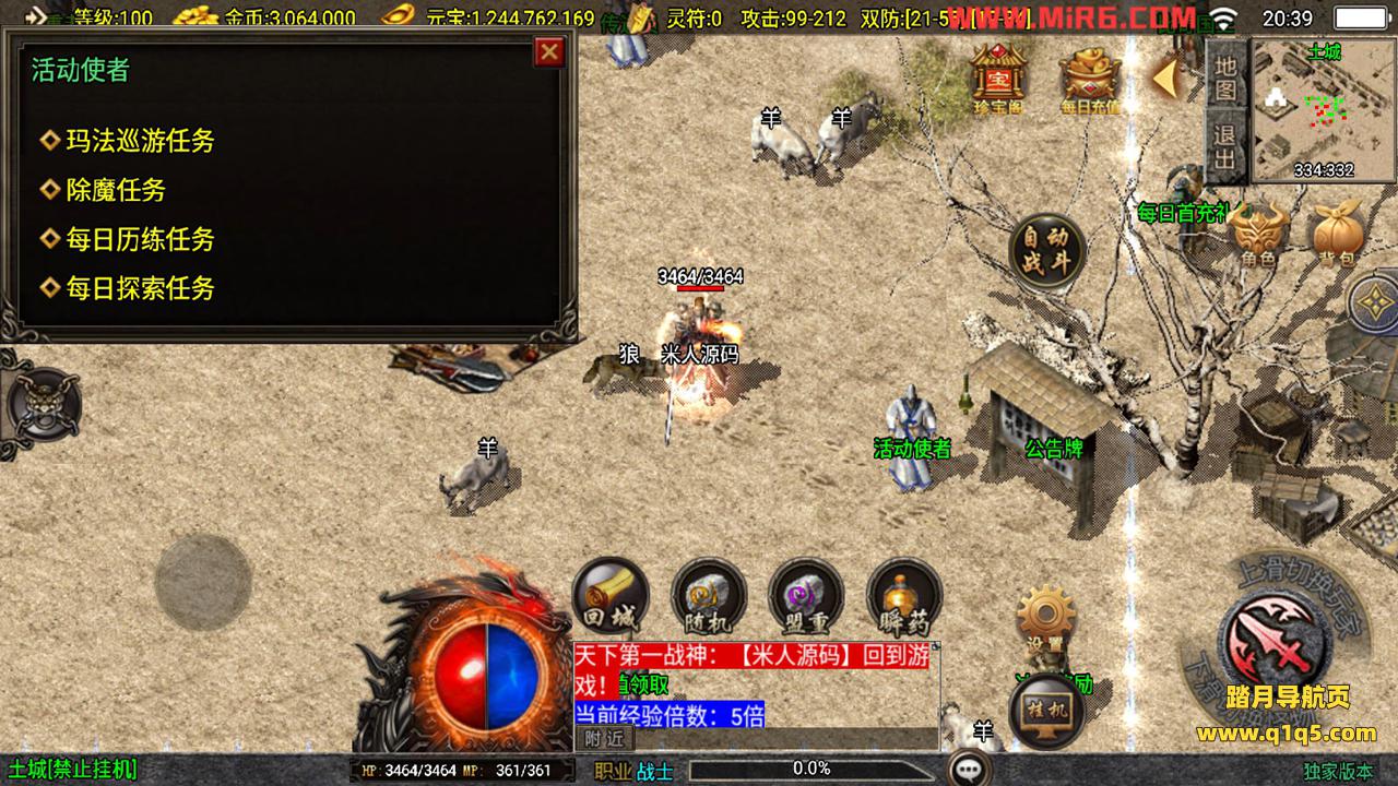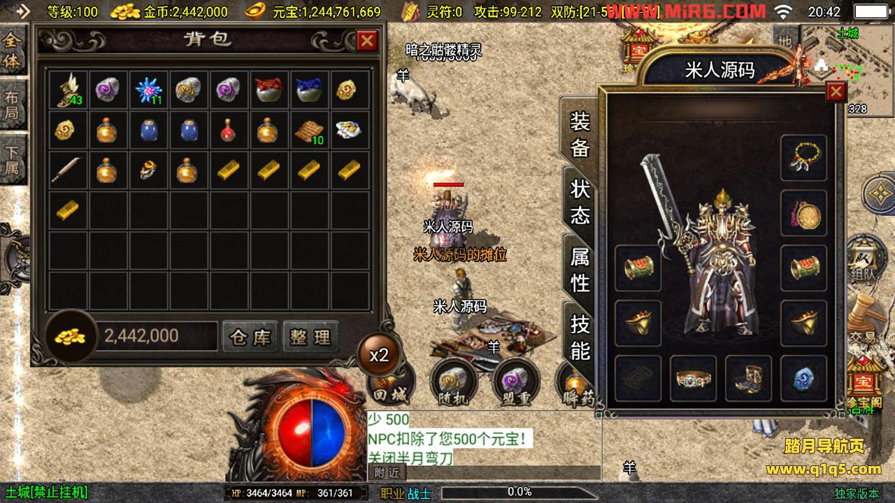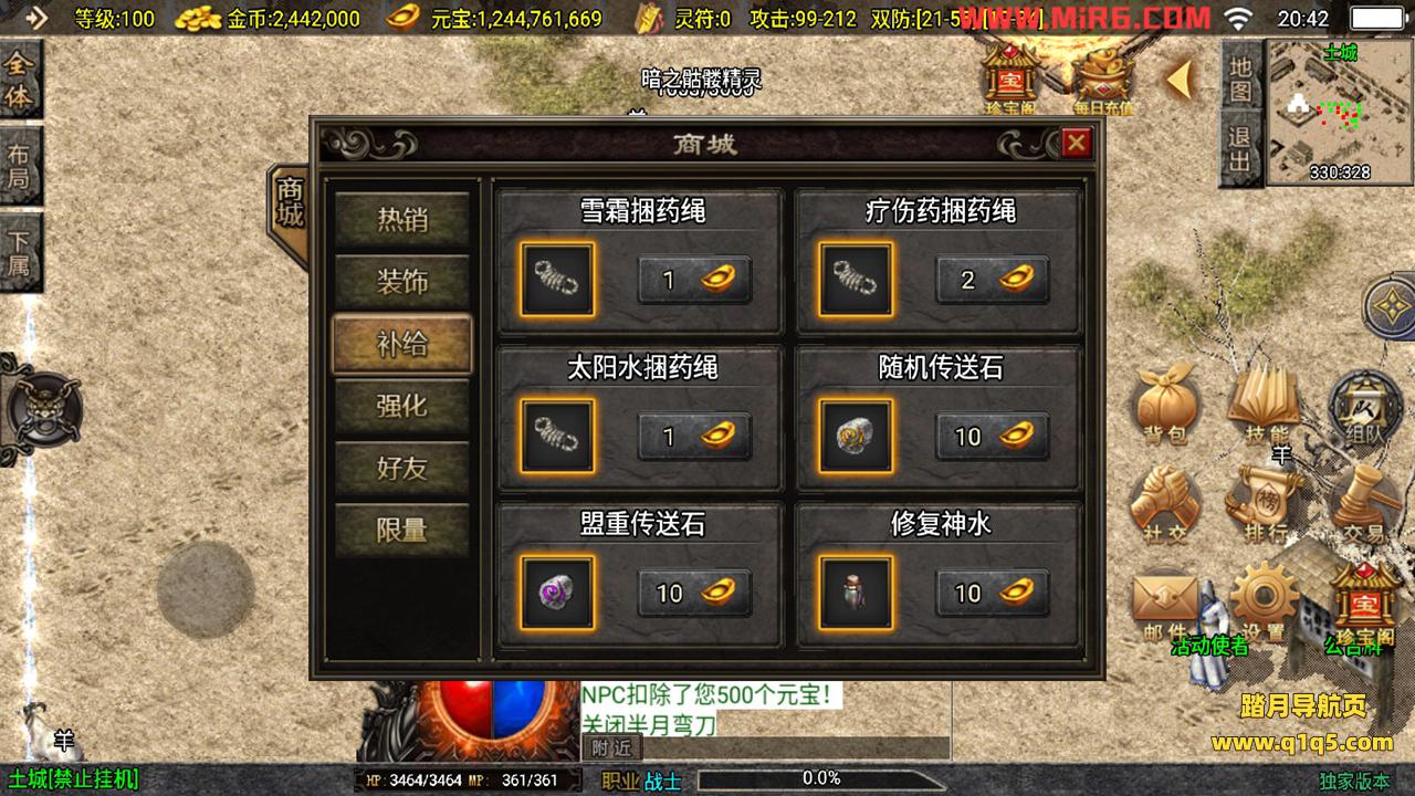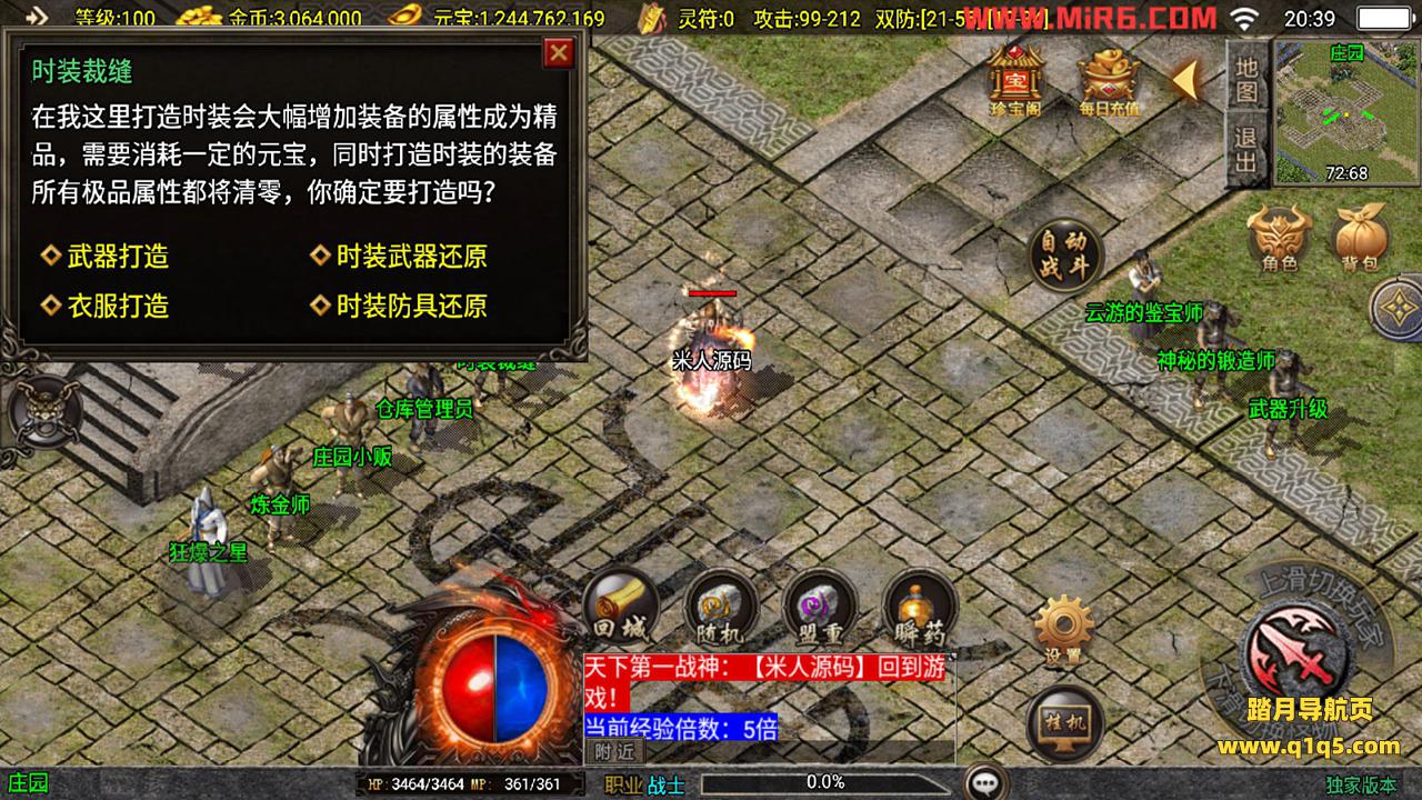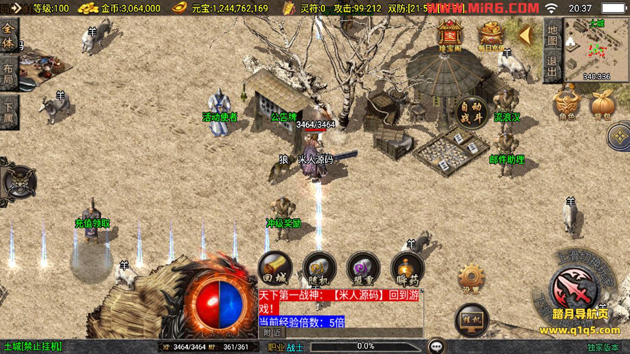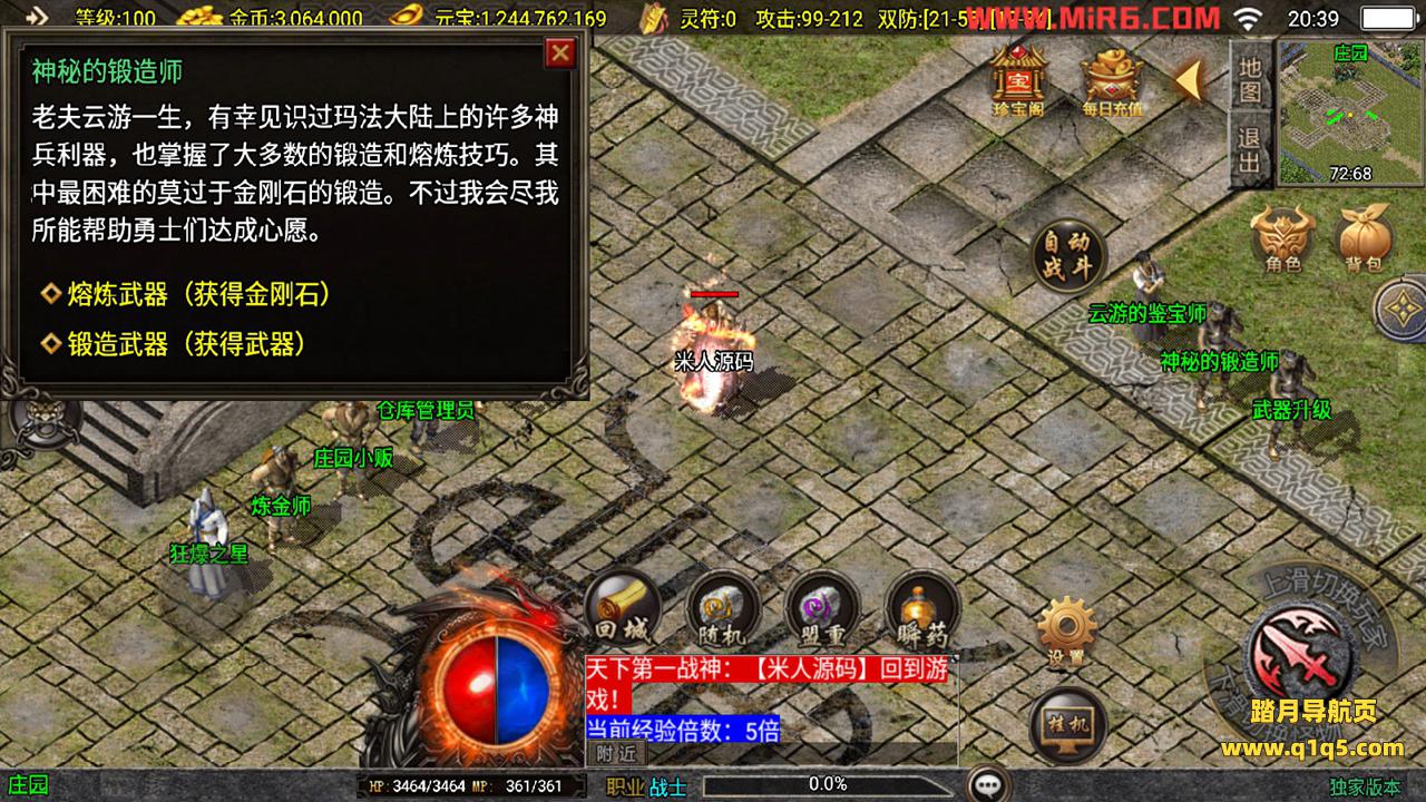 下面我们来测试下游戏里的功能。好了,其他功能自行测试吧。更多的游戏资源请访问www.q1q5.com下载,我们每款游戏资源均单独制作的有视频架设教程,让小白也可以快速上手游戏架设,体验做GM的乐趣!