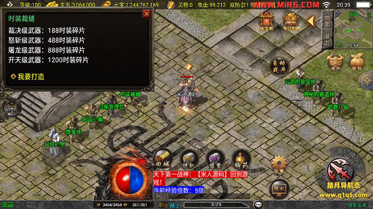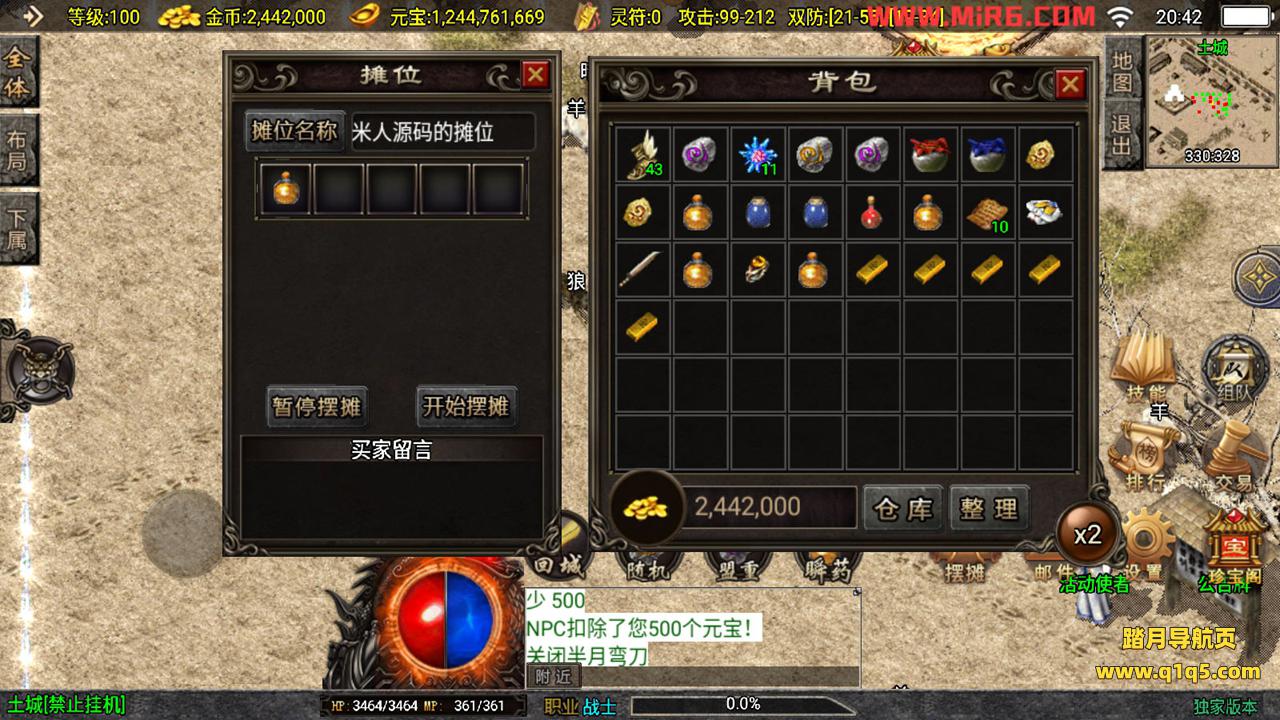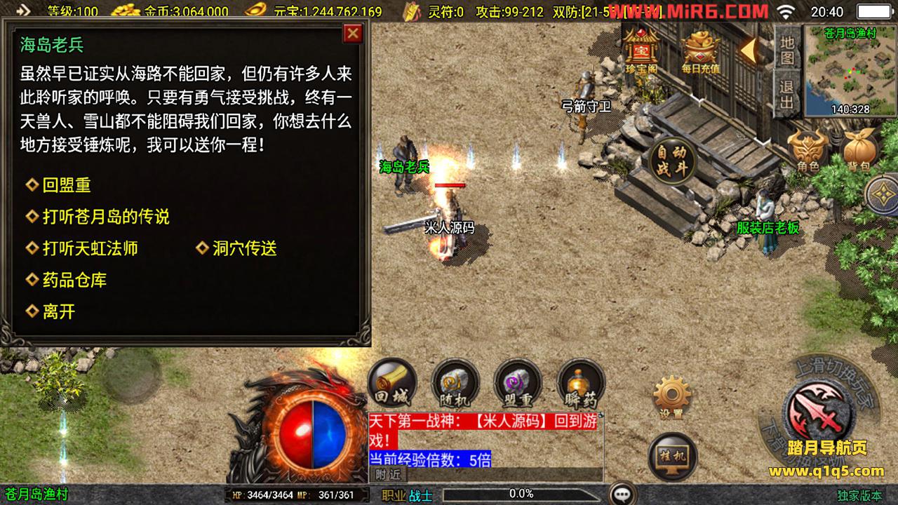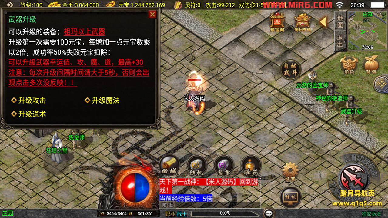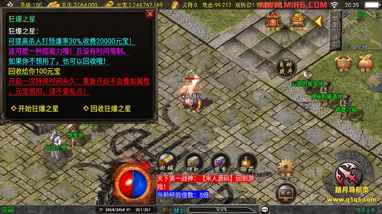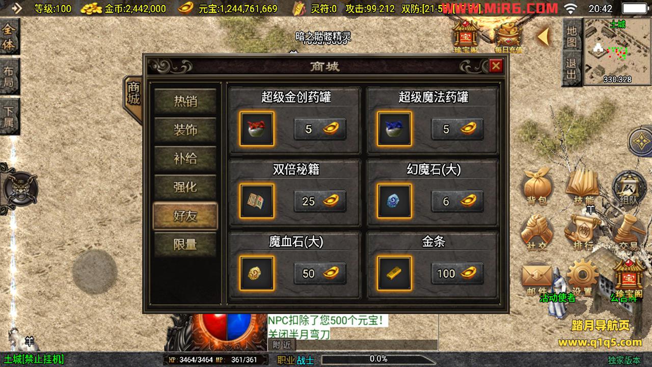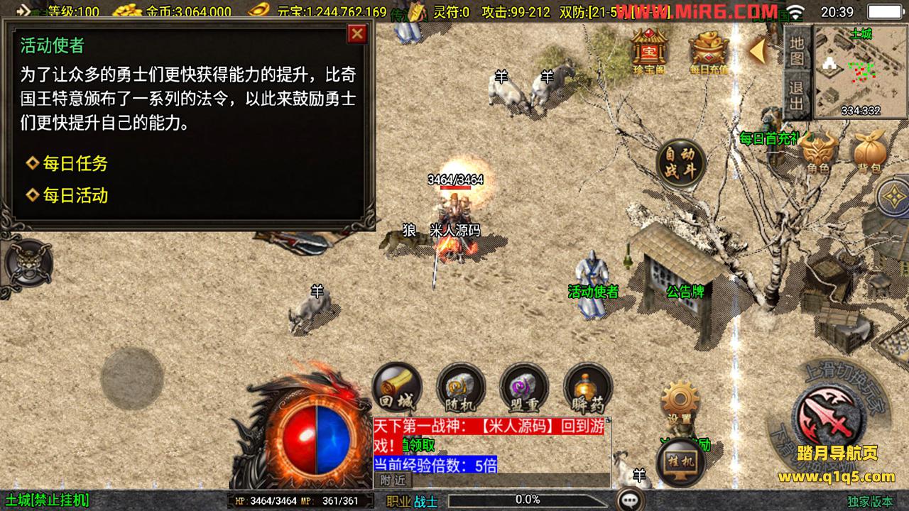 下面我们来测试下游戏里的功能。好了,其他功能自行测试吧。更多的游戏资源请访问www.q1q5.com下载,我们每款游戏资源均单独制作的有视频架设教程,让小白也可以快速上手游戏架设,体验做GM的乐趣!