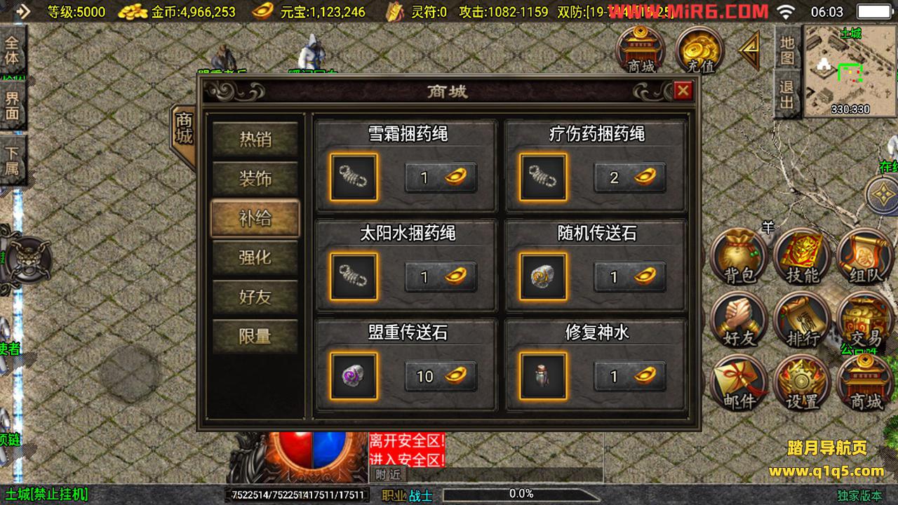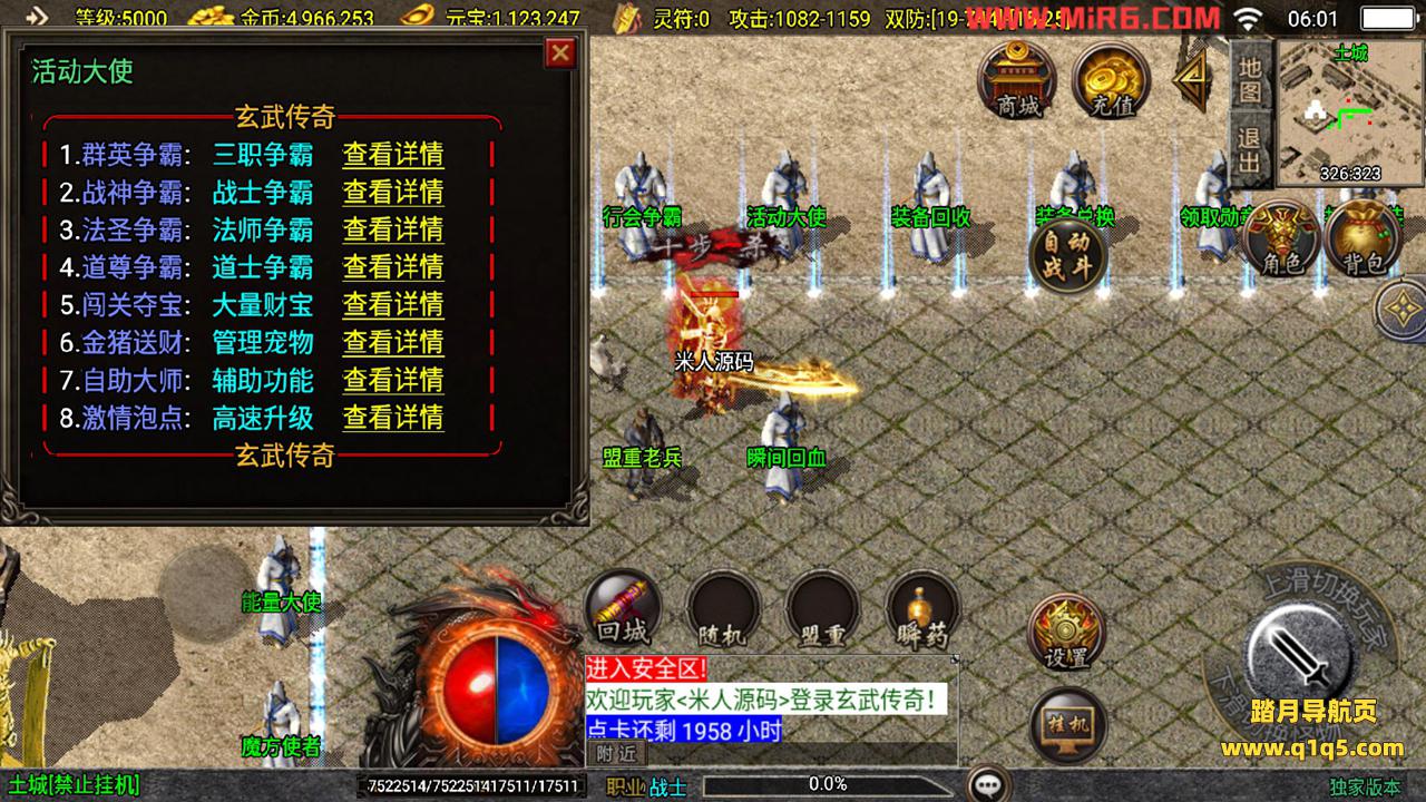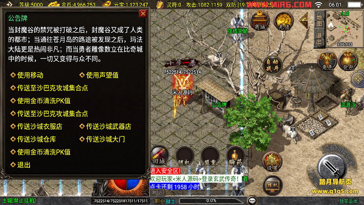 下面我们测试下游戏里的功能。好了,其他功能就自行测试吧。更多的游戏资源可以访问www.q1q5.com下载,我们每款游戏资源均单独制作的有独立视频架设教程,让小白也可以快速上手游戏架设,快来体验自己做GM的乐趣吧!