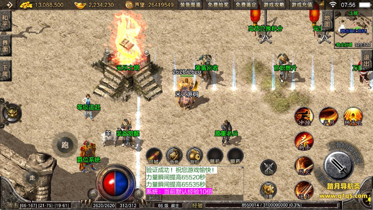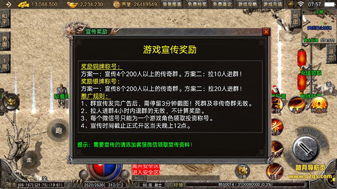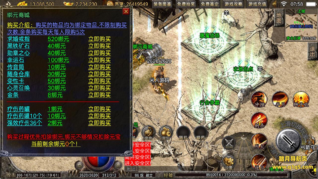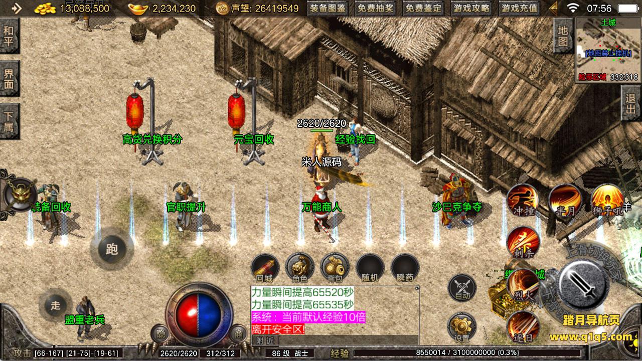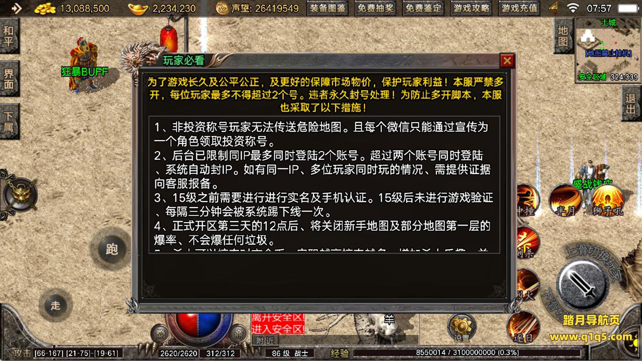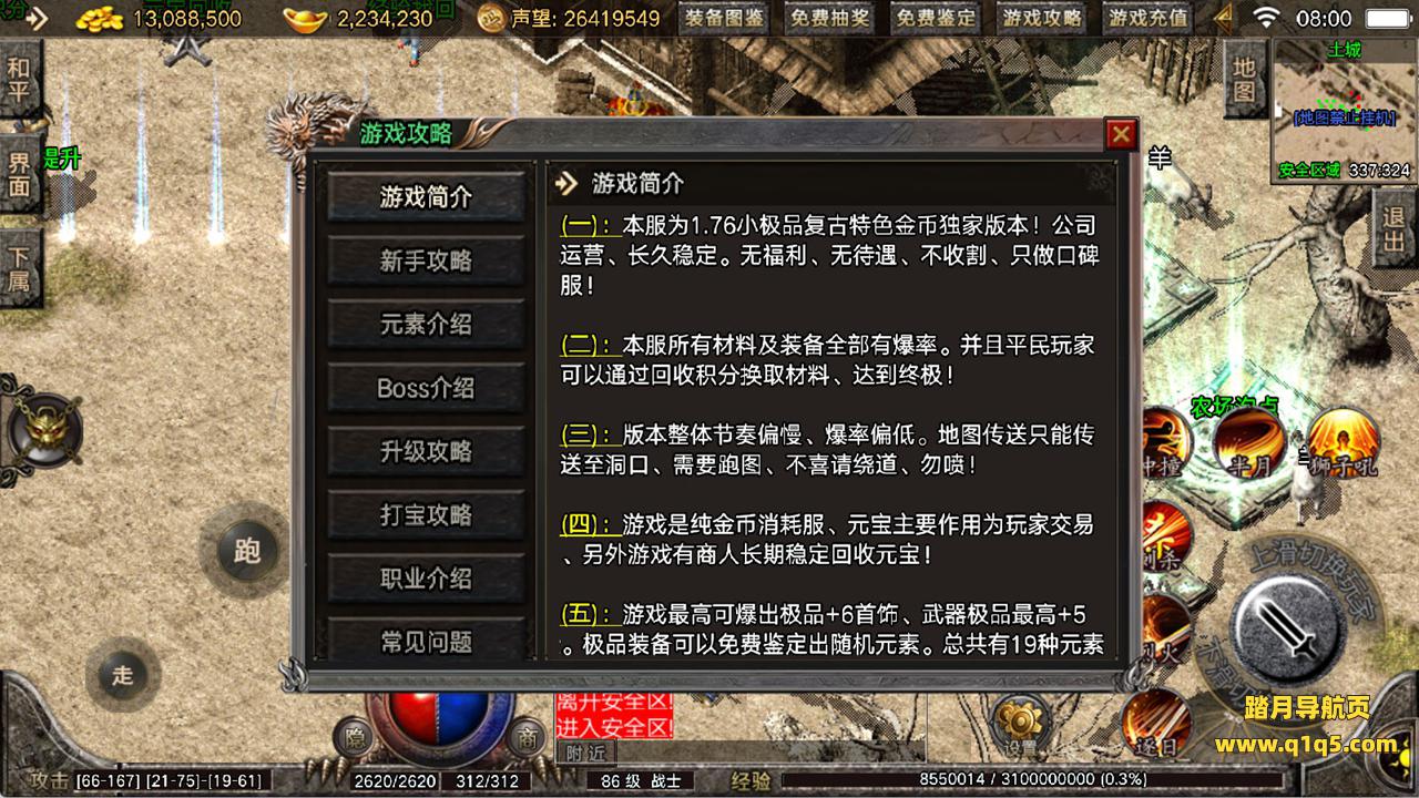 下面我们来测试下游戏里的功能看看。好了,其他功能就自行测试吧。更多的游戏资源可以访问www.q1q5.com下载,我们每款游戏资源均单独制作了独立的视频架设教程,让小白也可以快速上手游戏架设,快来体验自己做GM的乐趣吧!