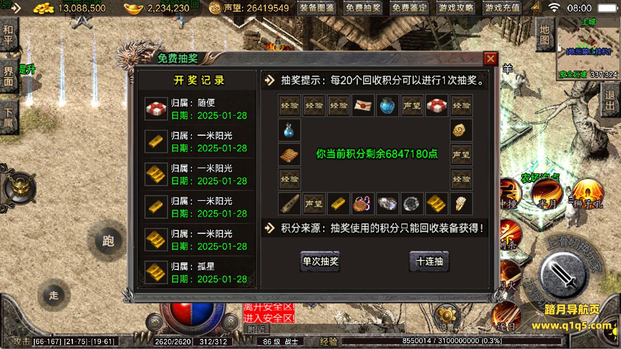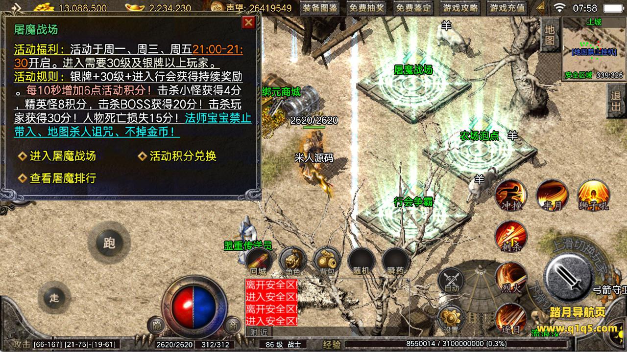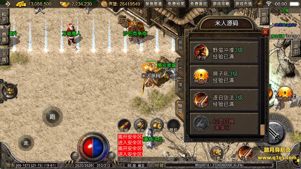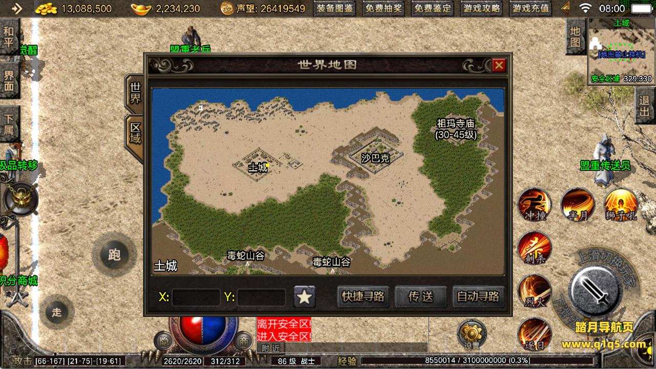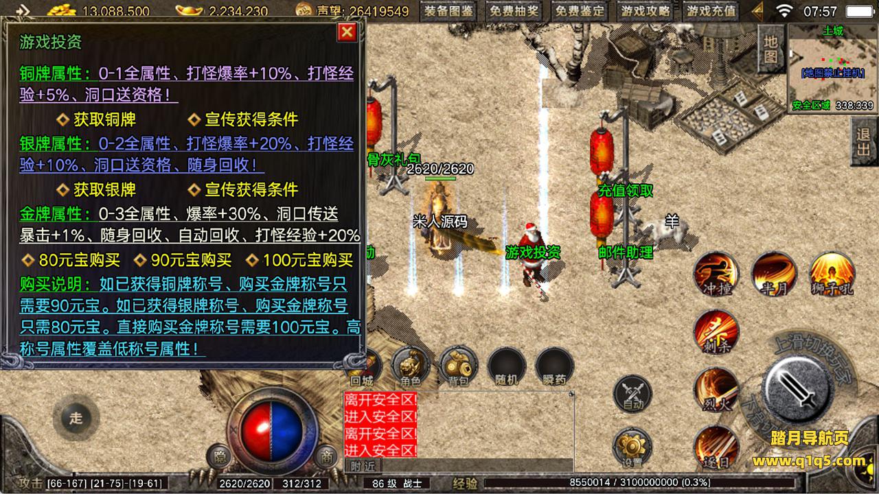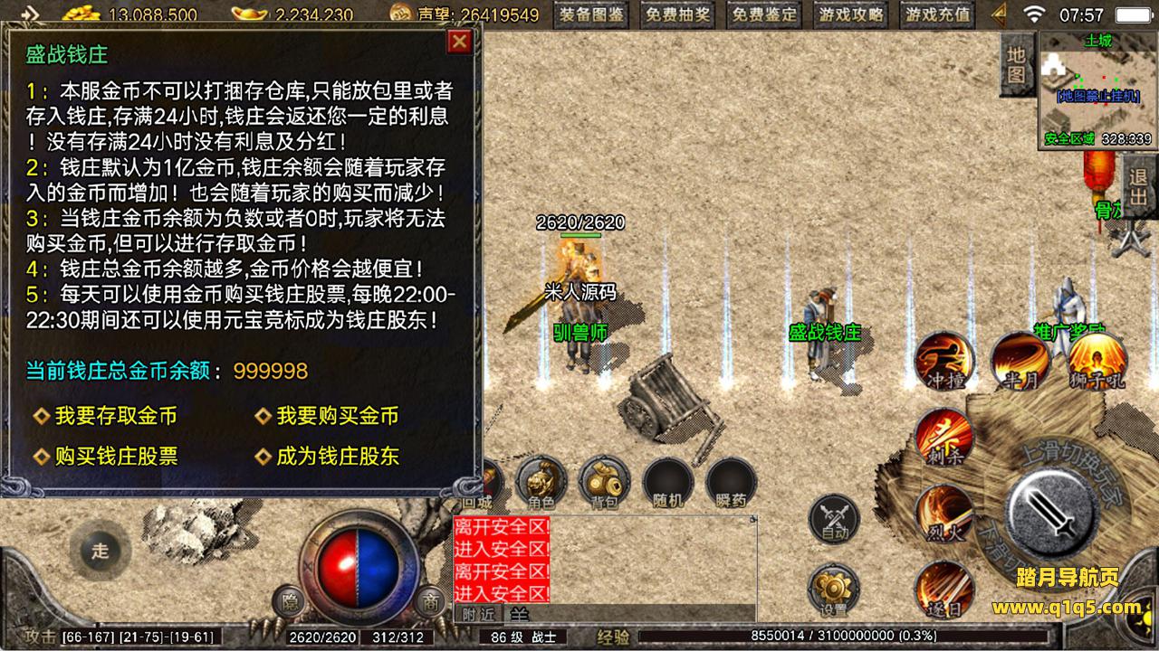 下面我们来测试下游戏里的功能看看。好了,其他功能就自行测试吧。更多的游戏资源可以访问www.q1q5.com下载,我们每款游戏资源均单独制作了独立的视频架设教程,让小白也可以快速上手游戏架设,快来体验自己做GM的乐趣吧!