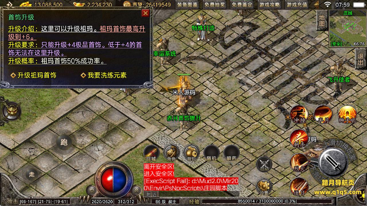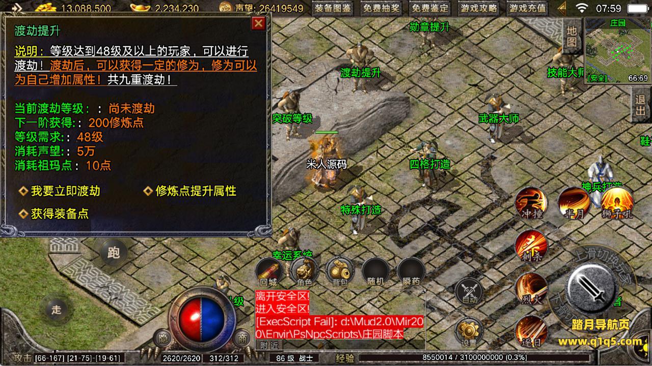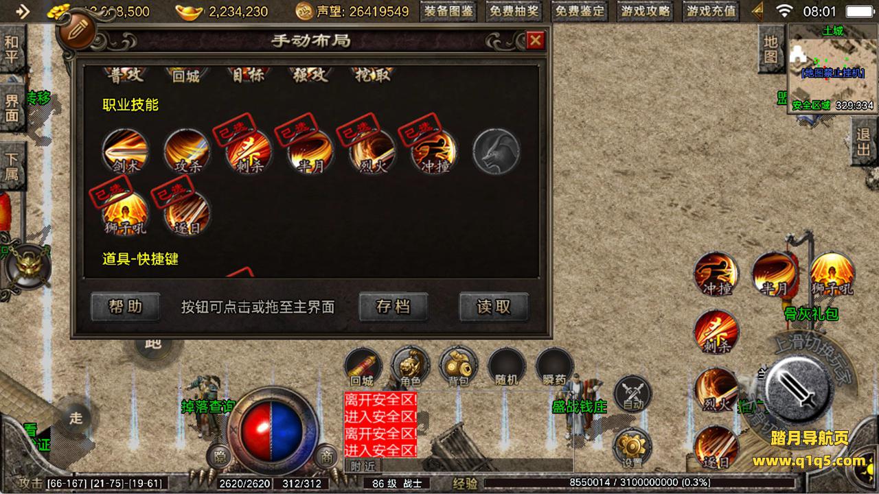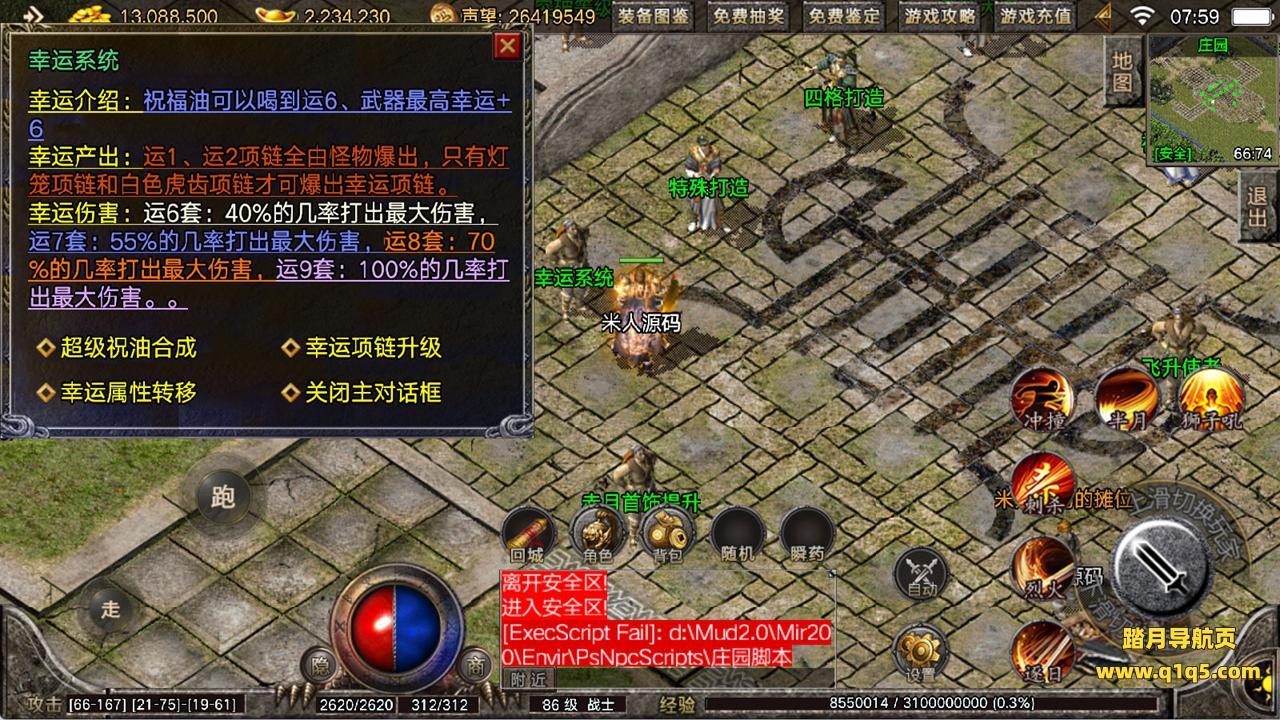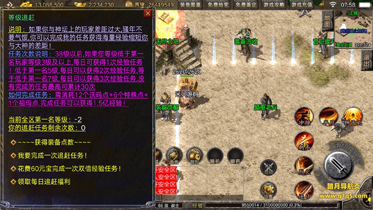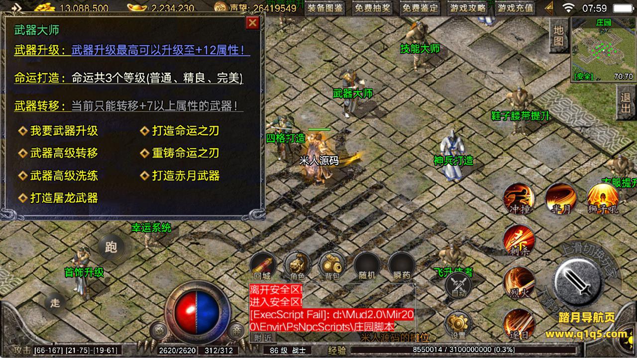 下面我们来测试下游戏里的功能看看。好了,其他功能就自行测试吧。更多的游戏资源可以访问www.q1q5.com下载,我们每款游戏资源均单独制作了独立的视频架设教程,让小白也可以快速上手游戏架设,快来体验自己做GM的乐趣吧!