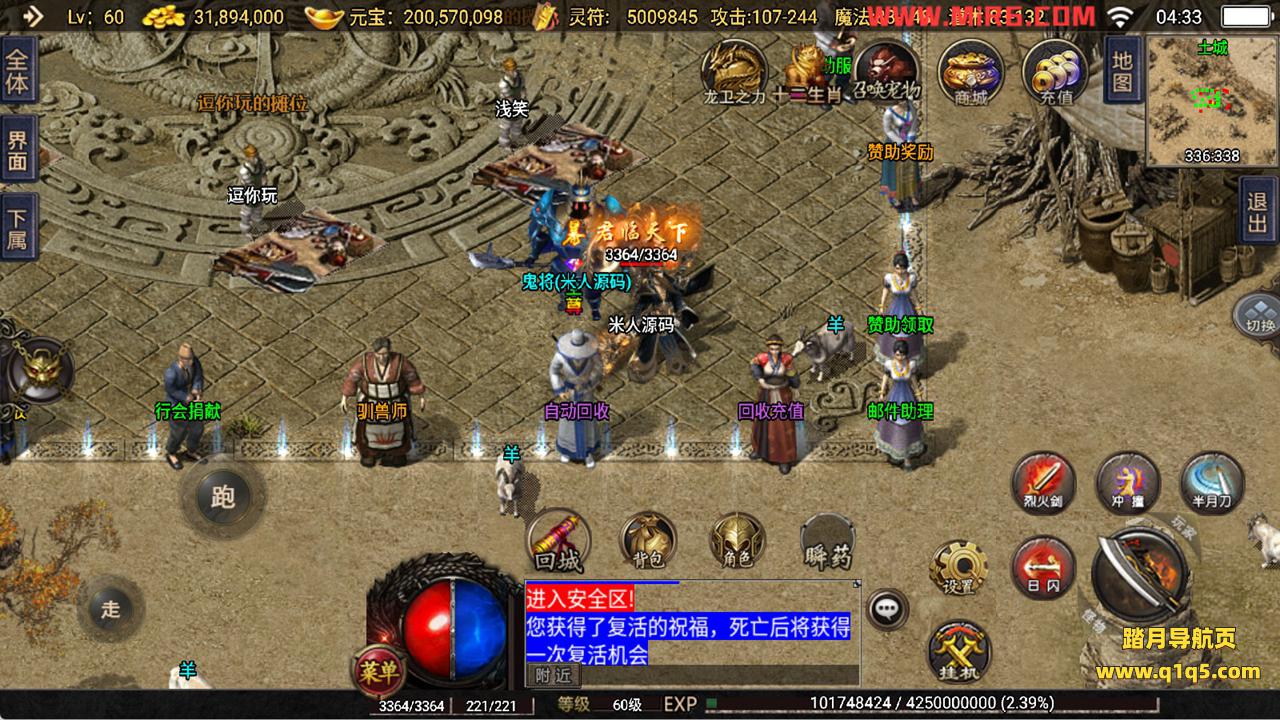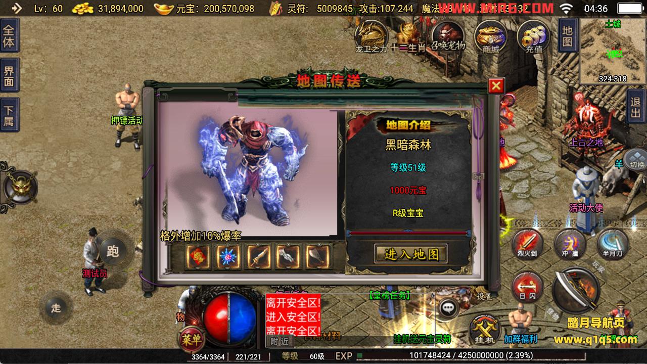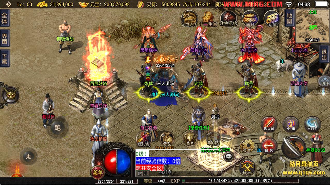 下面我们来测试下游戏里的功能看看吧。好了,其他功能就自行测试吧。更多的游戏资源可以访问www.q1q5.com下载,我们每款游戏资源均单独制作了独立的视频架设教程,让小白也可以快速上手游戏架设,快来体验自己做GM的乐趣吧!