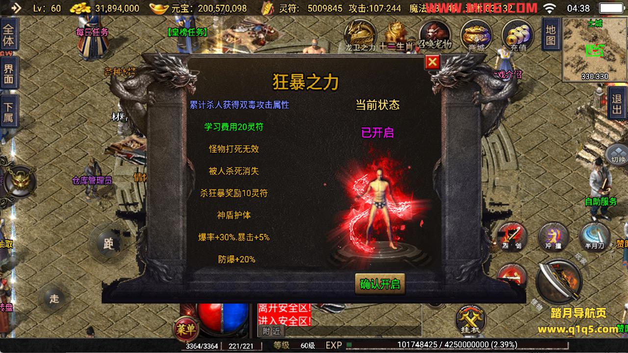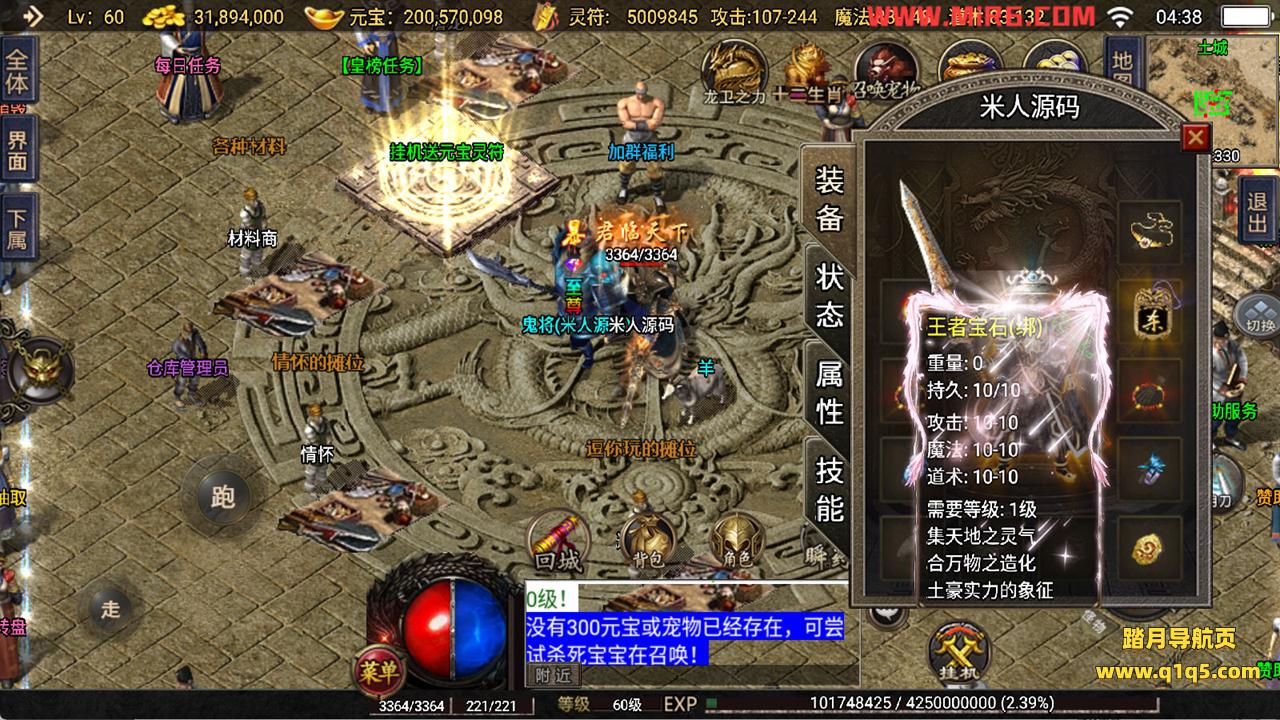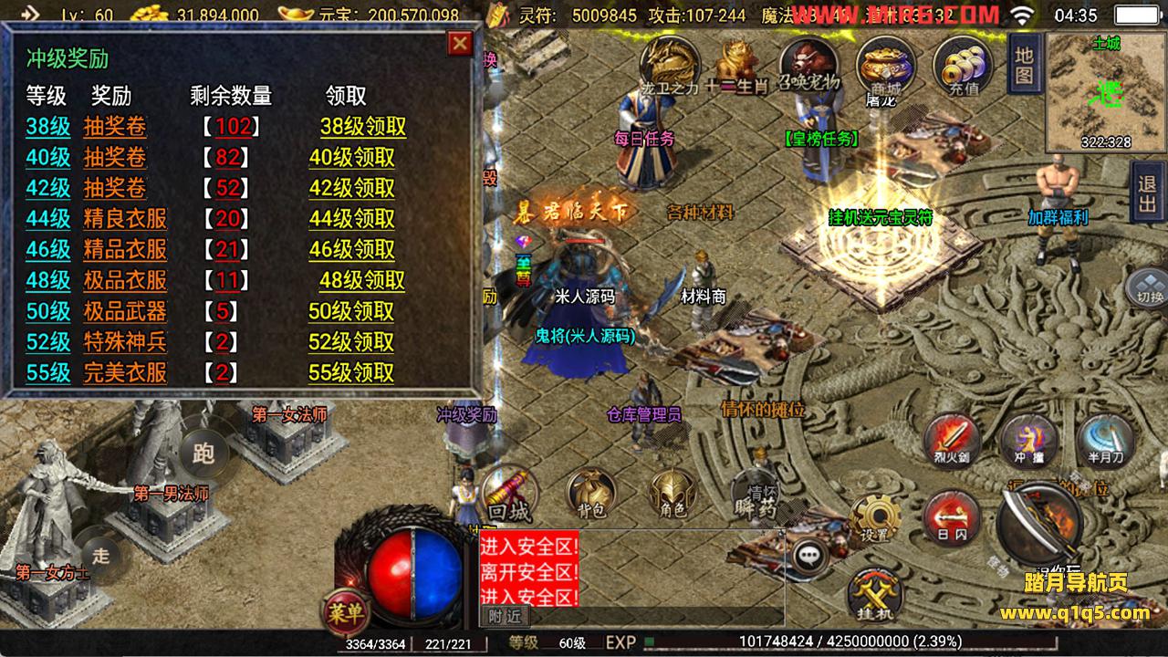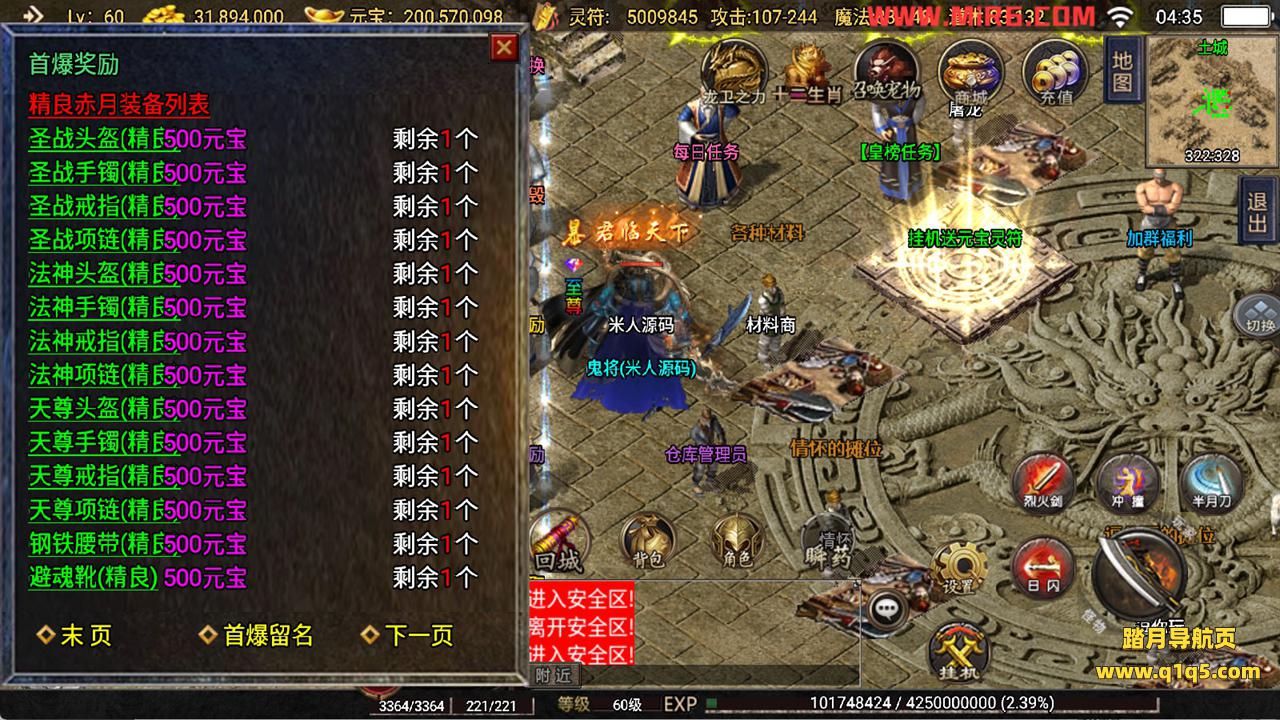 下面我们来测试下游戏里的功能看看吧。好了,其他功能就自行测试吧。更多的游戏资源可以访问www.q1q5.com下载,我们每款游戏资源均单独制作了独立的视频架设教程,让小白也可以快速上手游戏架设,快来体验自己做GM的乐趣吧!