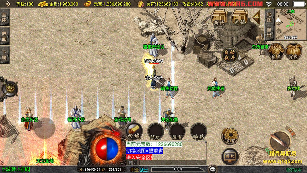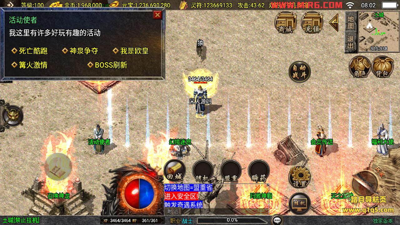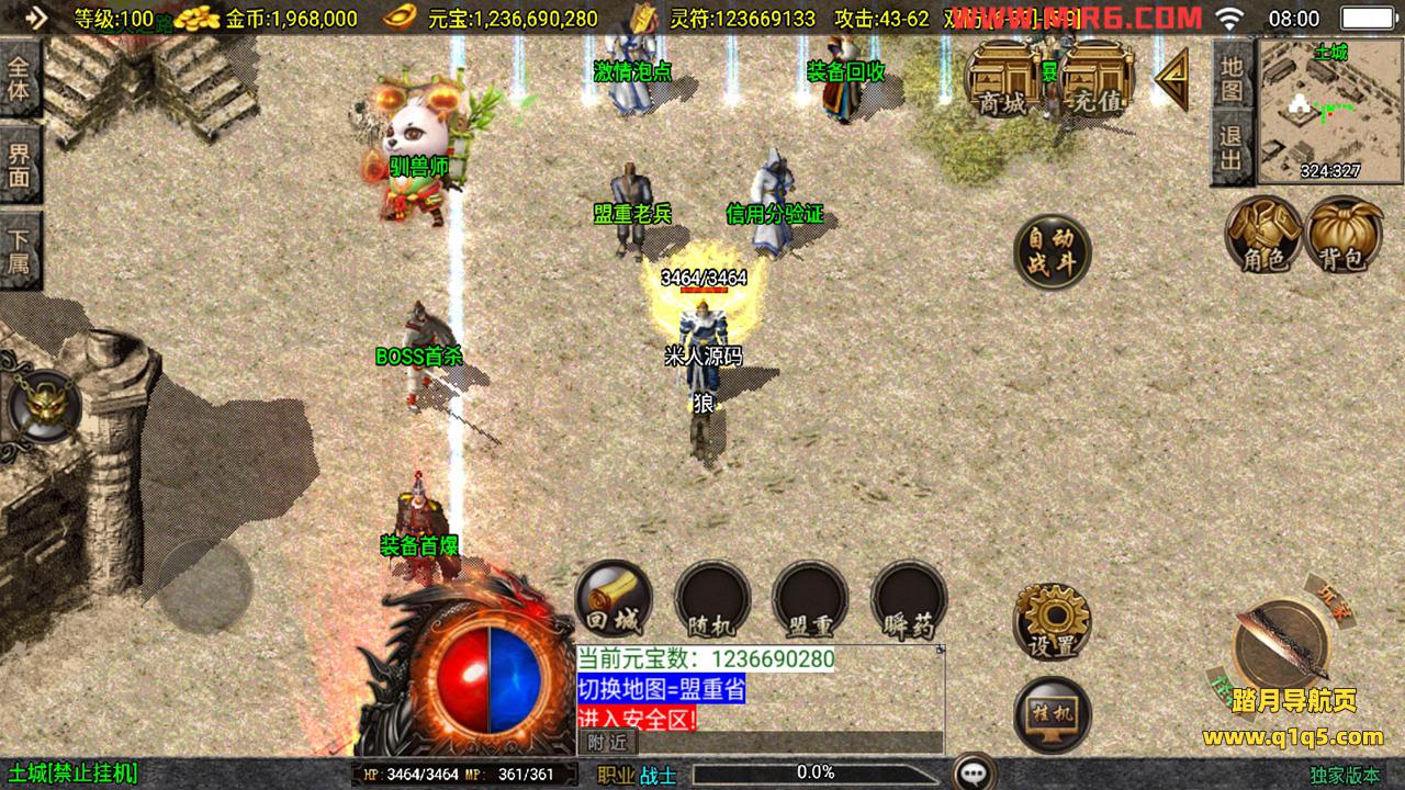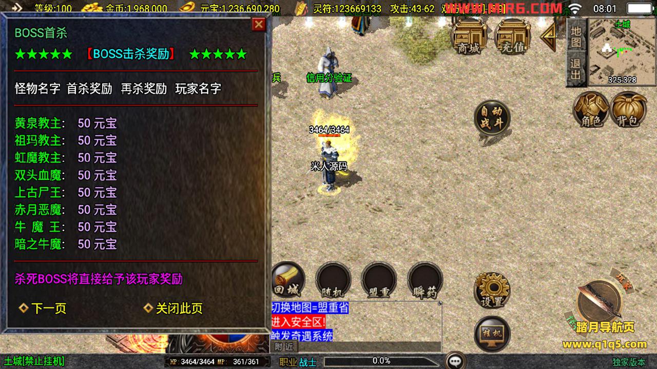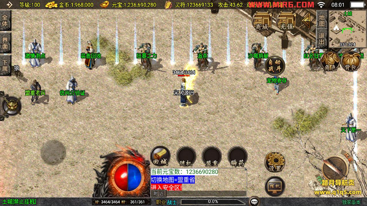 下面我们测试下游戏里的功能。好了,其他功能自行测试吧。更多的游戏资源请访问www.q1q5.com下载,我们每款游戏资源都单独制作的有视频架设教程,让小白也可以快速上手游戏架设,体验做GM的乐趣!