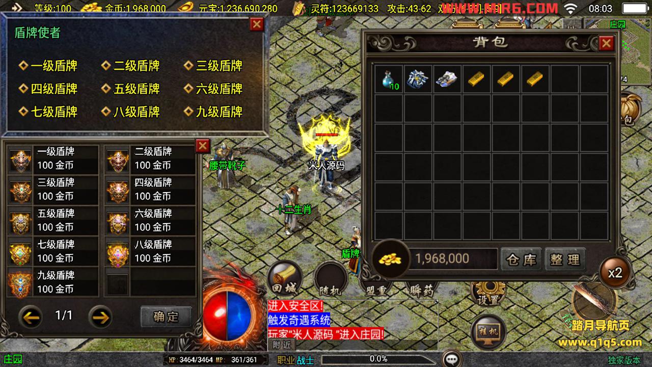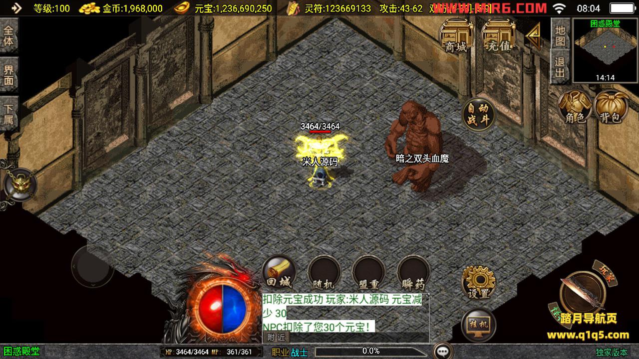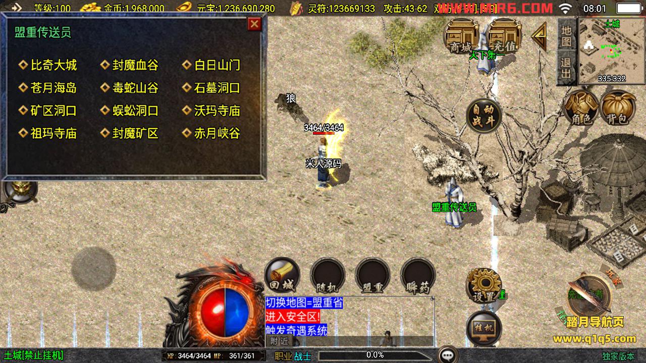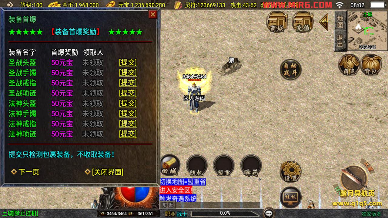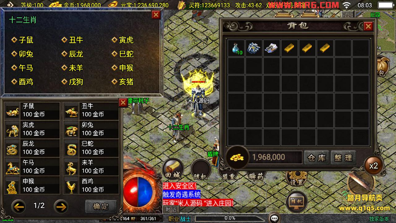 下面我们测试下游戏里的功能。好了,其他功能自行测试吧。更多的游戏资源请访问www.q1q5.com下载,我们每款游戏资源都单独制作的有视频架设教程,让小白也可以快速上手游戏架设,体验做GM的乐趣!