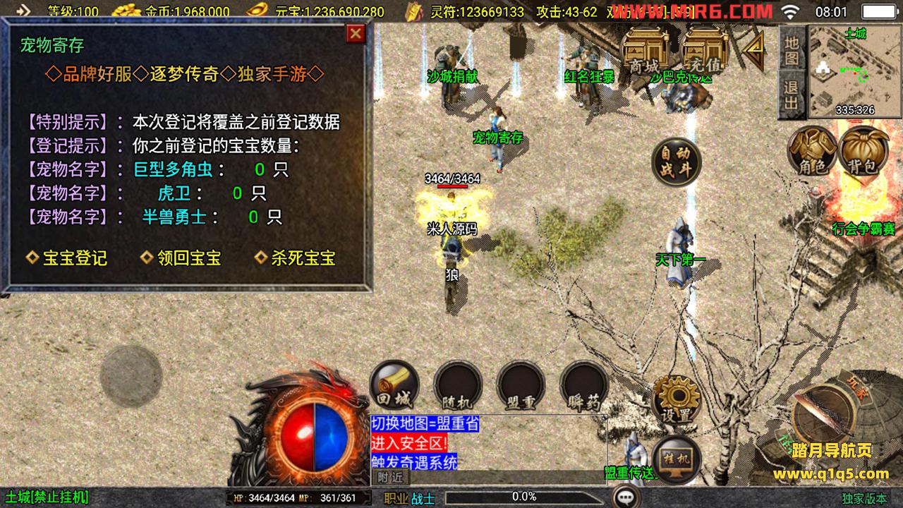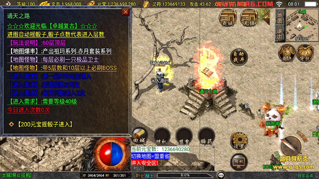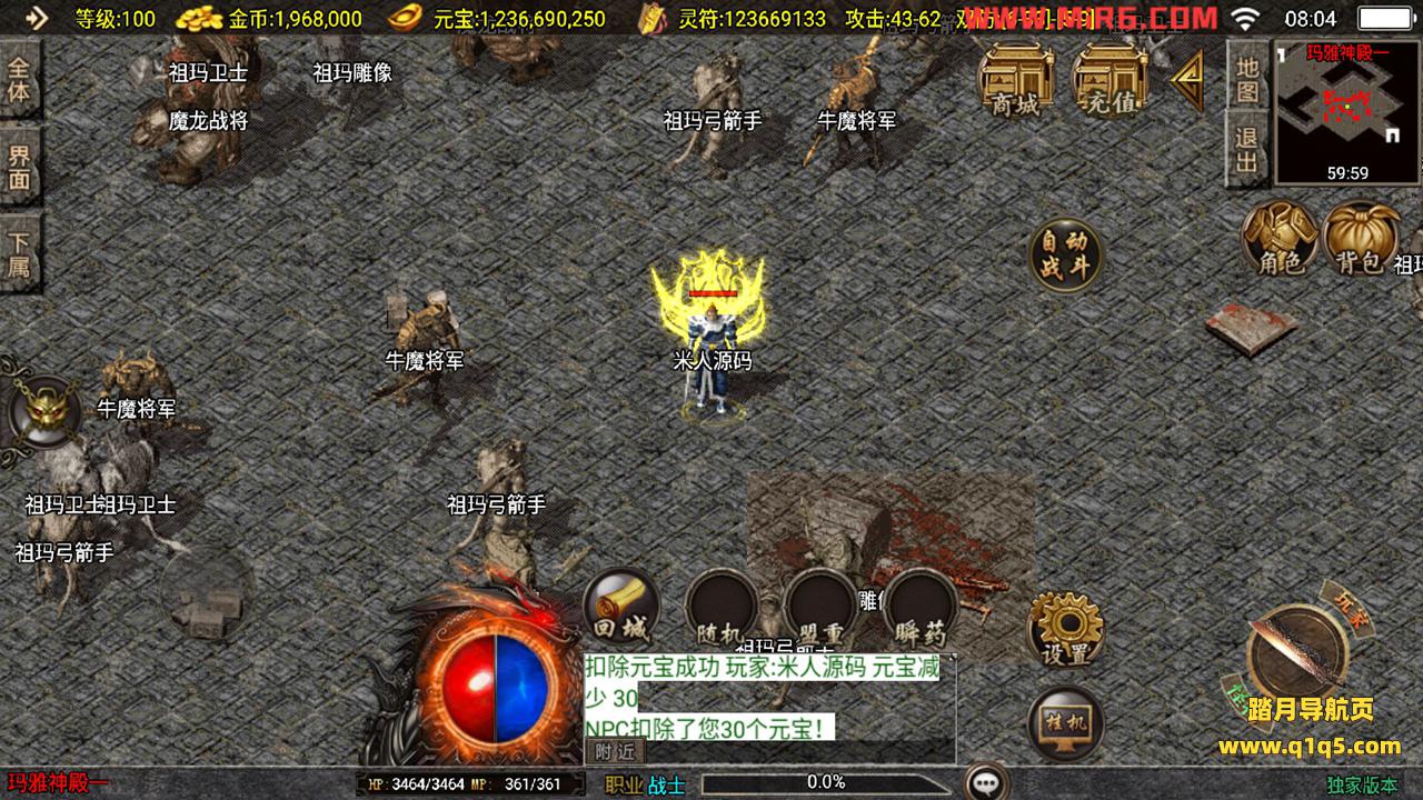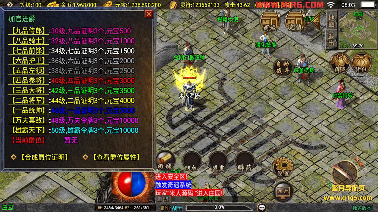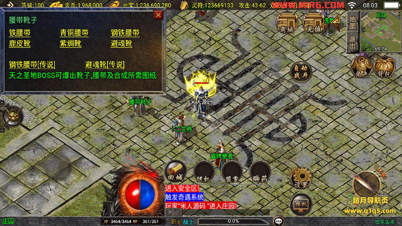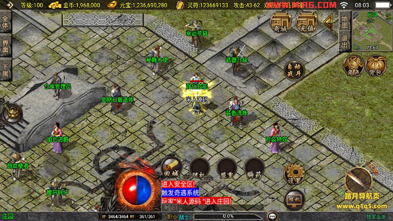 下面我们测试下游戏里的功能。好了,其他功能自行测试吧。更多的游戏资源请访问www.q1q5.com下载,我们每款游戏资源都单独制作的有视频架设教程,让小白也可以快速上手游戏架设,体验做GM的乐趣!