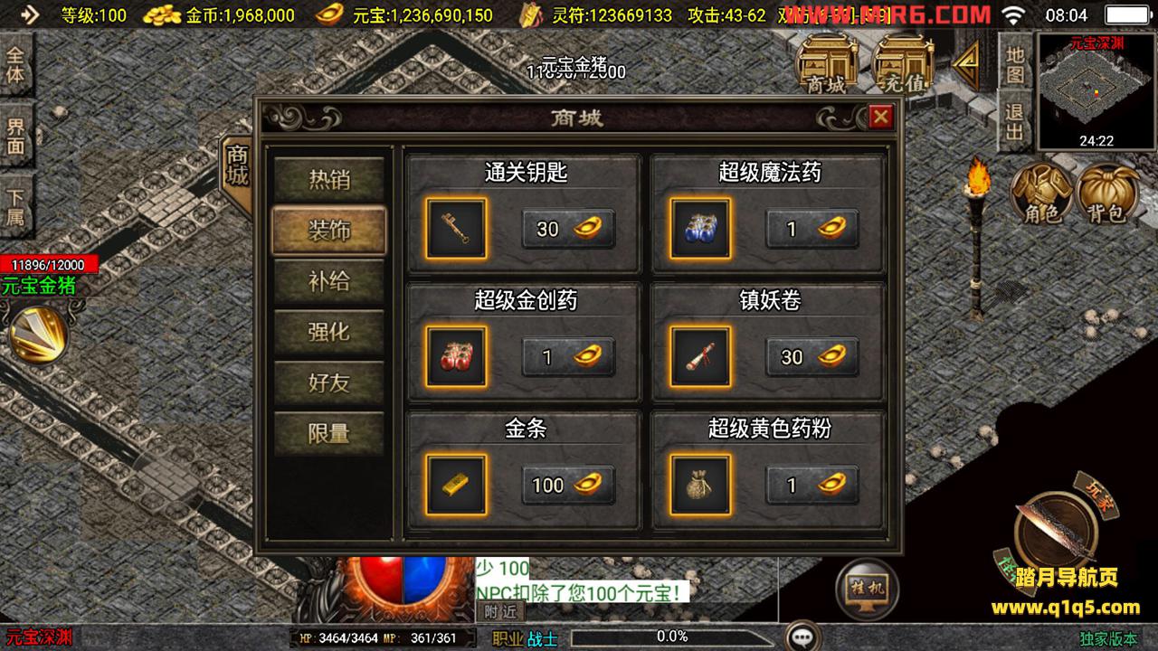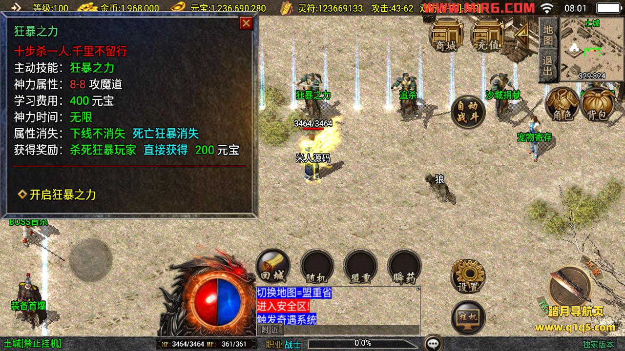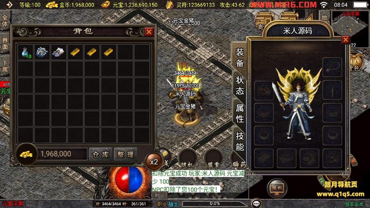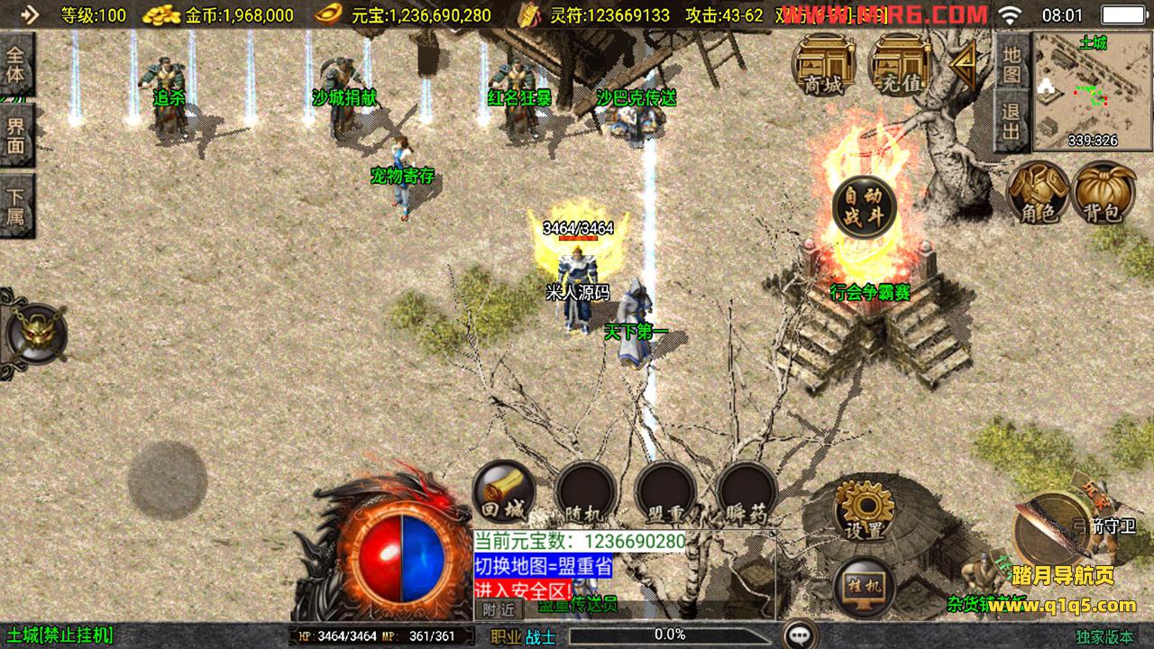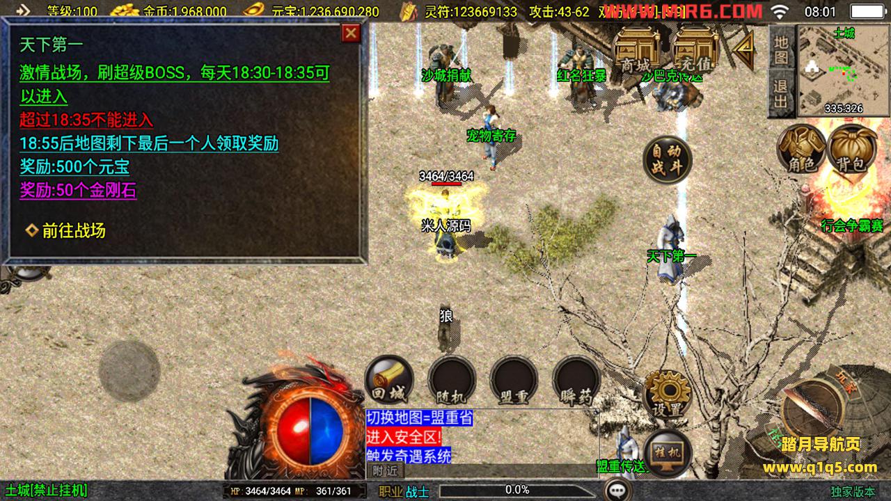 下面我们测试下游戏里的功能。好了,其他功能自行测试吧。更多的游戏资源请访问www.q1q5.com下载,我们每款游戏资源都单独制作的有视频架设教程,让小白也可以快速上手游戏架设,体验做GM的乐趣!