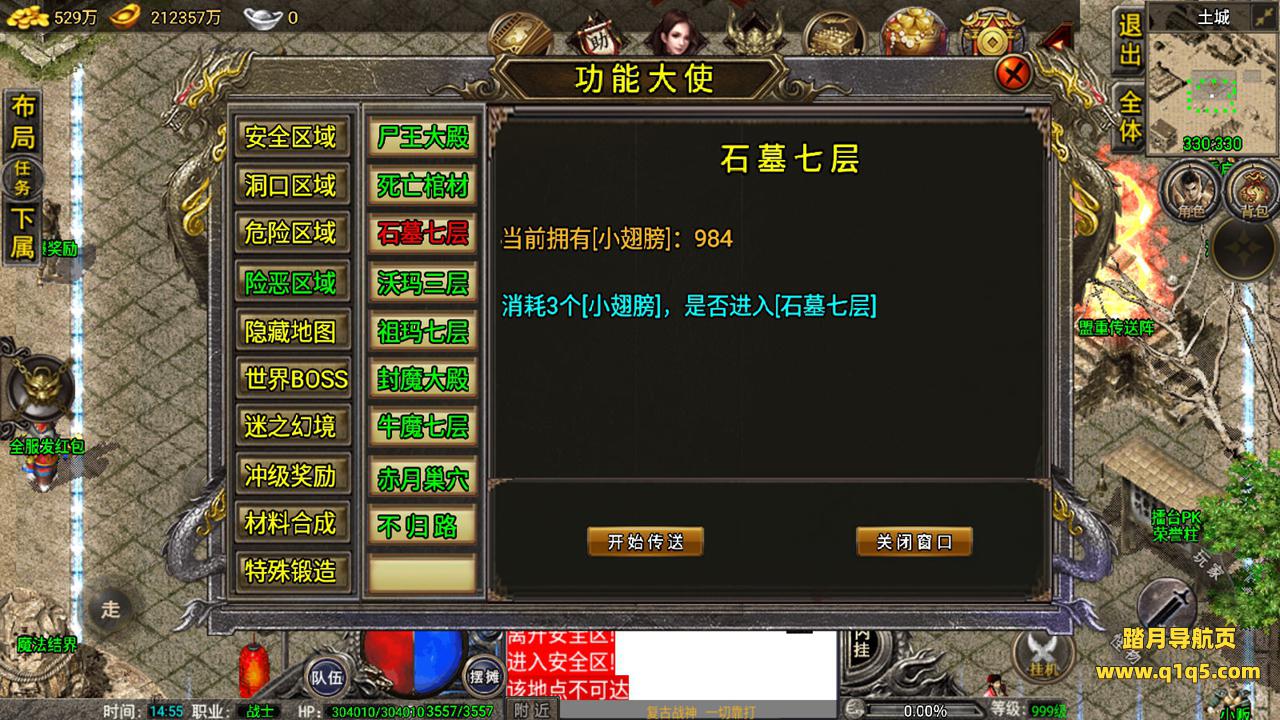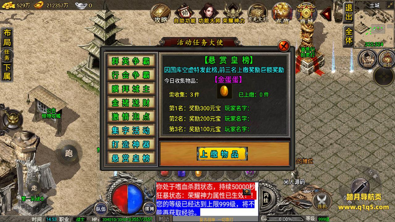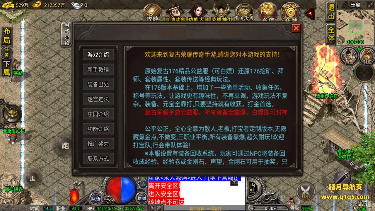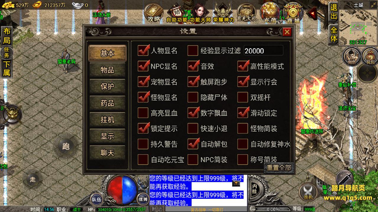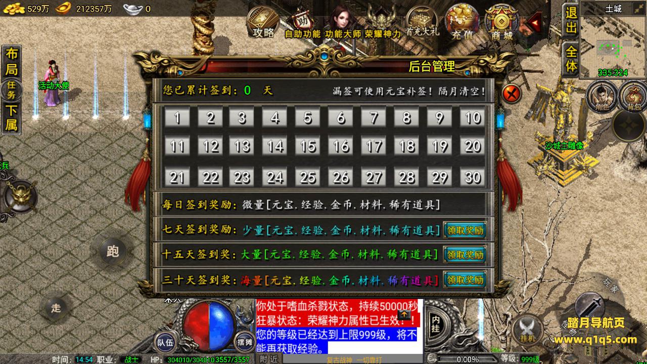 好了,我们在测试下游戏内功能。好了,其他自行测试吧。更多游戏资源请访问www.q1q5.com 我们每款游戏资源均单独制作了独立的视频架设教程,让小白也可以快速上手架设,体验做GM的乐趣!