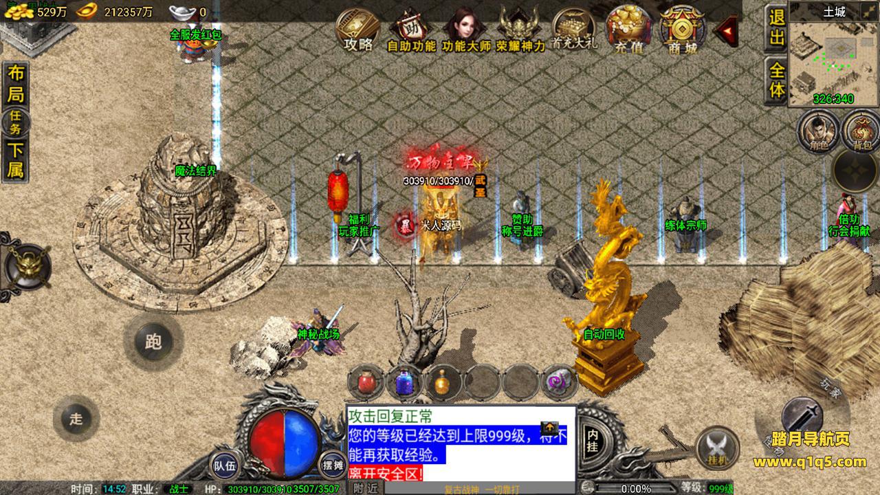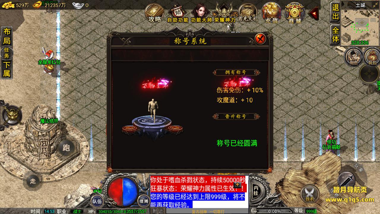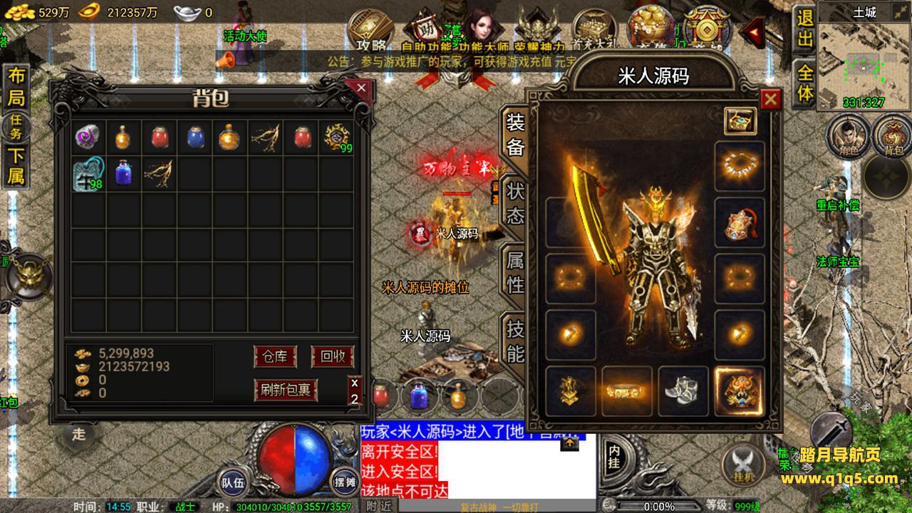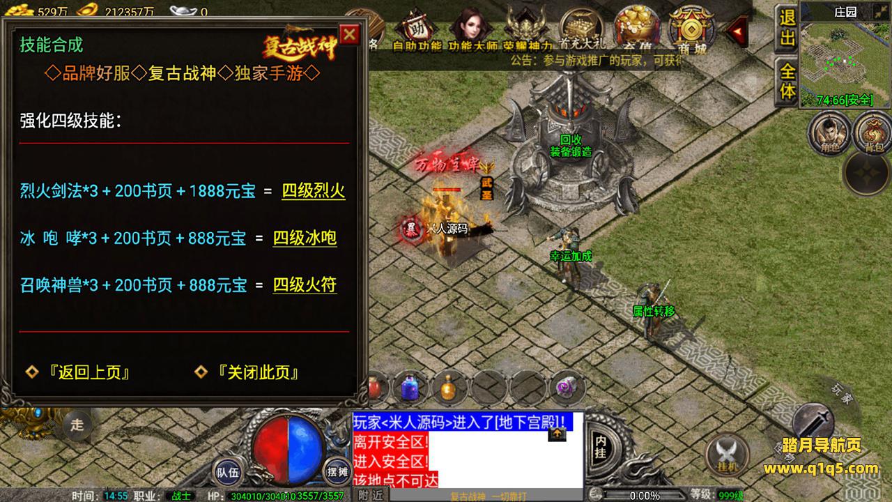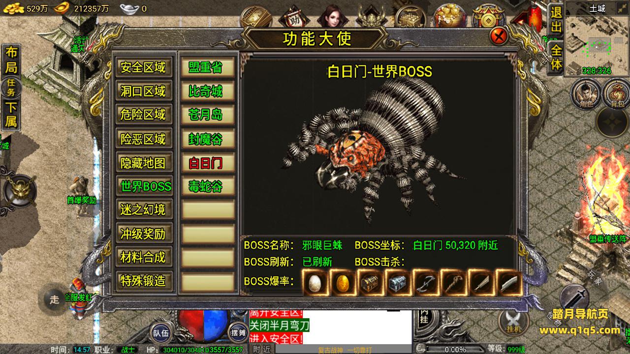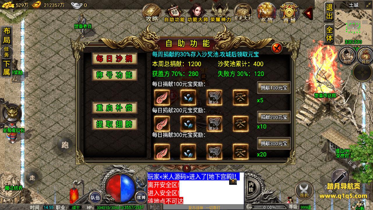好了,我们在测试下游戏内功能。好了,其他自行测试吧。更多游戏资源请访问www.q1q5.com 我们每款游戏资源均单独制作了独立的视频架设教程,让小白也可以快速上手架设,体验做GM的乐趣!