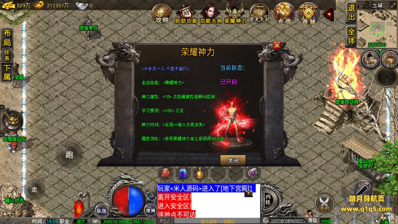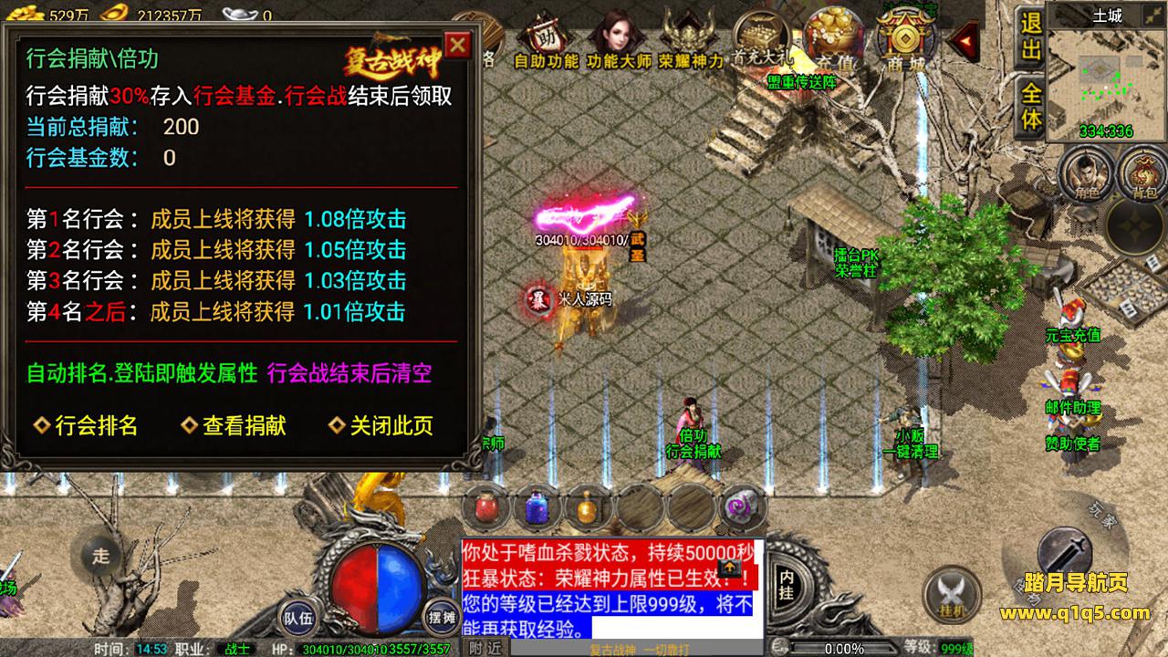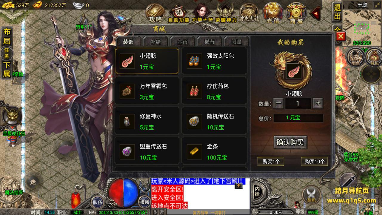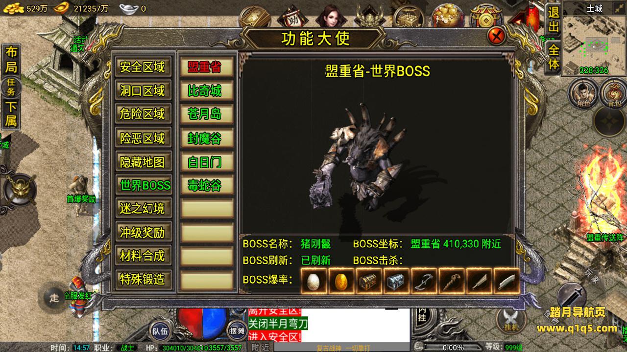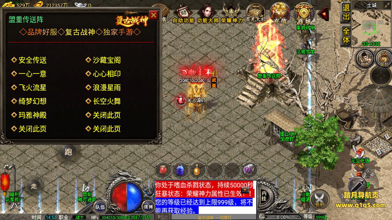 好了,我们在测试下游戏内功能。好了,其他自行测试吧。更多游戏资源请访问www.q1q5.com 我们每款游戏资源均单独制作了独立的视频架设教程,让小白也可以快速上手架设,体验做GM的乐趣!