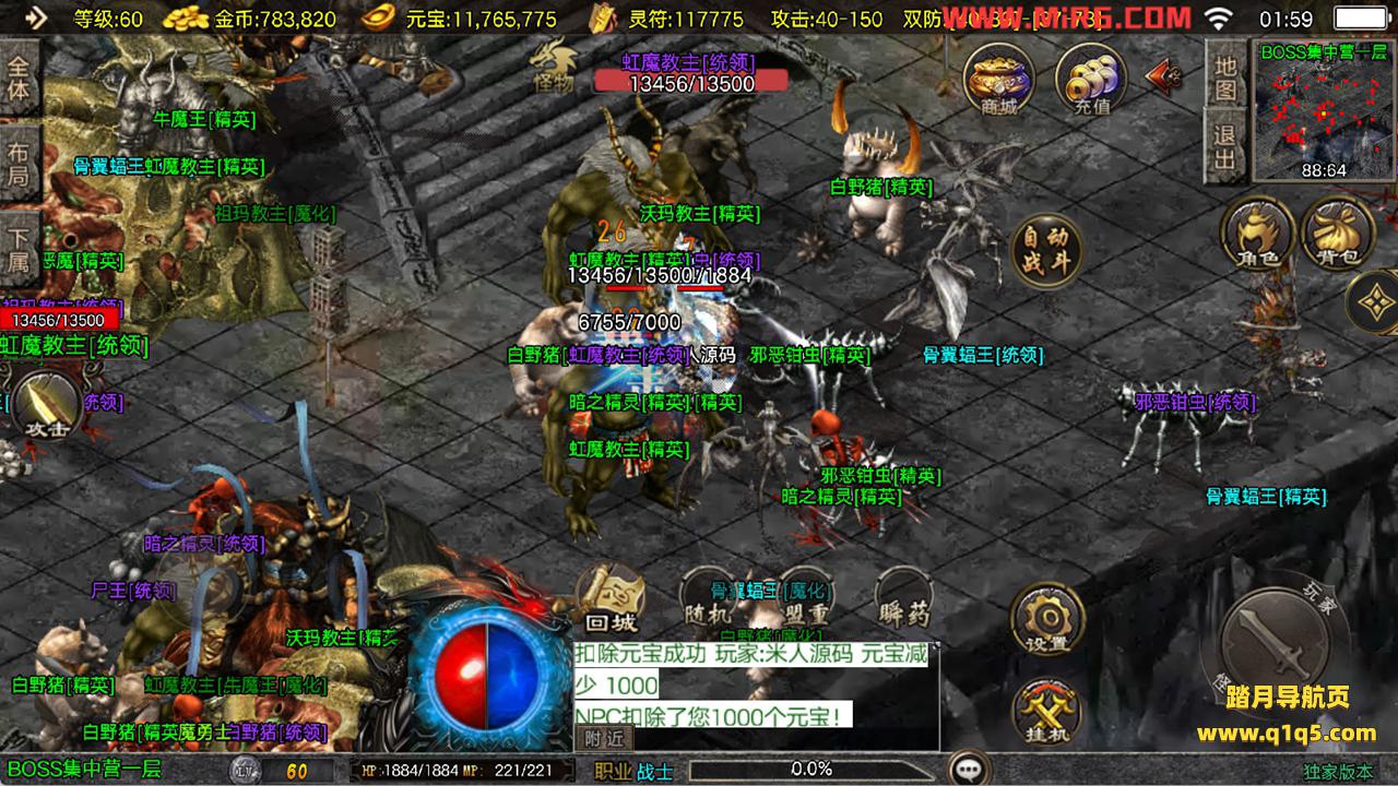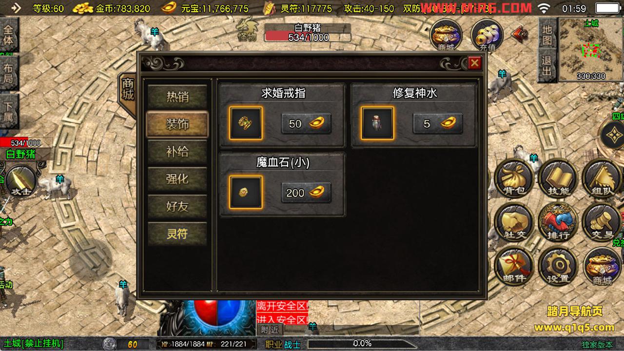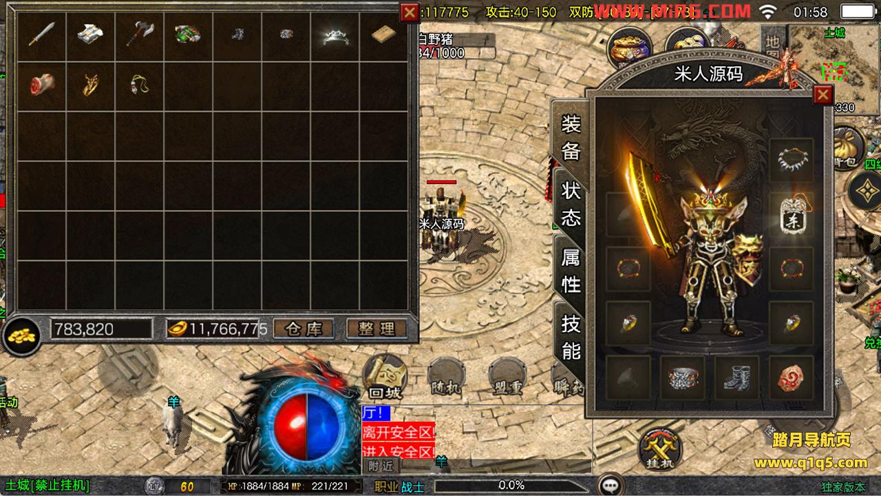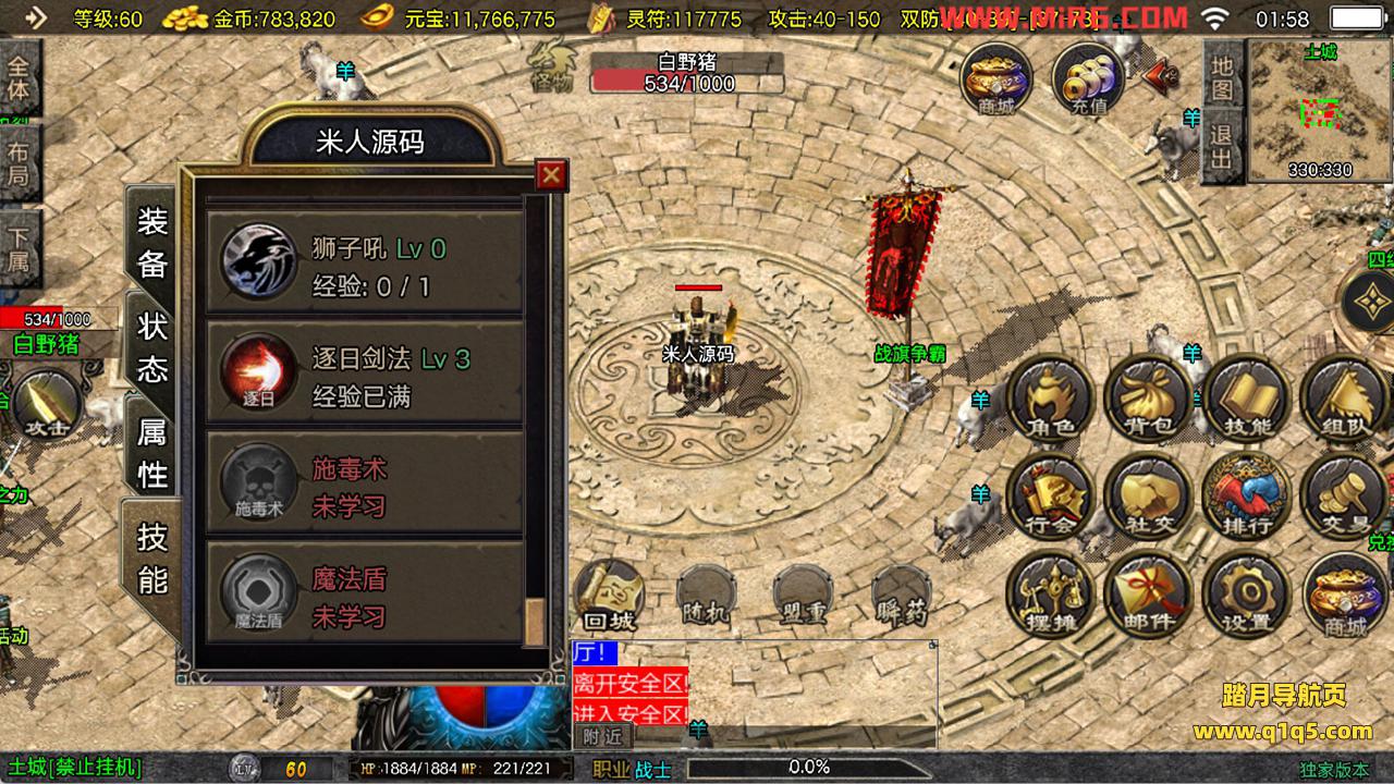下面我们来测试下游戏里的功能看看。好了,其他功能就自行测试吧。更多的游戏资源可以访问www.q1q5.com下载,我们每款游戏资源均单独制作了独立的视频架设教程,让小白也可以快速上手游戏架设,快来体验自己做GM的乐趣吧!