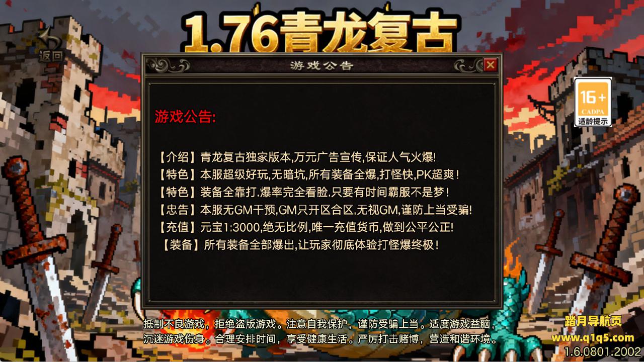 首先进入我们官网:MiR6.com 搜索《1.76青龙复古[白猪3.1]》下载好服务端,我这里已事先下载好了