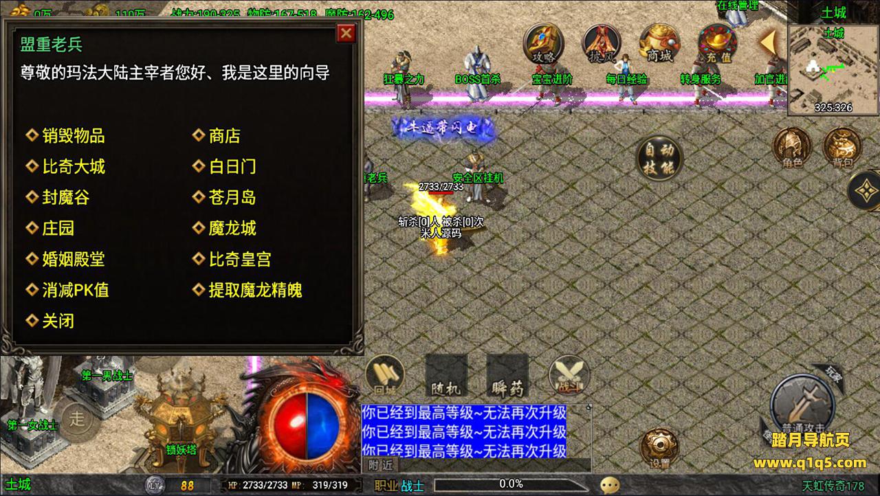 新收到土城安全区泡点升级:系统会赠与一套基础装备和灵符元宝