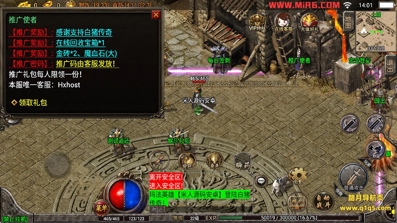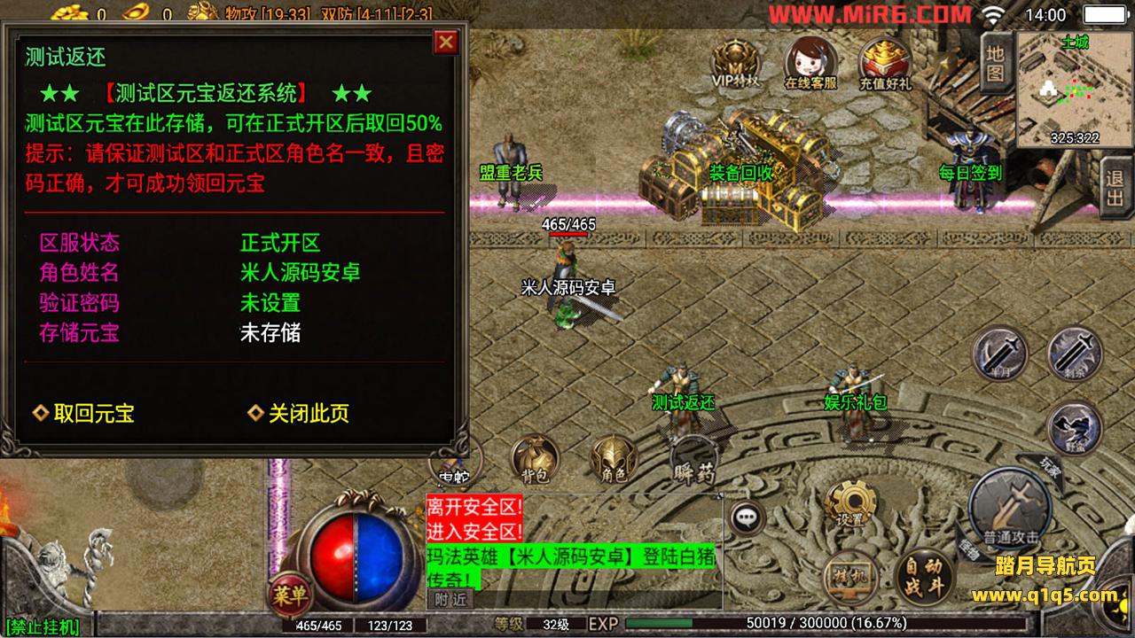 下面我们测试下游戏里的功能看看。好了,其他功能就自行测试吧。更多的游戏资源可以访问www.q1q5.com下载,我们每款游戏资源均单独制作了独立的视频架设教程,让小白也可以快速上手游戏架设,快来体验自己做GM的乐趣吧!