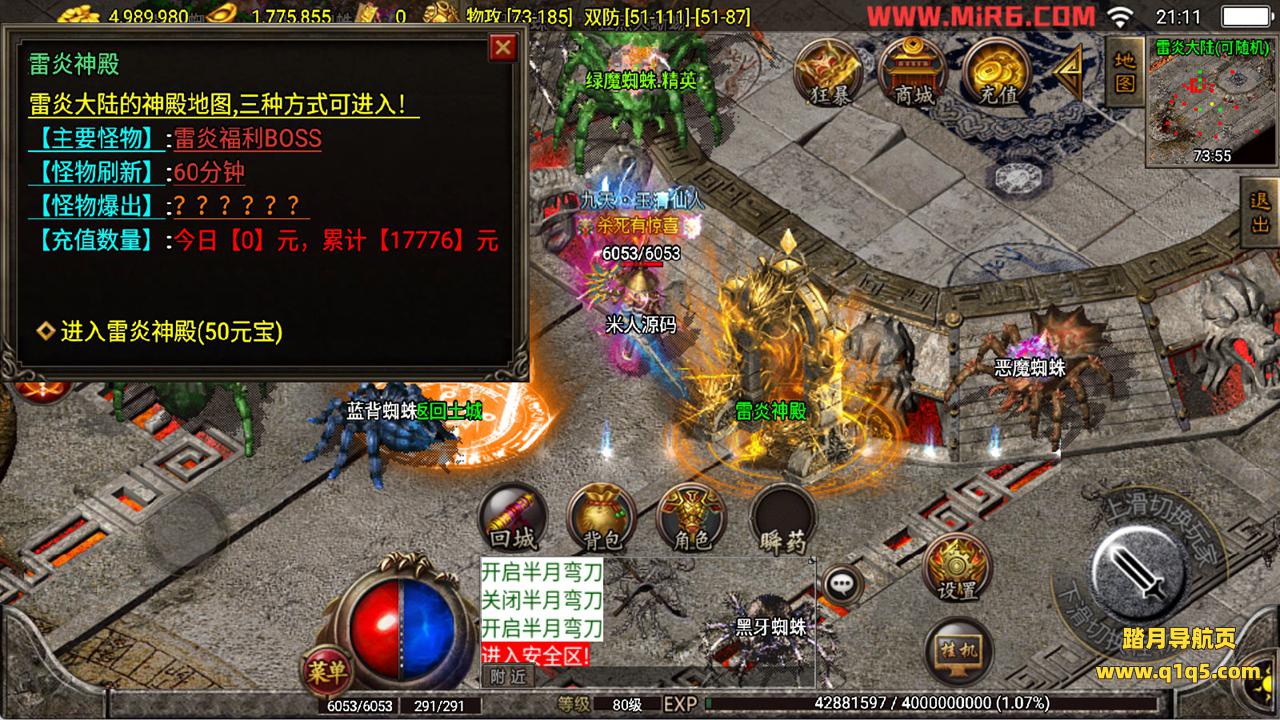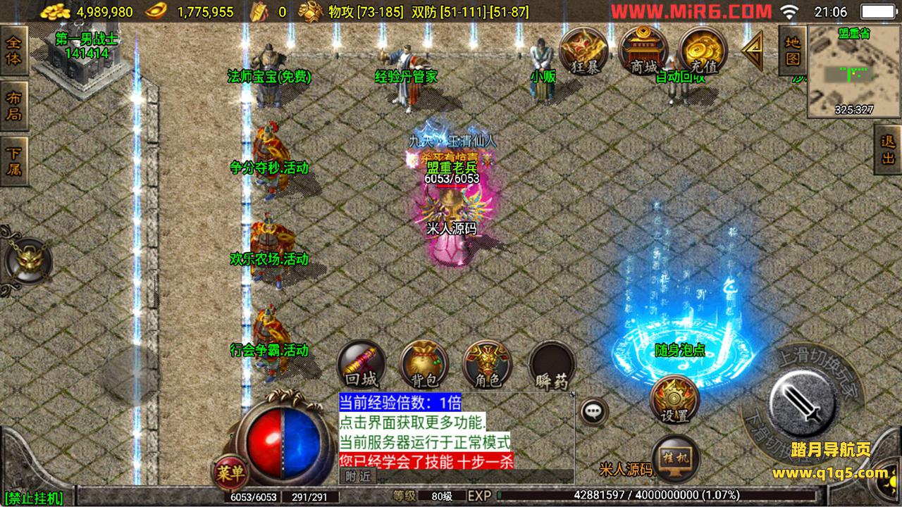 下面我们来测试下游戏里的功能看看。好了,其他功能就自行测试吧。更多的游戏资源可以访问www.q1q5.com下载,我们每款游戏资源均单独制作了独立的视频架设教程,让小白也可以快速上手游戏架设,快来体验自己做GM的乐趣吧!