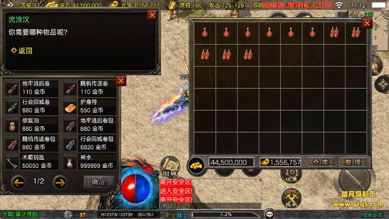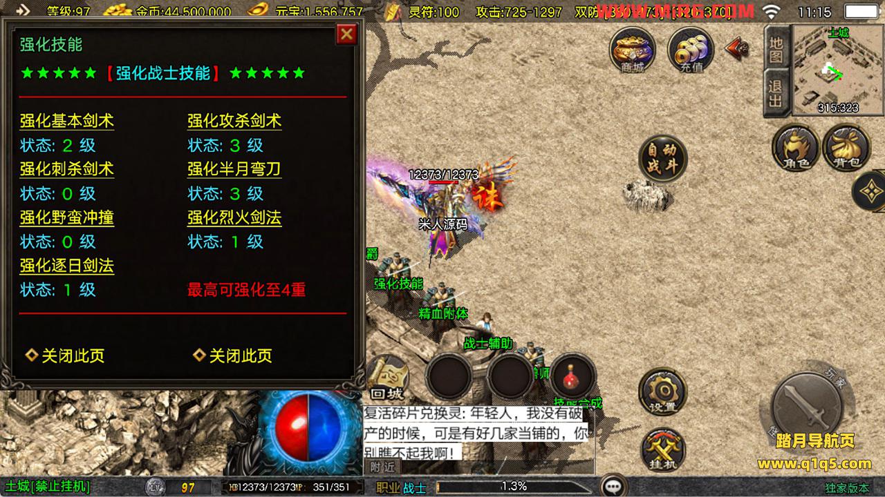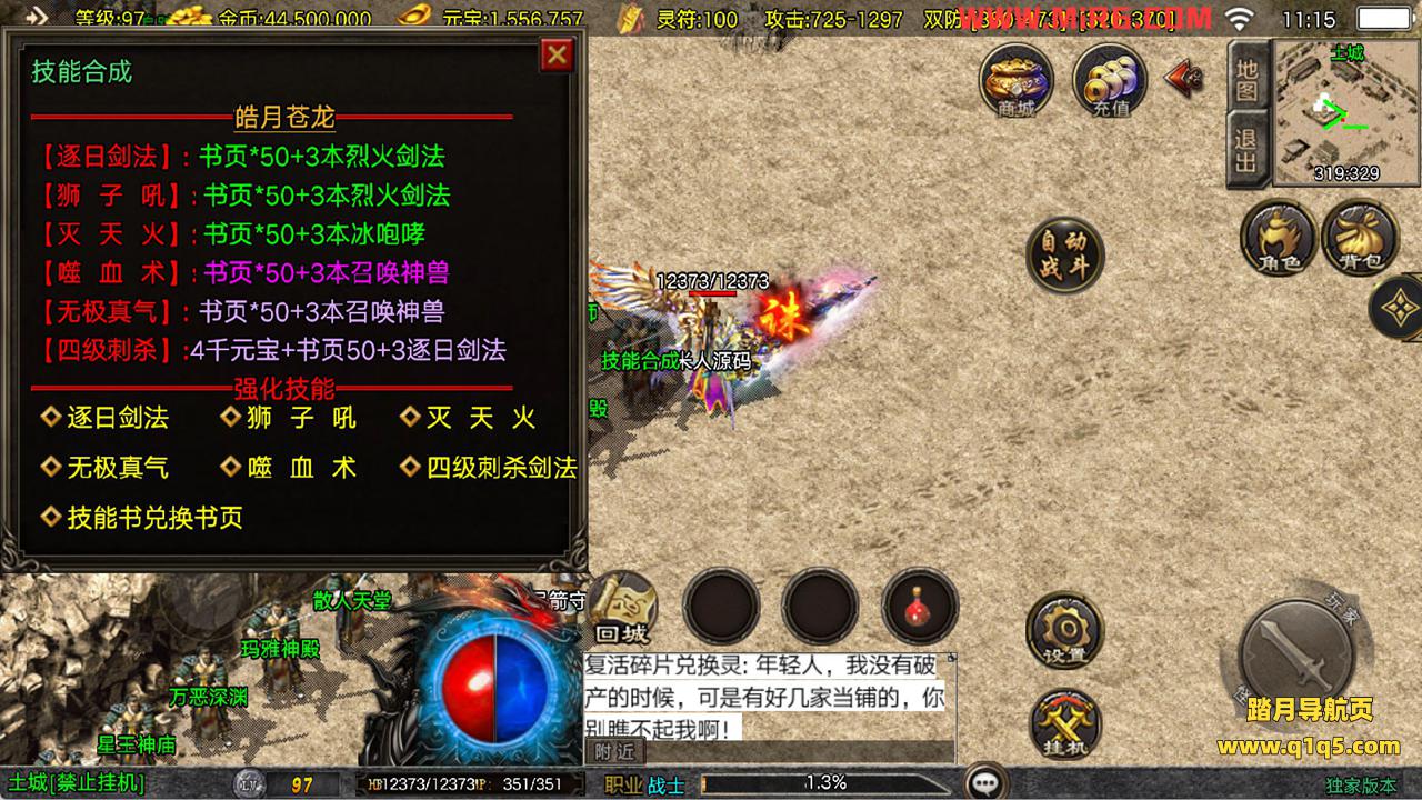 下面我们来测试下游戏里的功能看看。好了,其他功能就自行测试吧。更多的游戏资源可以访问www.q1q5.com下载,我们每款游戏资源均单独制作了独立的视频架设教程,让小白也可以快速上手游戏架设,快来体验自己做GM的乐趣吧!