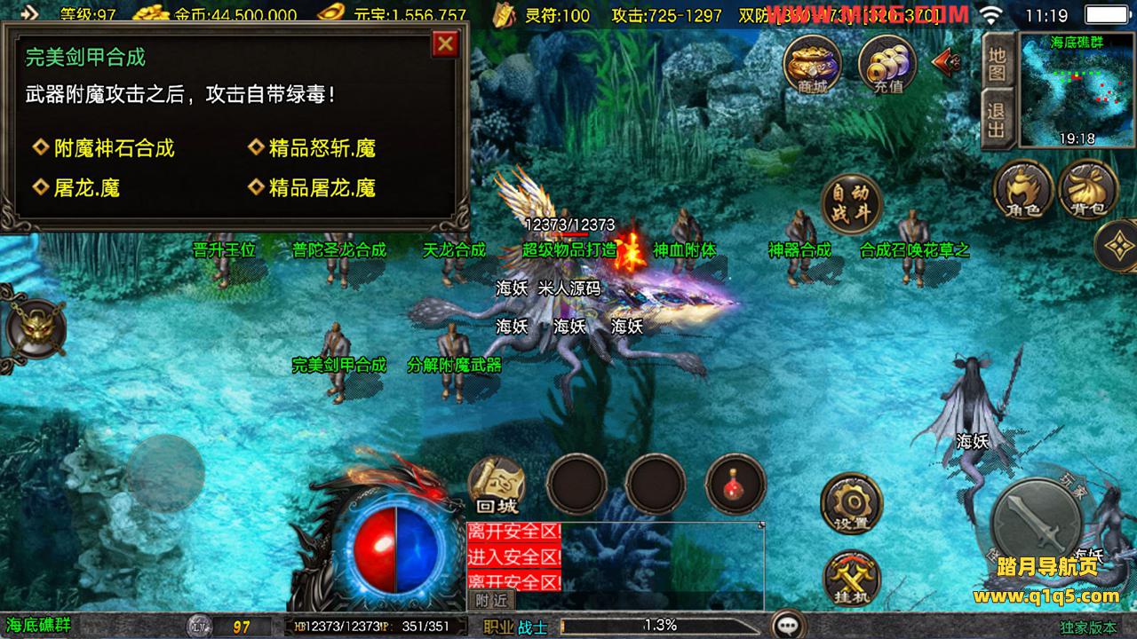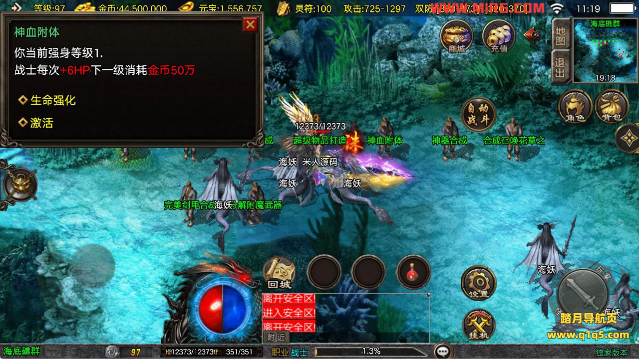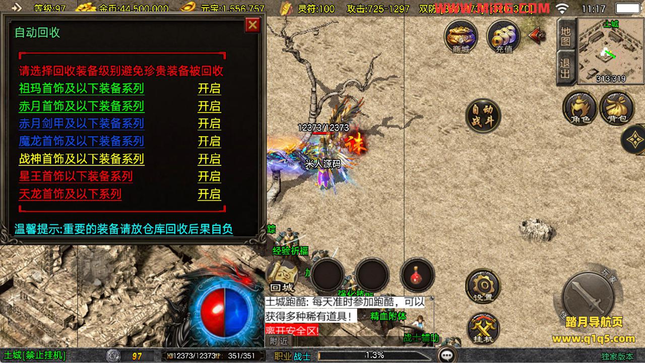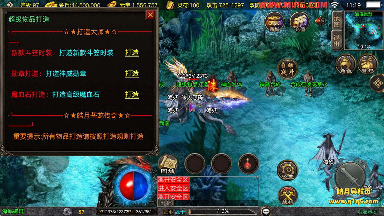 下面我们来测试下游戏里的功能看看。好了,其他功能就自行测试吧。更多的游戏资源可以访问www.q1q5.com下载,我们每款游戏资源均单独制作了独立的视频架设教程,让小白也可以快速上手游戏架设,快来体验自己做GM的乐趣吧!