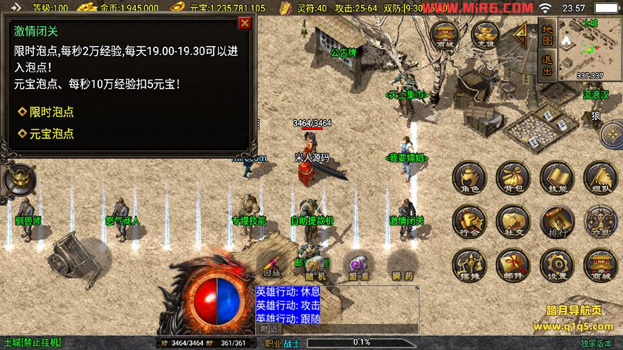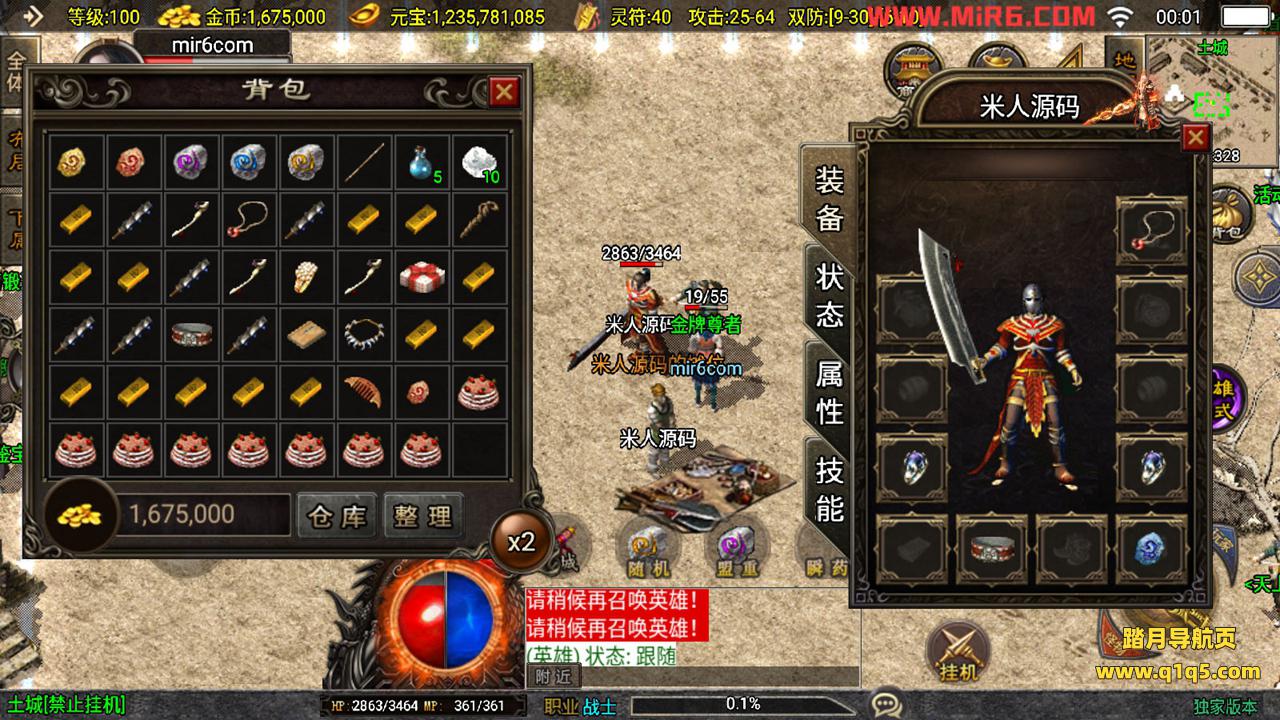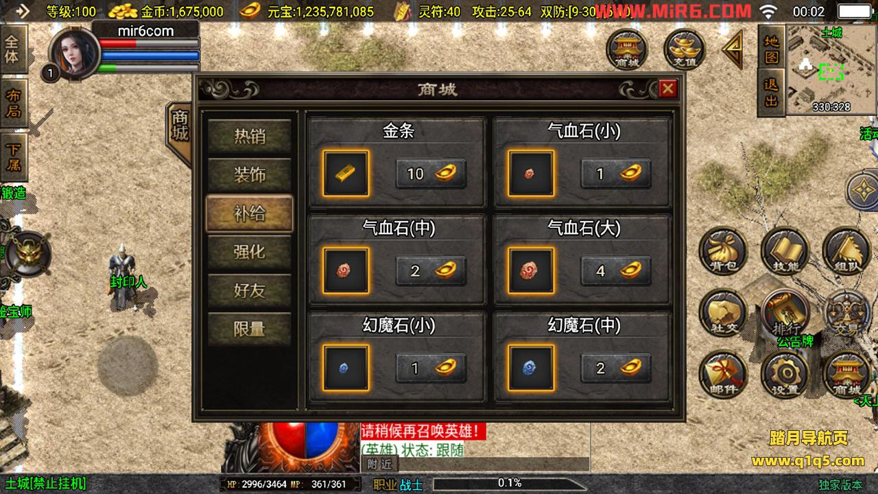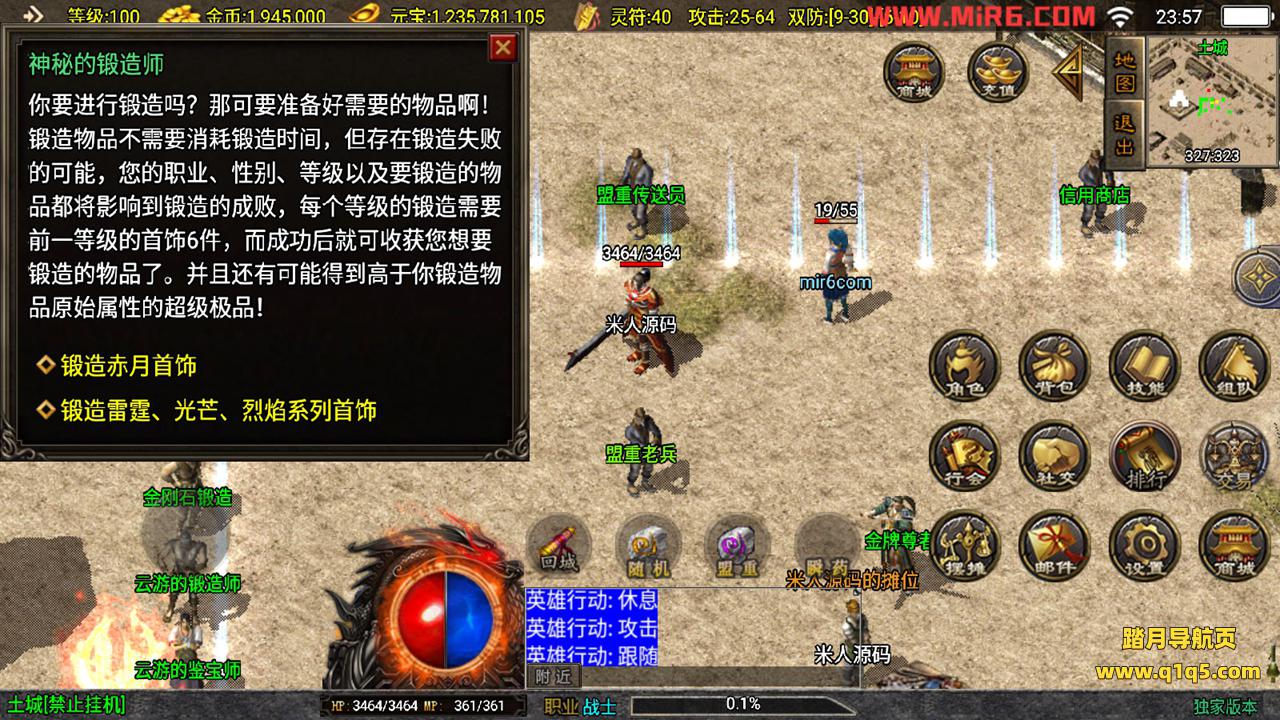下面我们测试下游戏里的功能,好了,其他功能就自行测试吧。更多的游戏资源请访问www.q1q5.com下载,我们每款游戏资源均单独制作的有视频架设教程,让小白也可以快速上手游戏架设,体验做GM的乐趣!