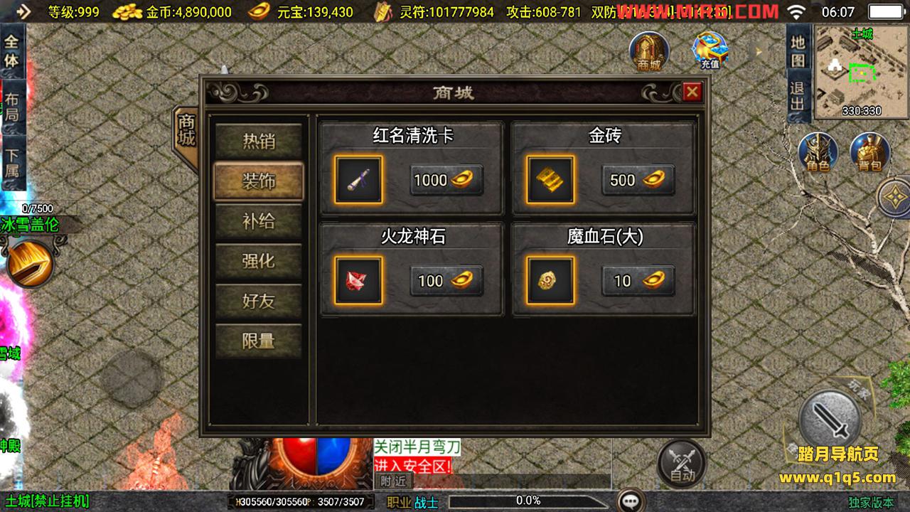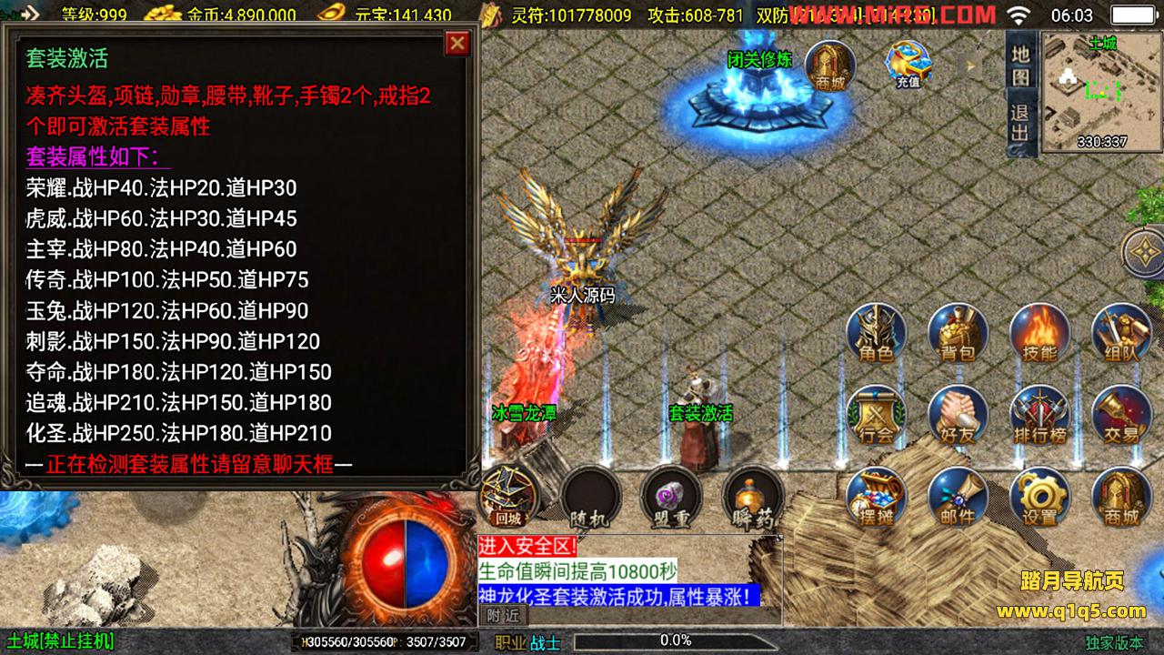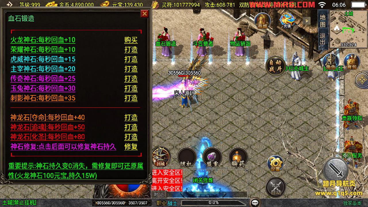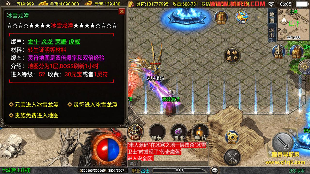 下面我们测试下游戏里的功能。好了,其他功能就自行测试吧。更多的游戏资源可以访问www.q1q5.com下载,我们每款游戏资源均单独制作了独立的视频架设教程,让小白也可以快速上手游戏架设,快来体验做GM的乐趣吧!