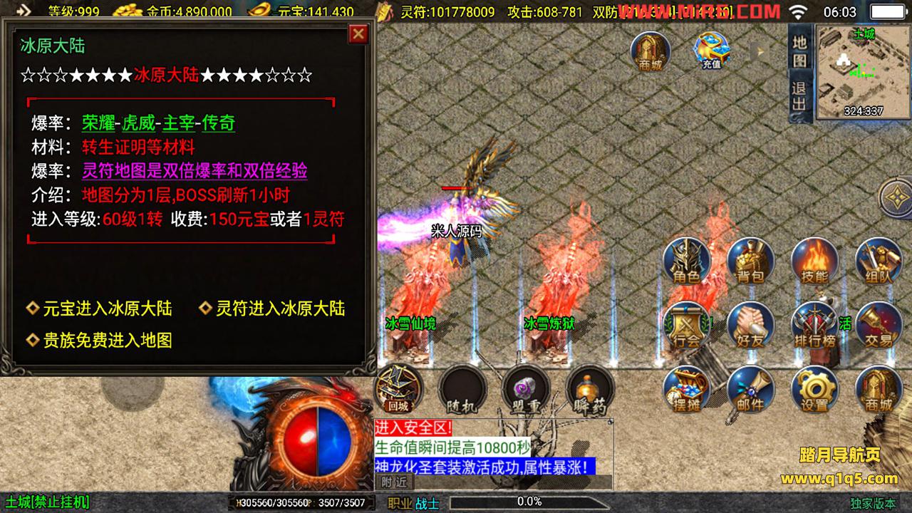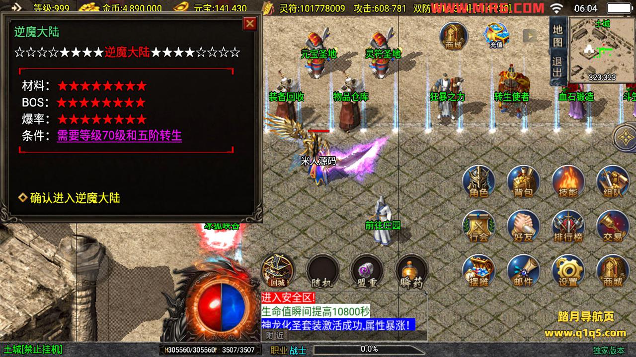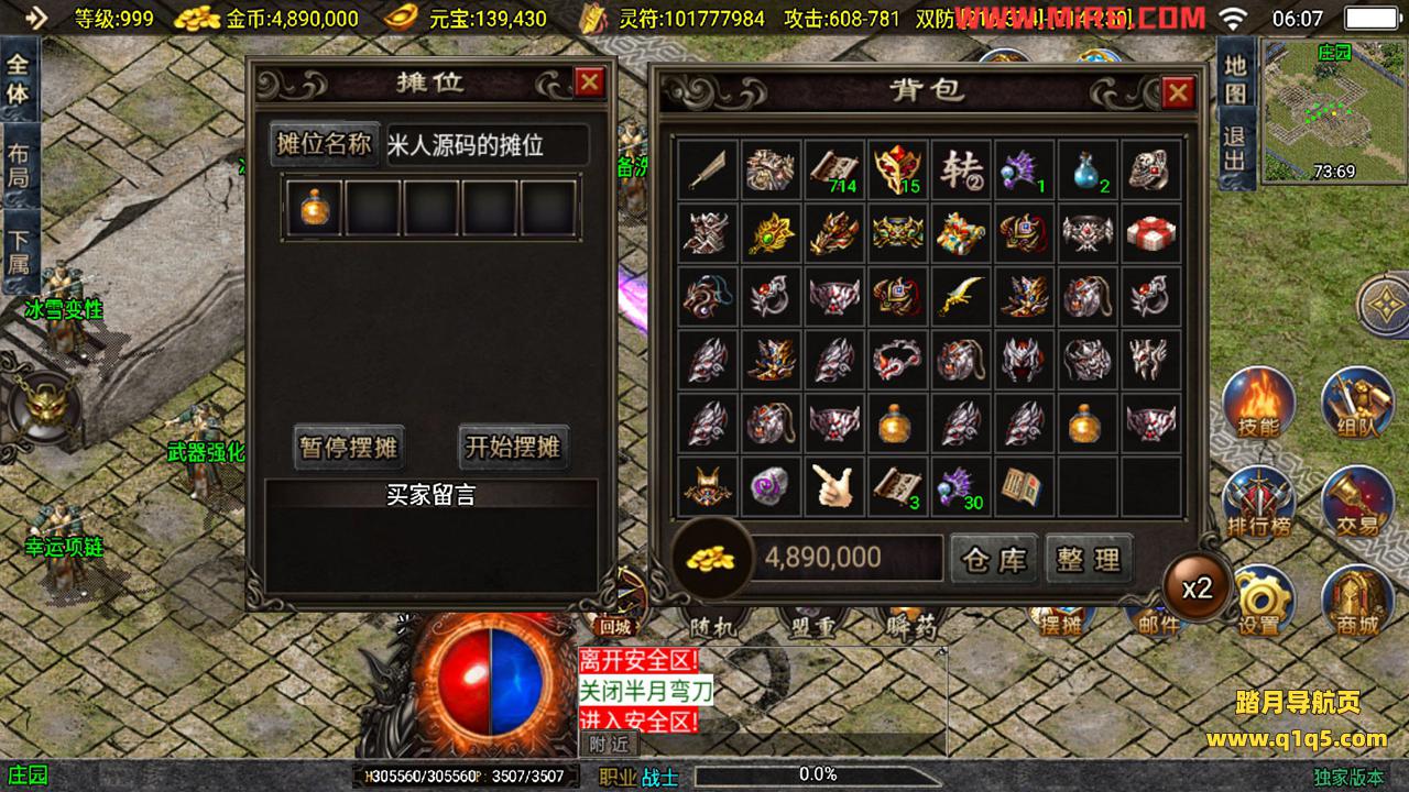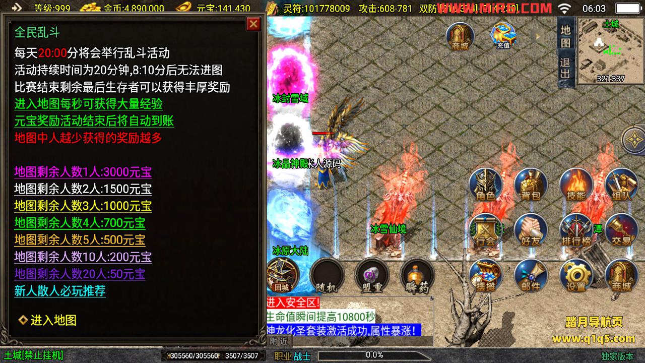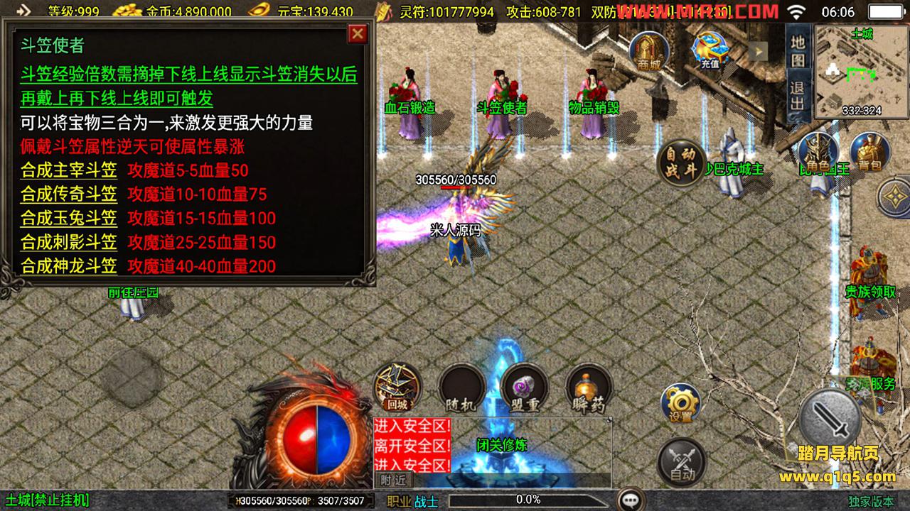 下面我们测试下游戏里的功能。好了,其他功能就自行测试吧。更多的游戏资源可以访问www.q1q5.com下载,我们每款游戏资源均单独制作了独立的视频架设教程,让小白也可以快速上手游戏架设,快来体验做GM的乐趣吧!
