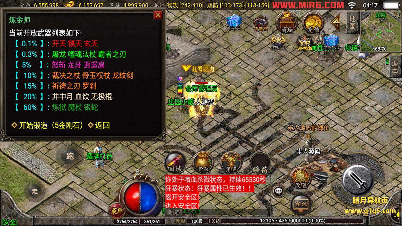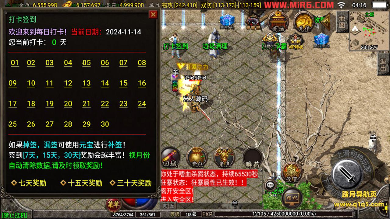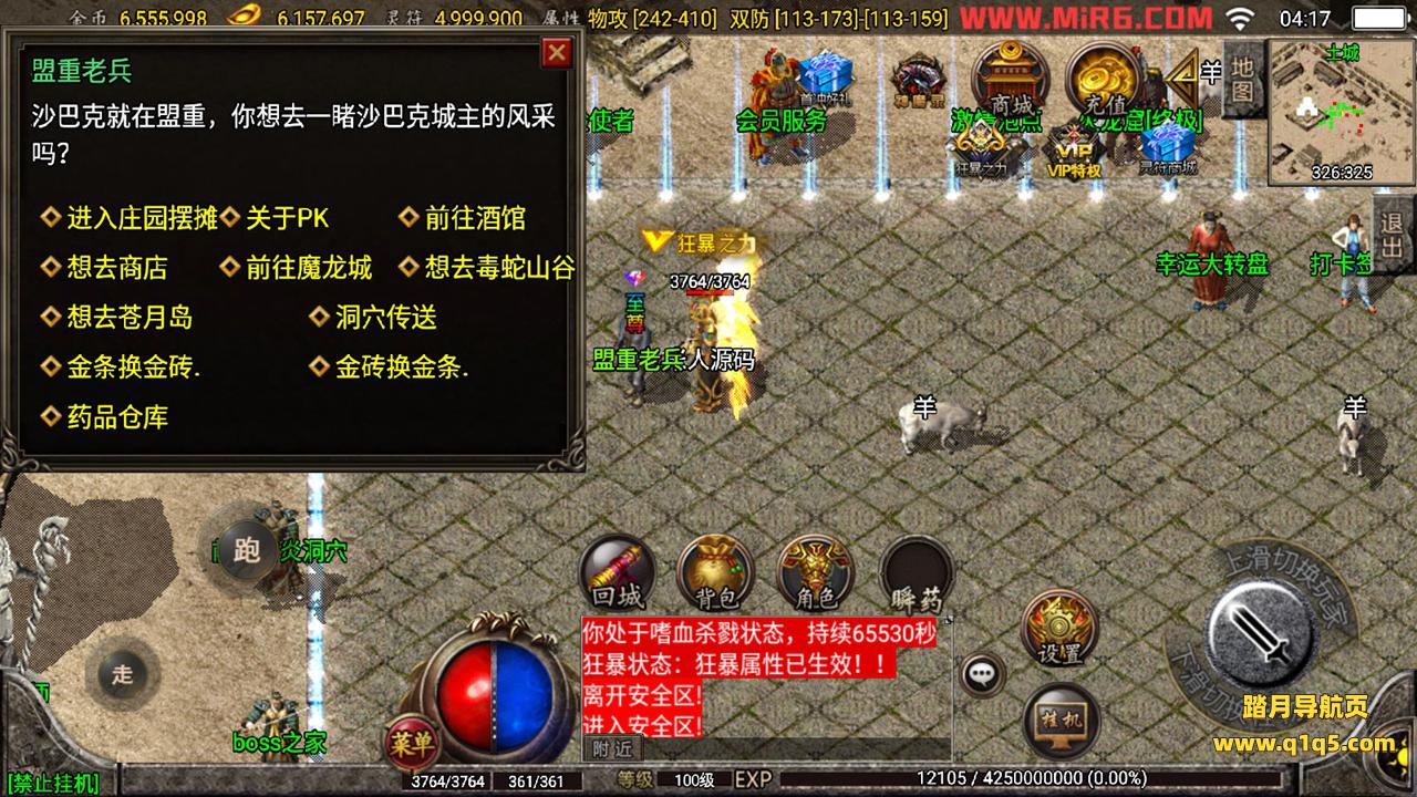 下面我们测试下游戏里的功能吧。好了,其他功能就自行测试吧。更多的游戏资源可访问www.q1q5.com下载,我们每款游戏资源均单独制作了独立视频架设教程,让小白也可以快速上手游戏架设,快来体验做GM的乐趣吧!