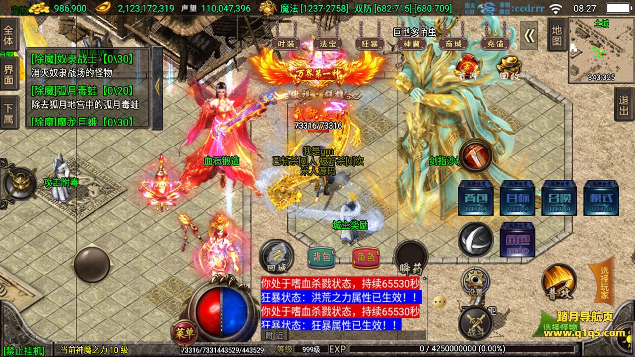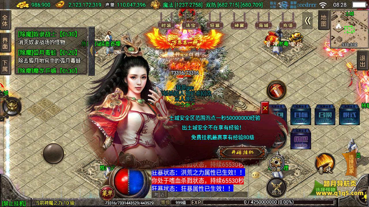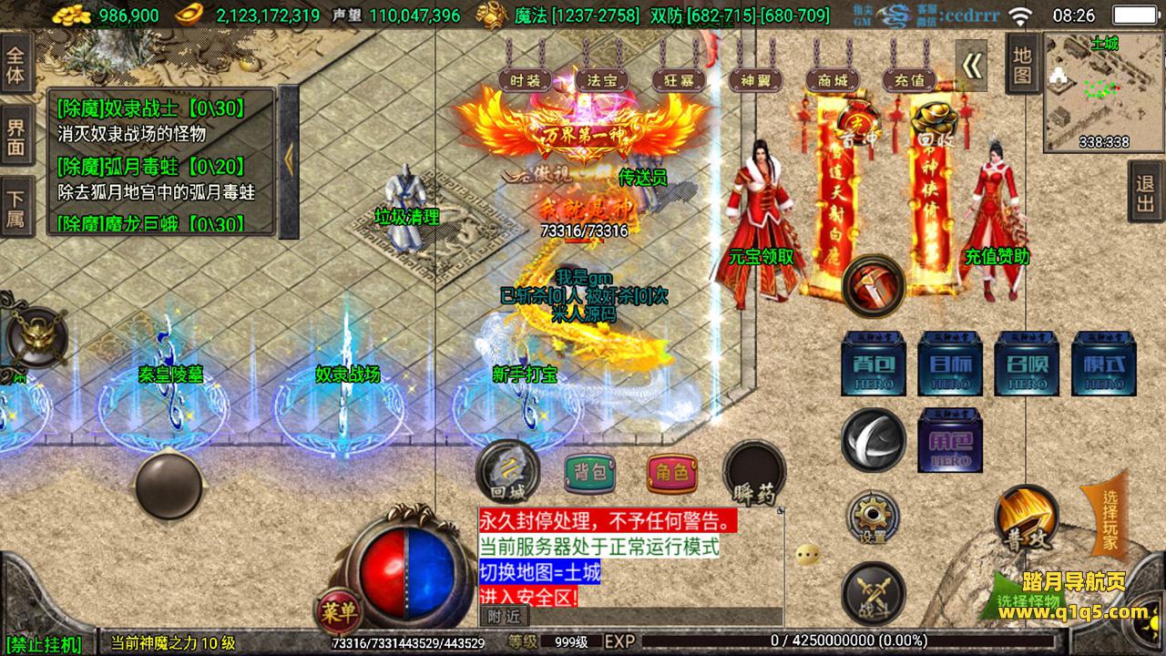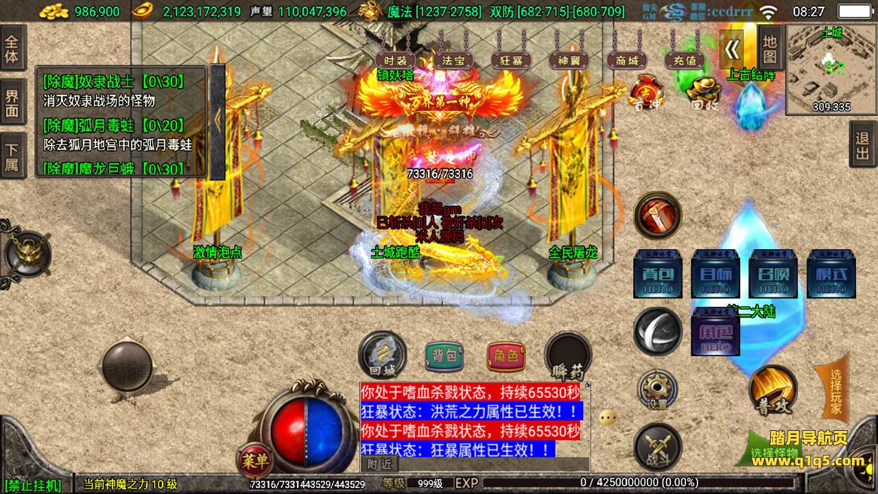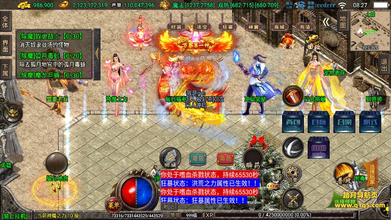 下面我们测试下游戏里的功能。好了,其他功能就自行测试吧。更多的游戏资源可以访问www.q1q5.com下载,我们每款游戏资源均单独制作了独立的视频架设教程,让小白也可以快速上手游戏架设,快来体验自己做GM的乐趣吧!