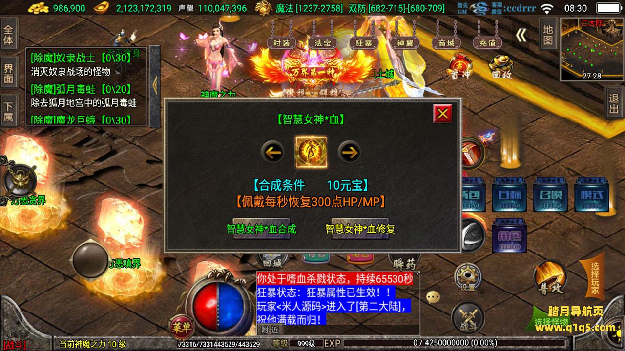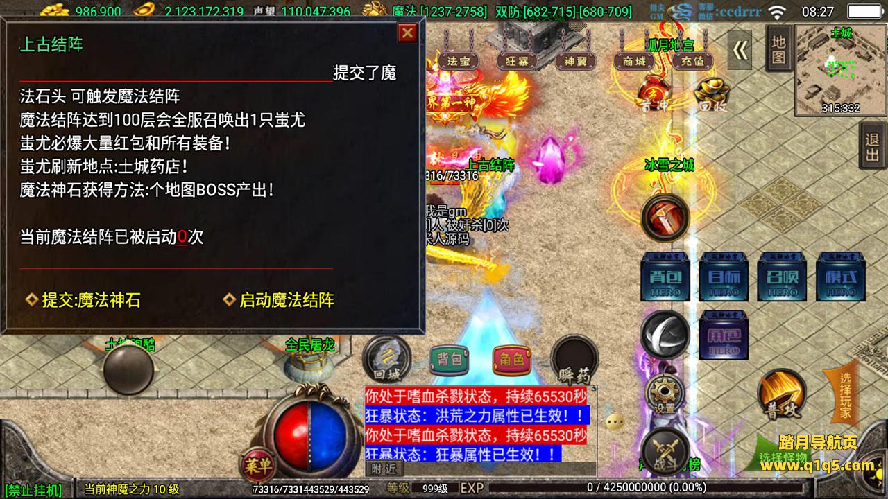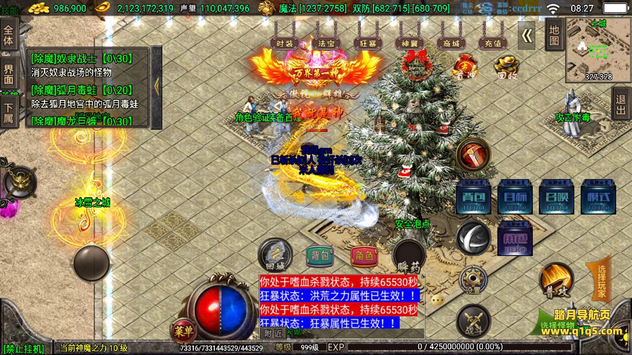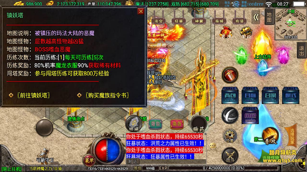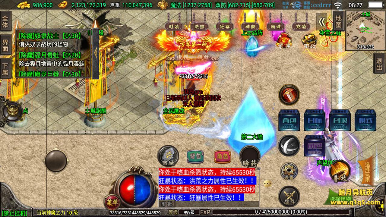 下面我们测试下游戏里的功能。好了,其他功能就自行测试吧。更多的游戏资源可以访问www.q1q5.com下载,我们每款游戏资源均单独制作了独立的视频架设教程,让小白也可以快速上手游戏架设,快来体验自己做GM的乐趣吧!