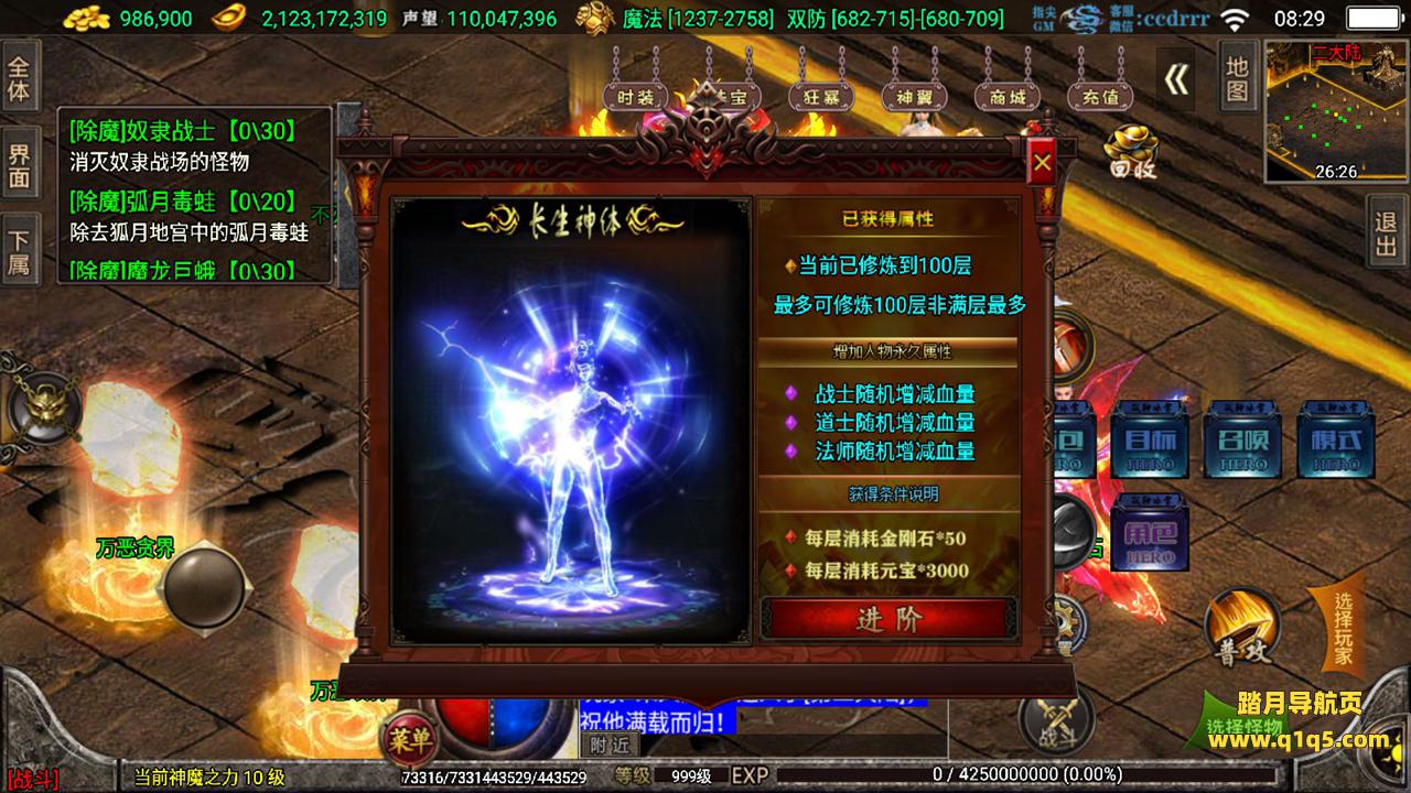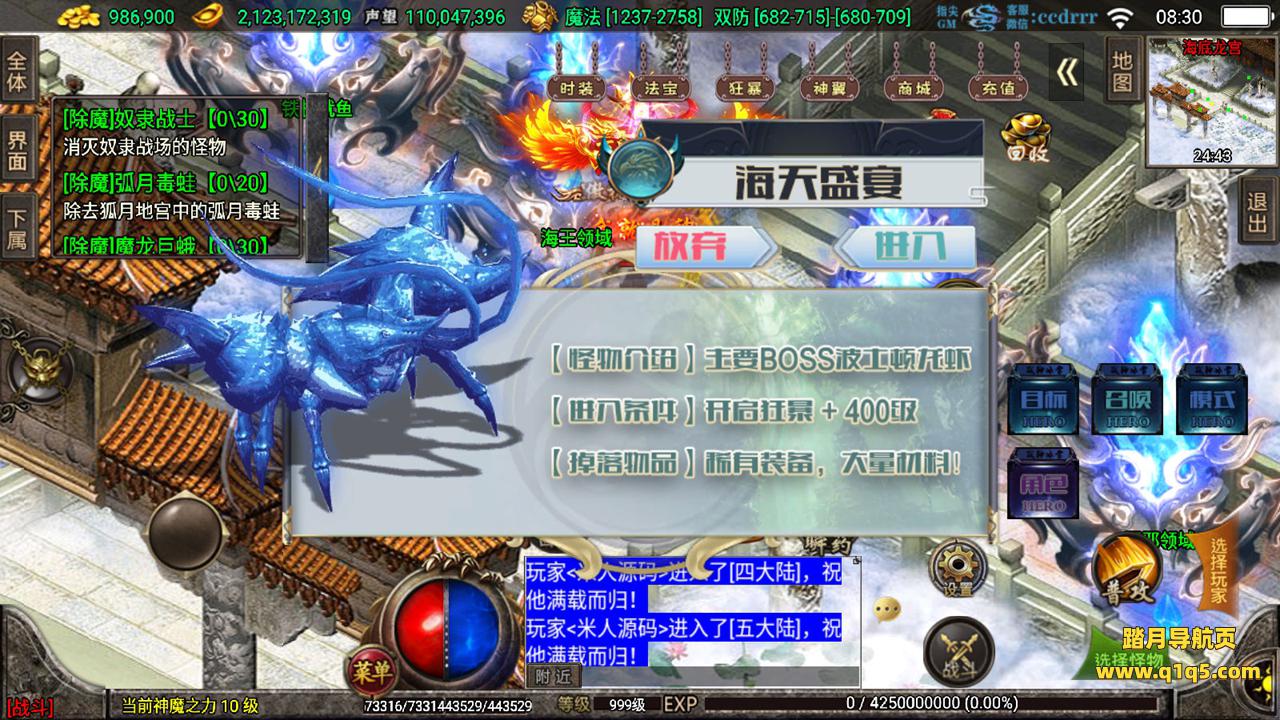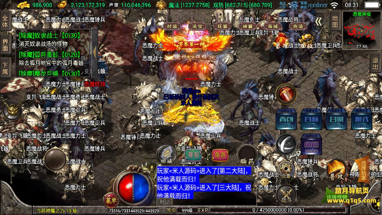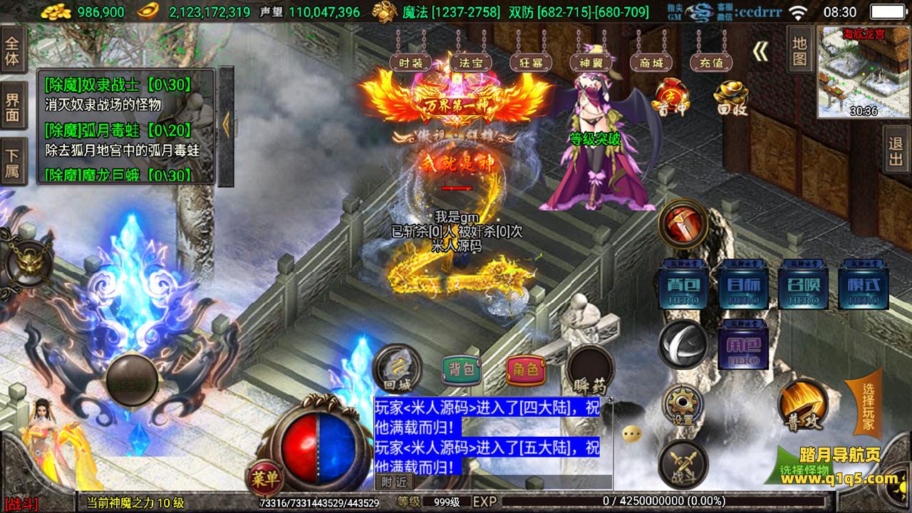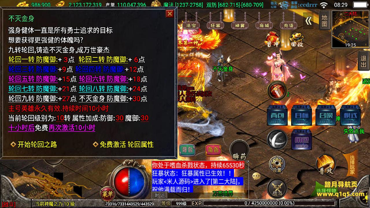 下面我们测试下游戏里的功能。好了,其他功能就自行测试吧。更多的游戏资源可以访问www.q1q5.com下载,我们每款游戏资源均单独制作了独立的视频架设教程,让小白也可以快速上手游戏架设,快来体验自己做GM的乐趣吧!