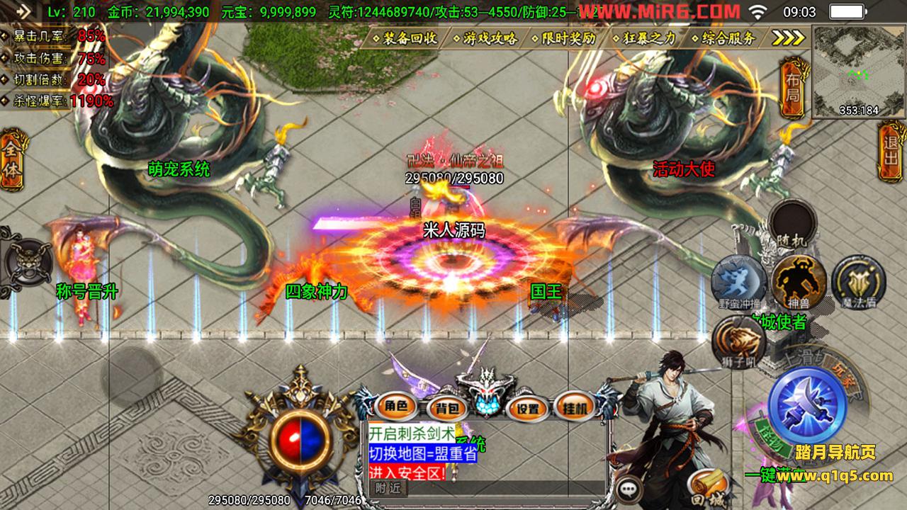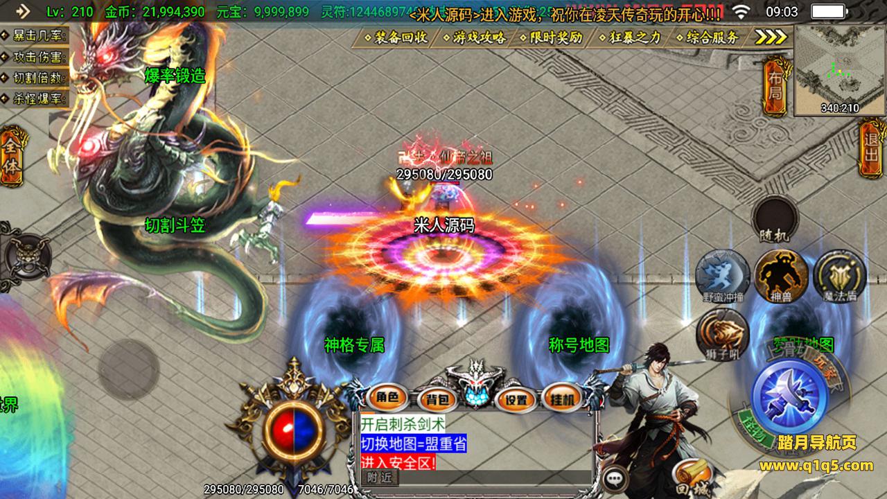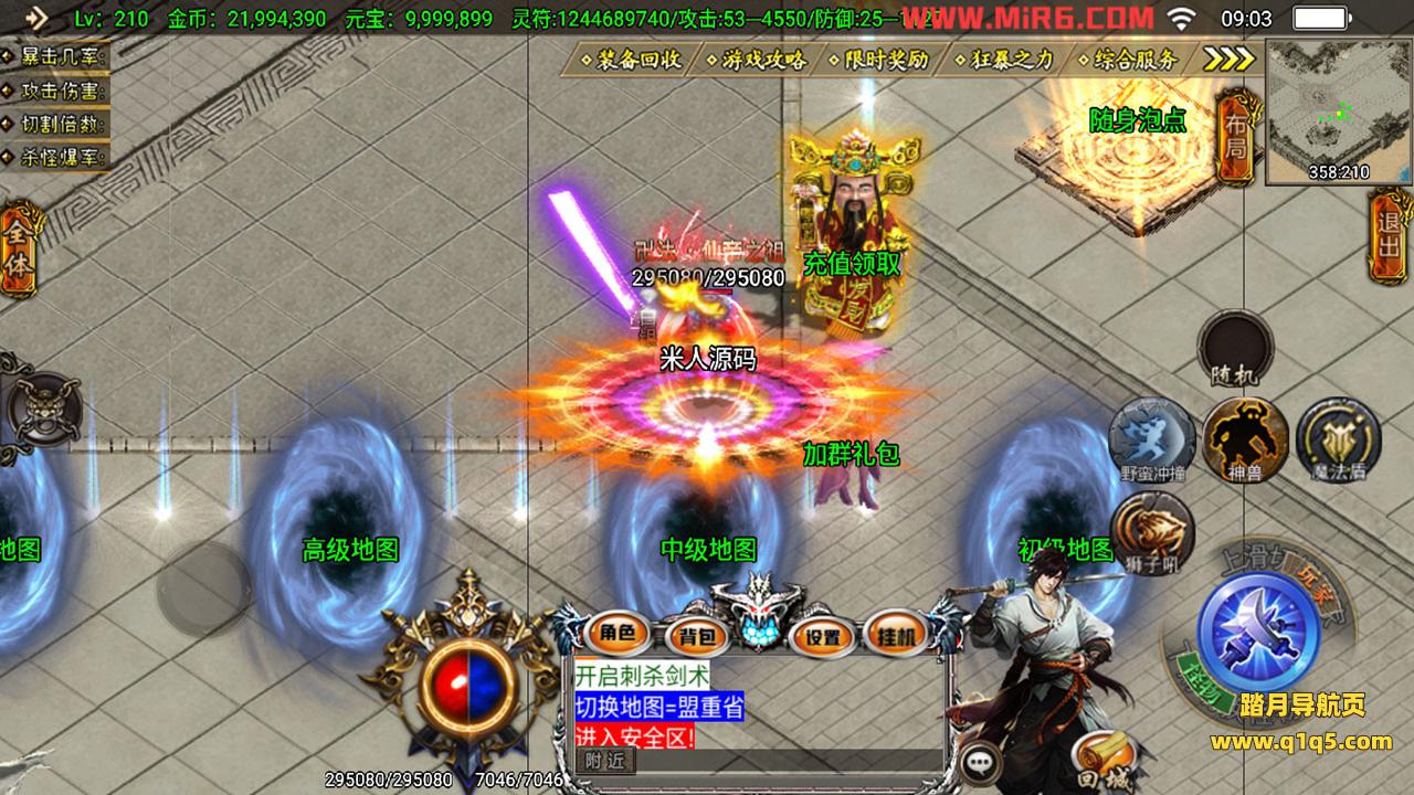 下面我们测试下游戏里的功能。好了,其他功能就自行测试吧。更多的游戏资源请访问www.q1q5.com下载,我们每款游戏资源均单独制作的有视频架设教程,让小白也可以快速上手游戏架设,体验做GM的乐趣!