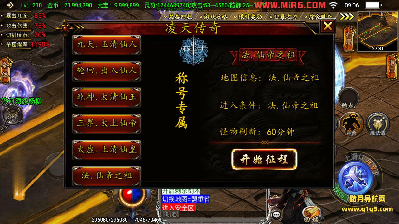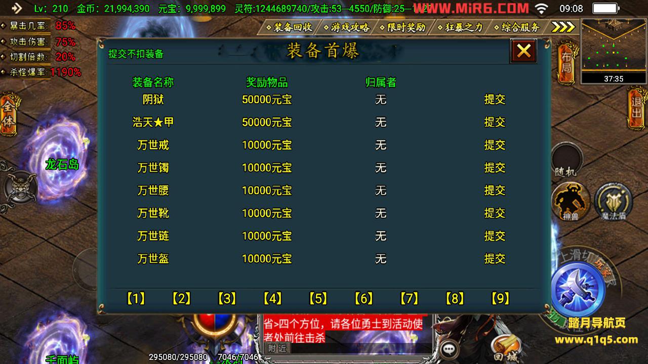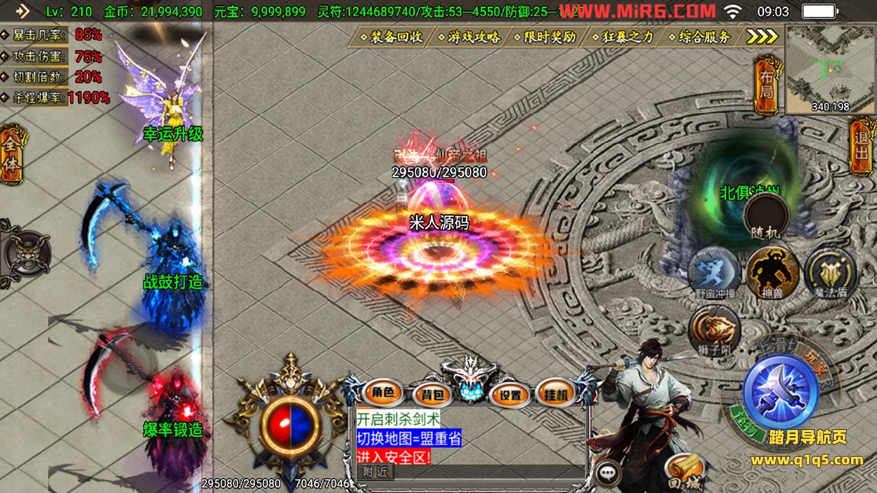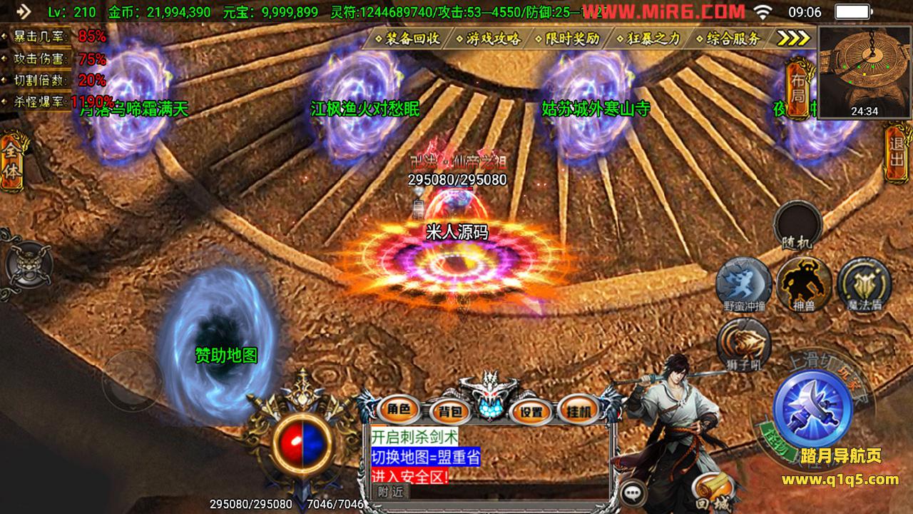 下面我们测试下游戏里的功能。好了,其他功能就自行测试吧。更多的游戏资源请访问www.q1q5.com下载,我们每款游戏资源均单独制作的有视频架设教程,让小白也可以快速上手游戏架设,体验做GM的乐趣!