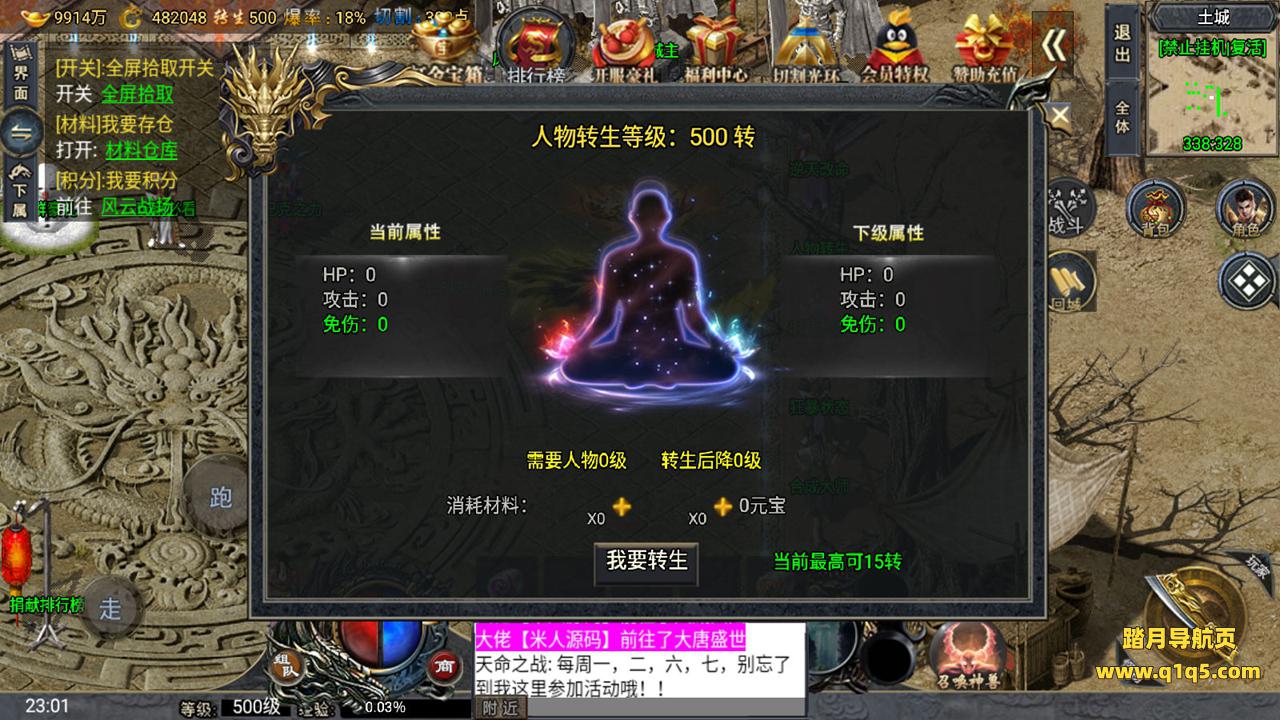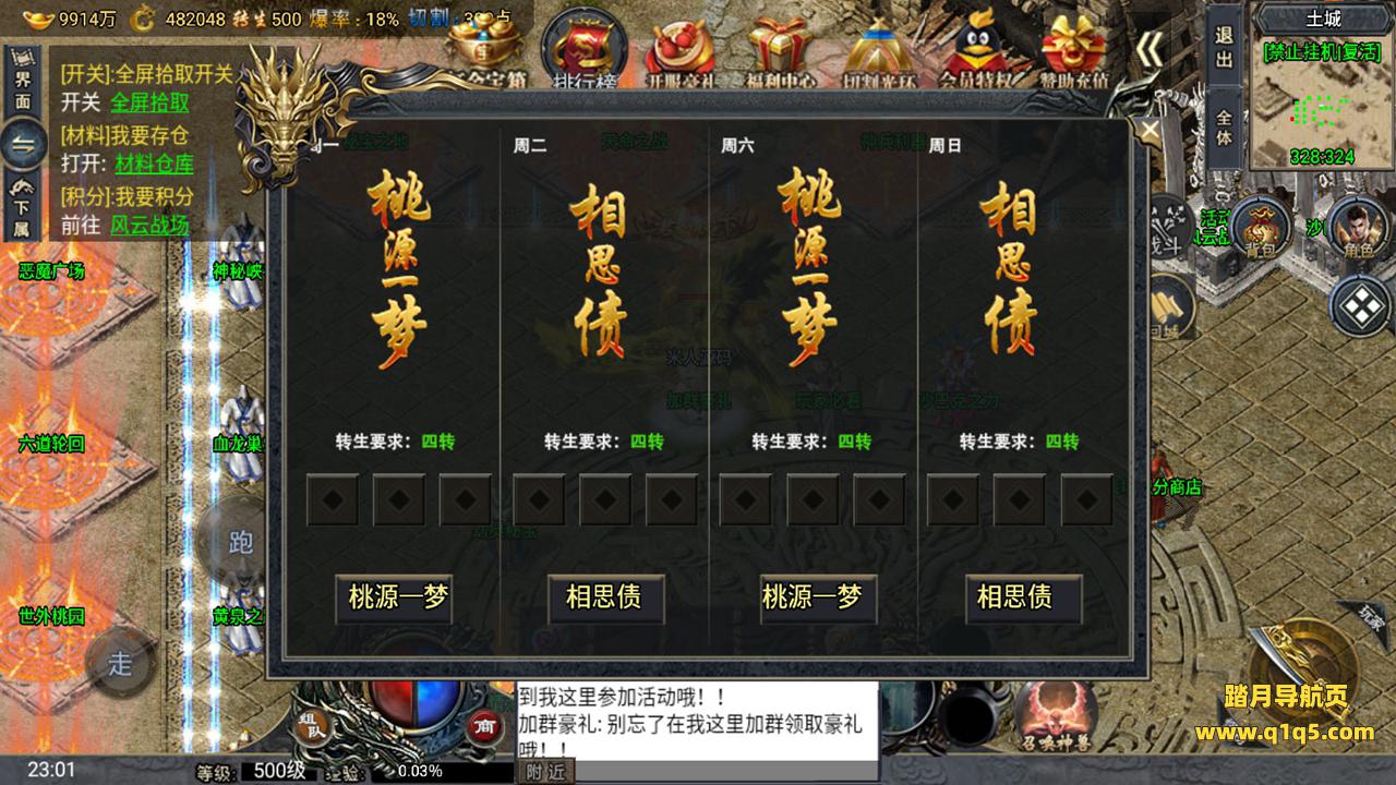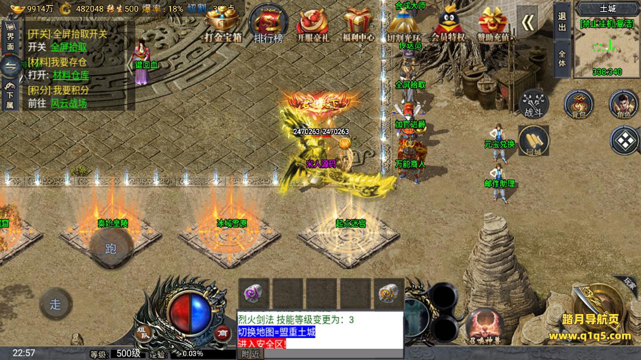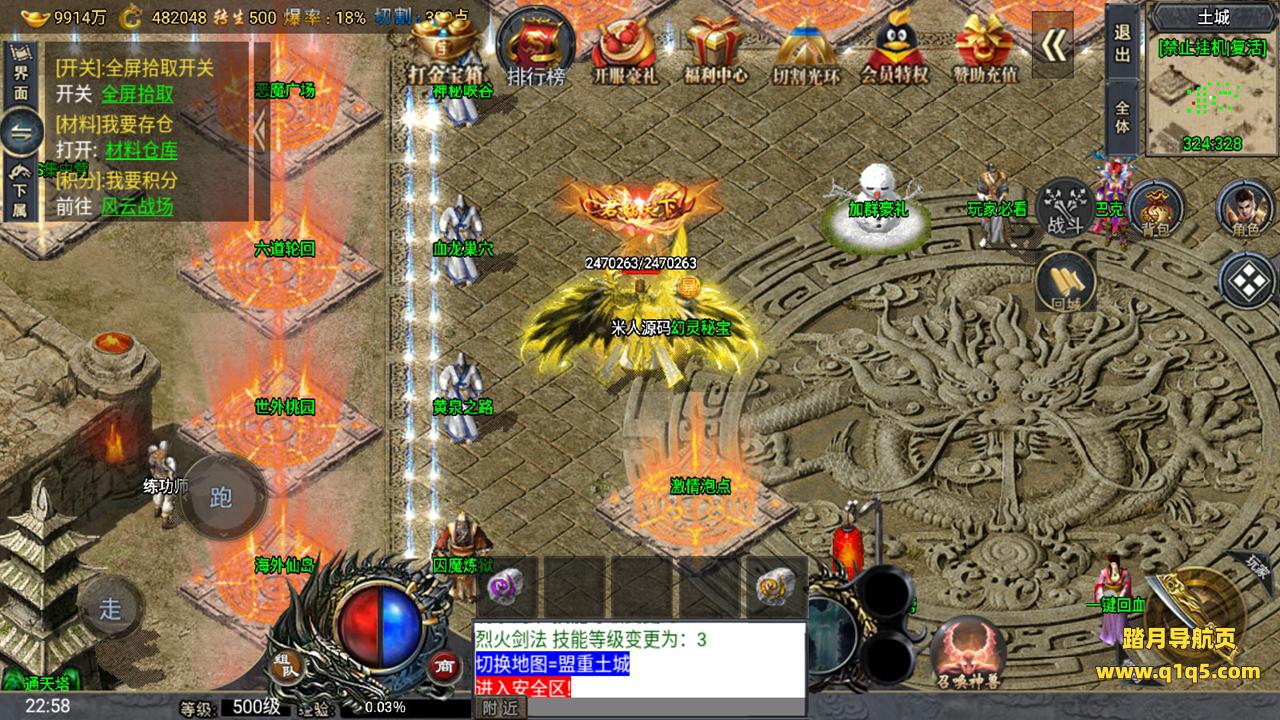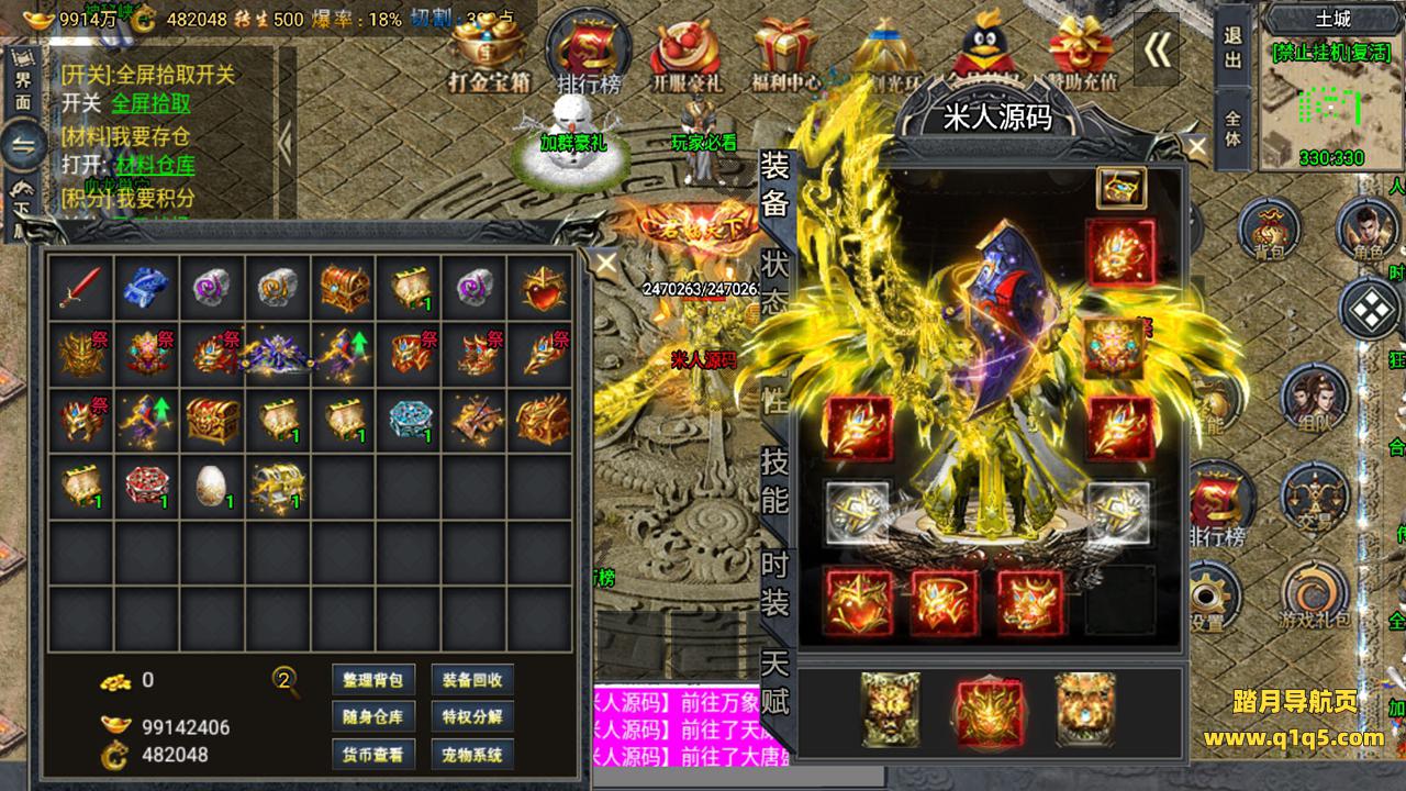 下面我们来测试下游戏里的功能。好了。其他功能自行测试吧。更多的游戏资源请访问www.q1q5.com下载,我们所有游戏资源均单独制作的有视频架设教程,让小白也可以快速上手游戏架设,体验做GM的乐趣!