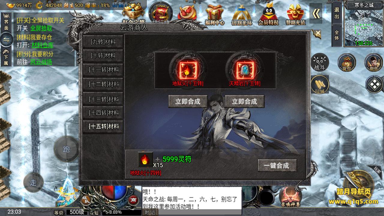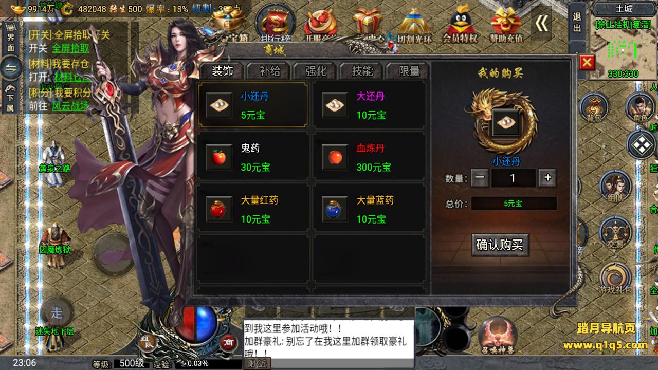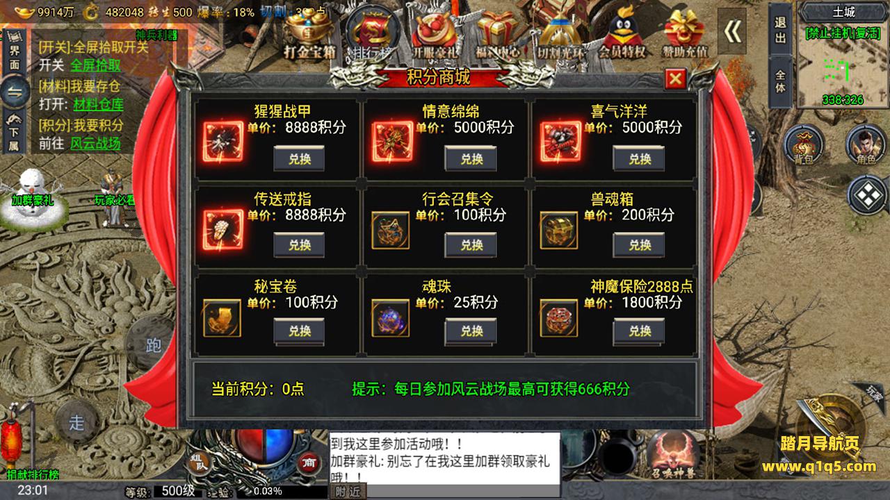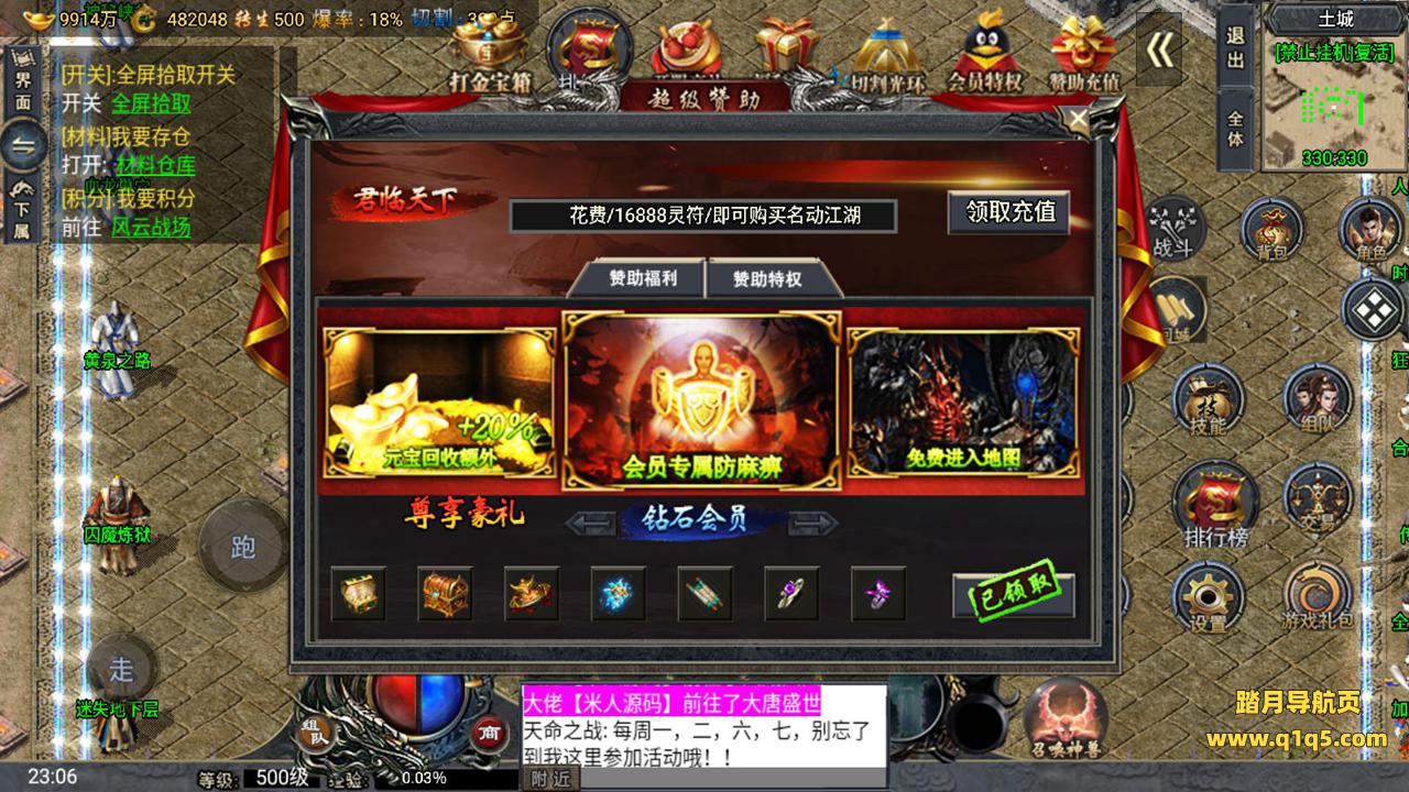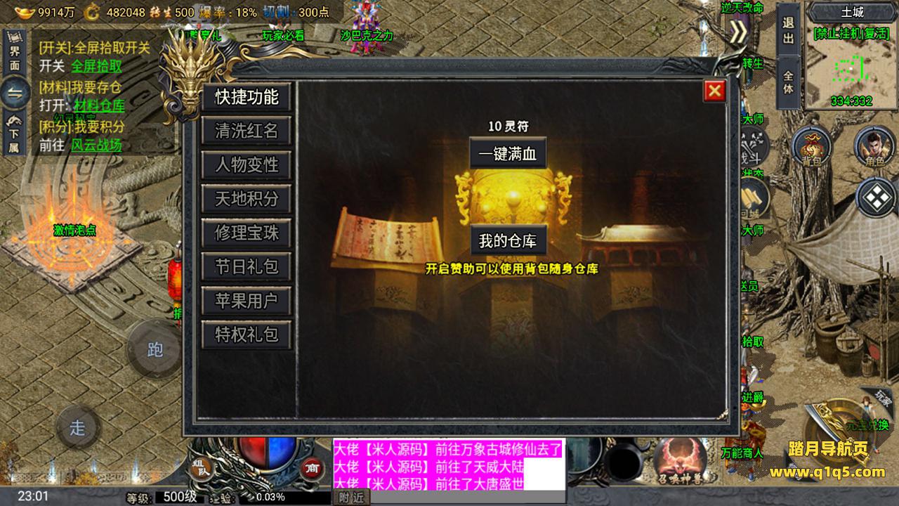 下面我们来测试下游戏里的功能。好了。其他功能自行测试吧。更多的游戏资源请访问www.q1q5.com下载,我们所有游戏资源均单独制作的有视频架设教程,让小白也可以快速上手游戏架设,体验做GM的乐趣!