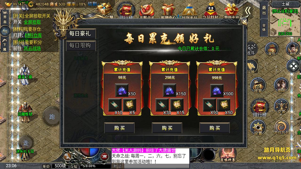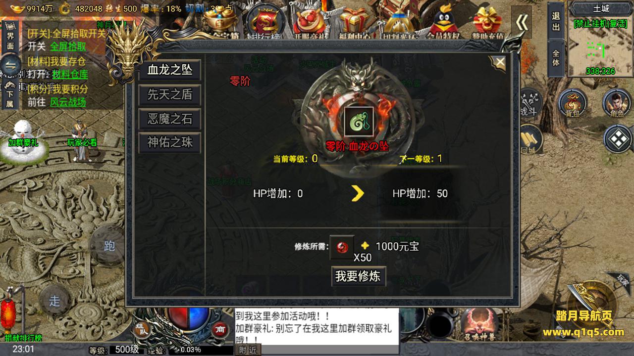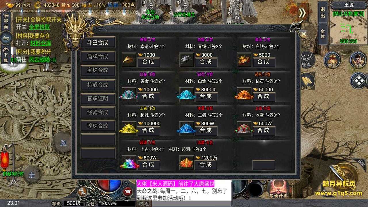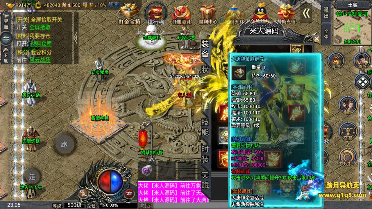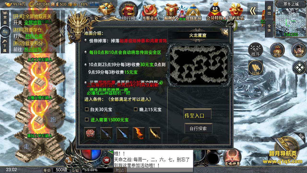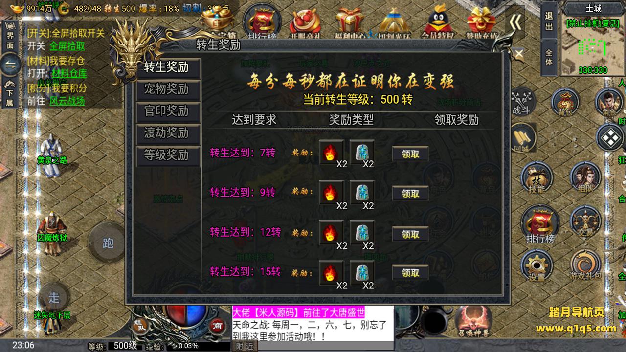 下面我们来测试下游戏里的功能。好了。其他功能自行测试吧。更多的游戏资源请访问www.q1q5.com下载,我们所有游戏资源均单独制作的有视频架设教程,让小白也可以快速上手游戏架设,体验做GM的乐趣!