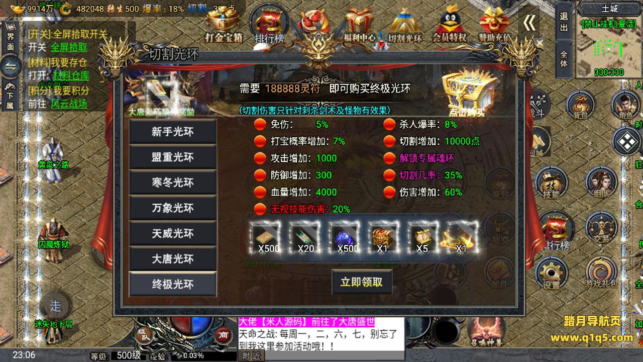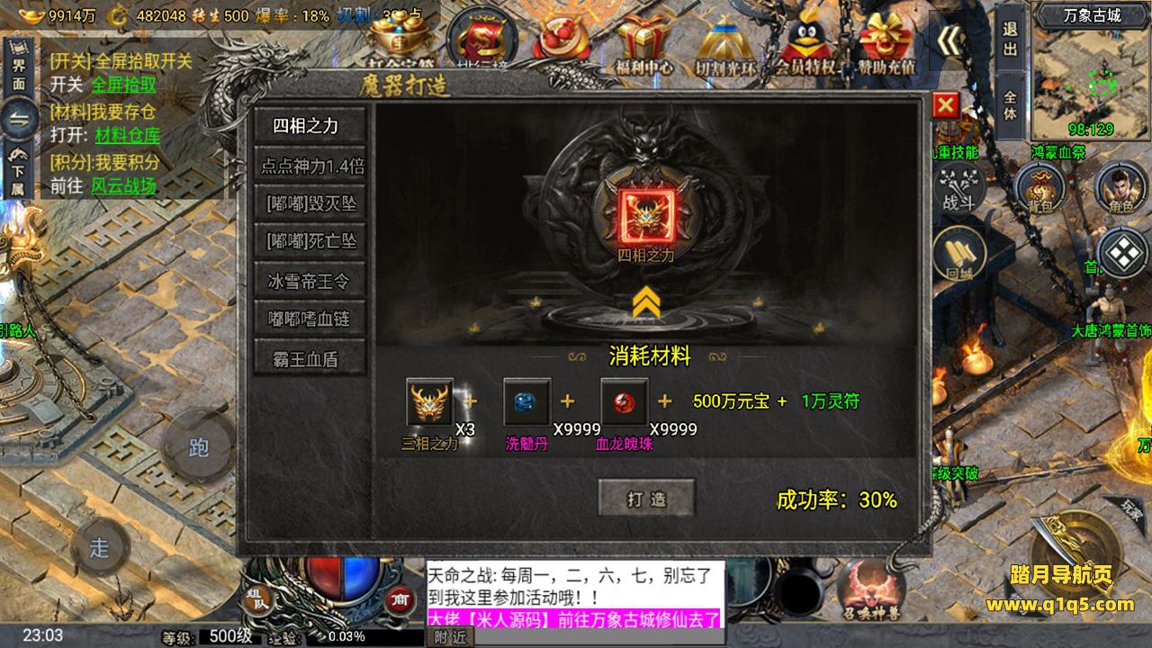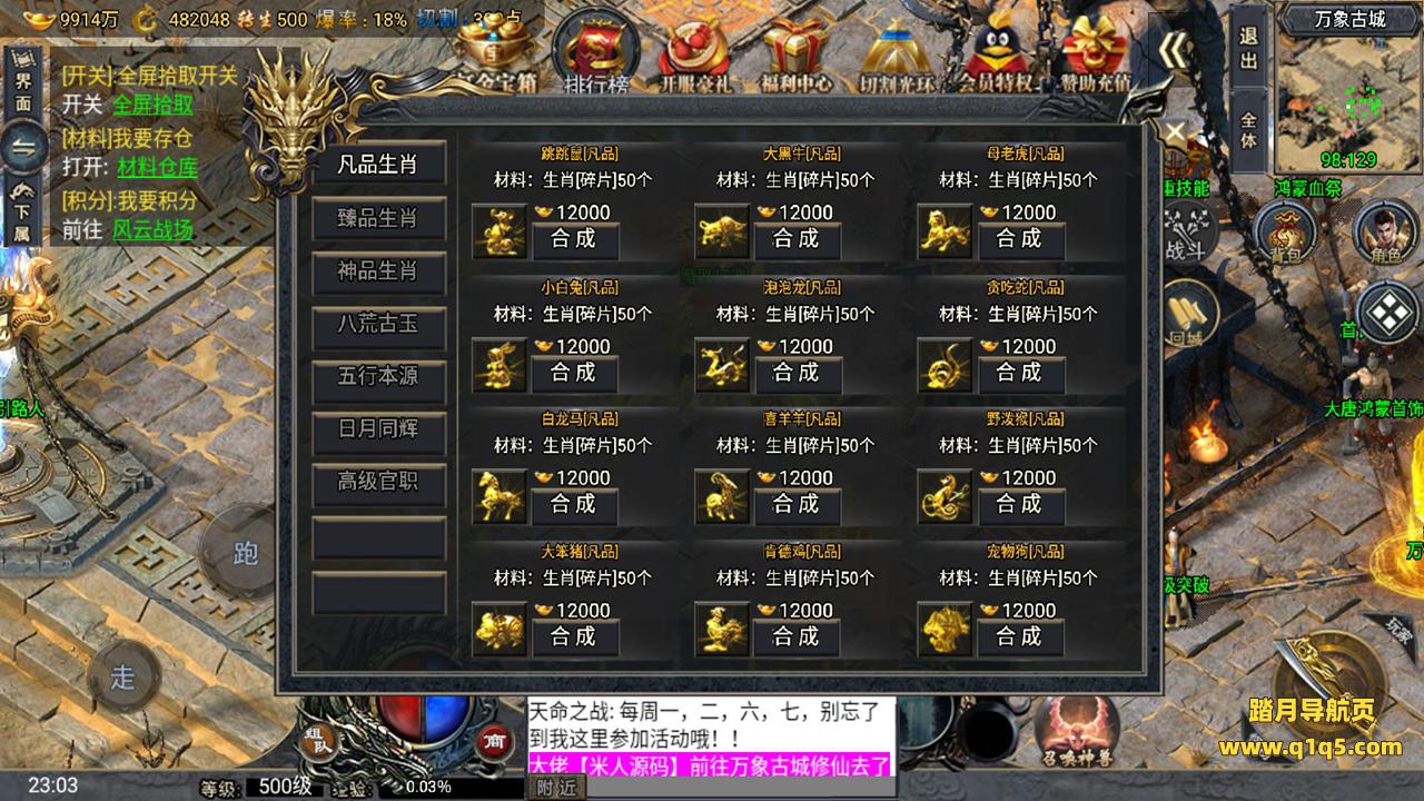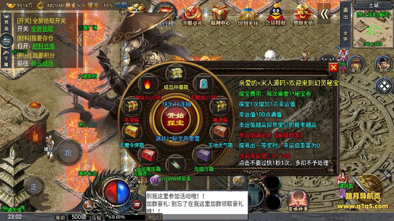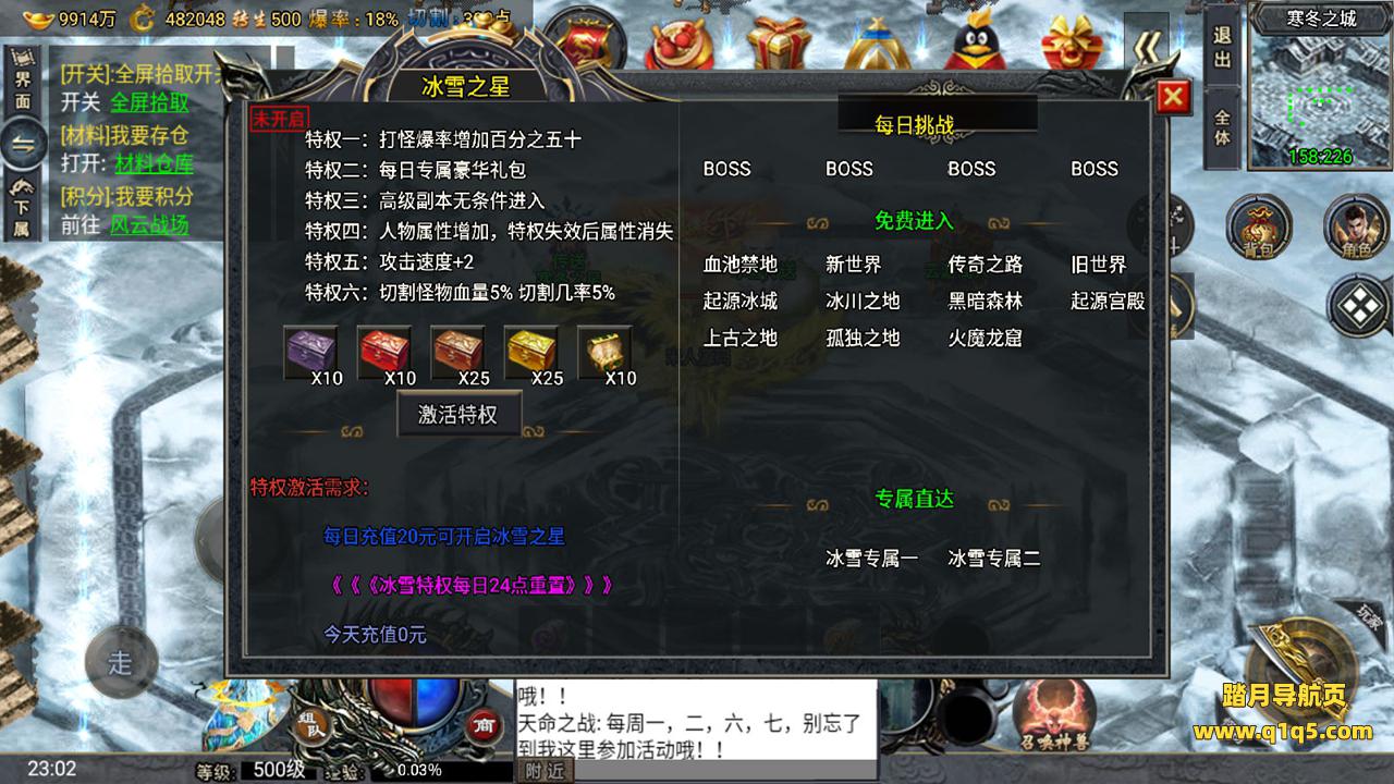 下面我们来测试下游戏里的功能。好了。其他功能自行测试吧。更多的游戏资源请访问www.q1q5.com下载,我们所有游戏资源均单独制作的有视频架设教程,让小白也可以快速上手游戏架设,体验做GM的乐趣!