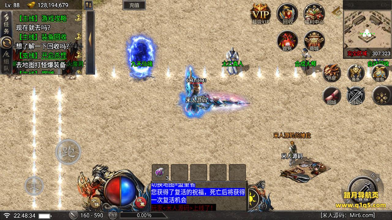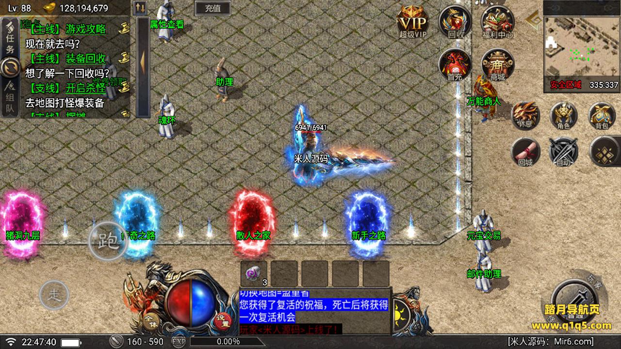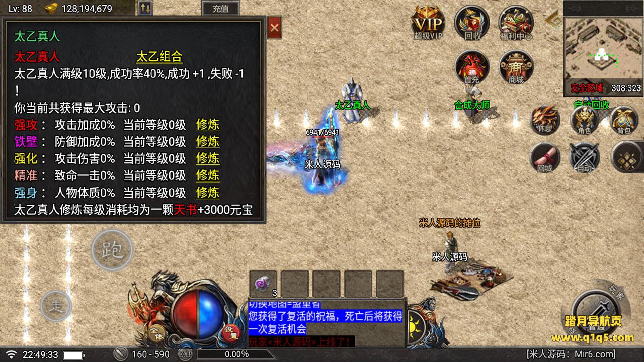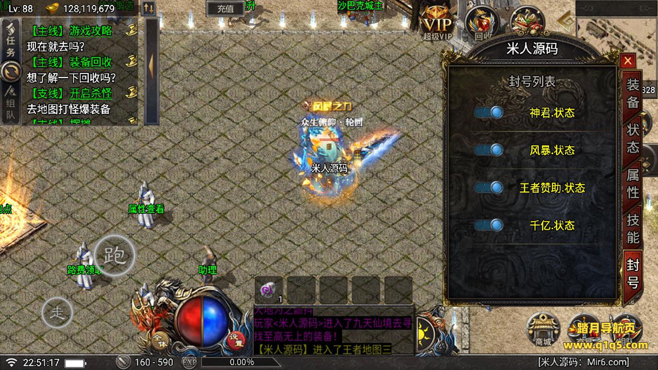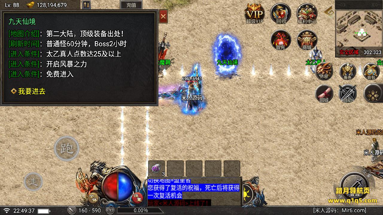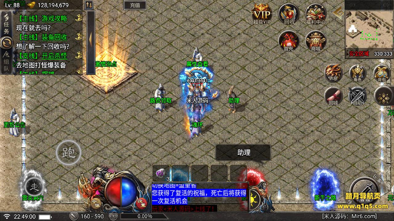 好了,下面我们在测试下游戏里的功能吧。好了,其他功能就自行测试吧。更多的游戏资源可以访问www.q1q5.com下载,我们每款游戏资源均单独制作了独立的视频架设教程。让小白也可以快速上手游戏架设,快来体验做GM的乐趣吧!