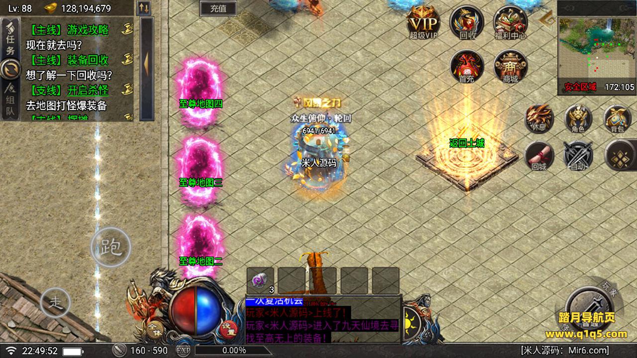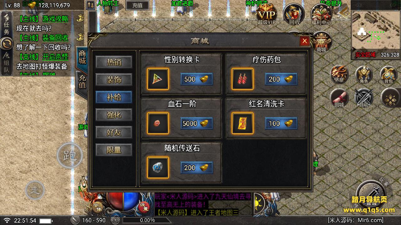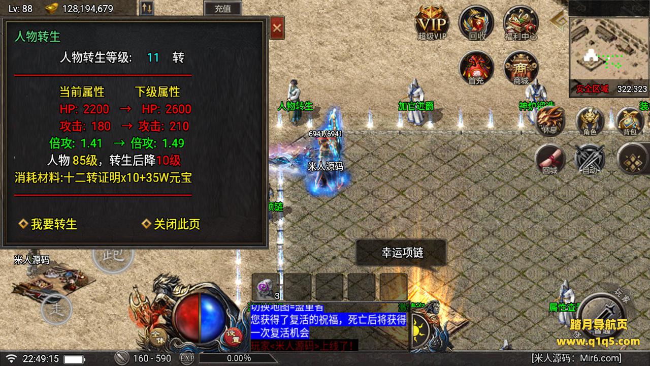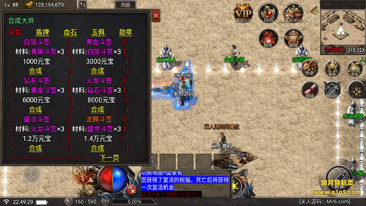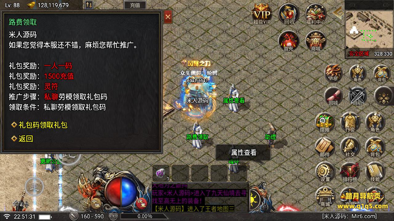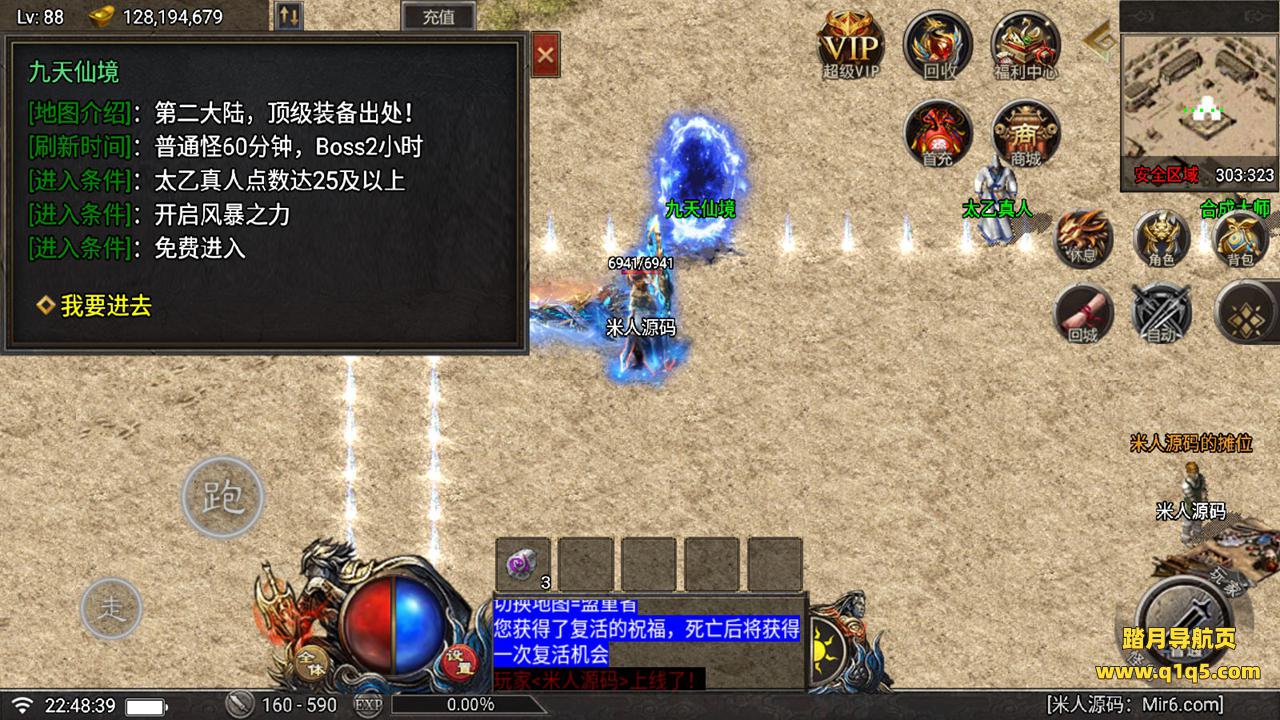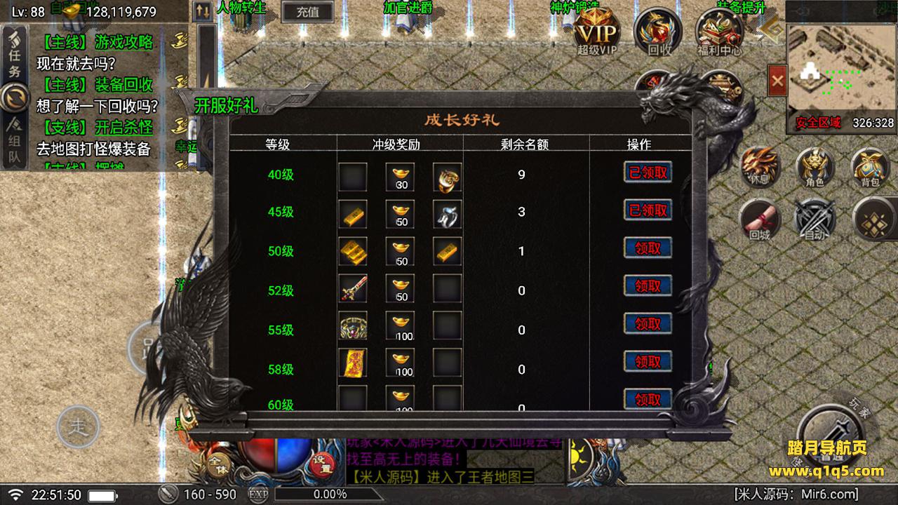 好了,下面我们在测试下游戏里的功能吧。好了,其他功能就自行测试吧。更多的游戏资源可以访问www.q1q5.com下载,我们每款游戏资源均单独制作了独立的视频架设教程。让小白也可以快速上手游戏架设,快来体验做GM的乐趣吧!