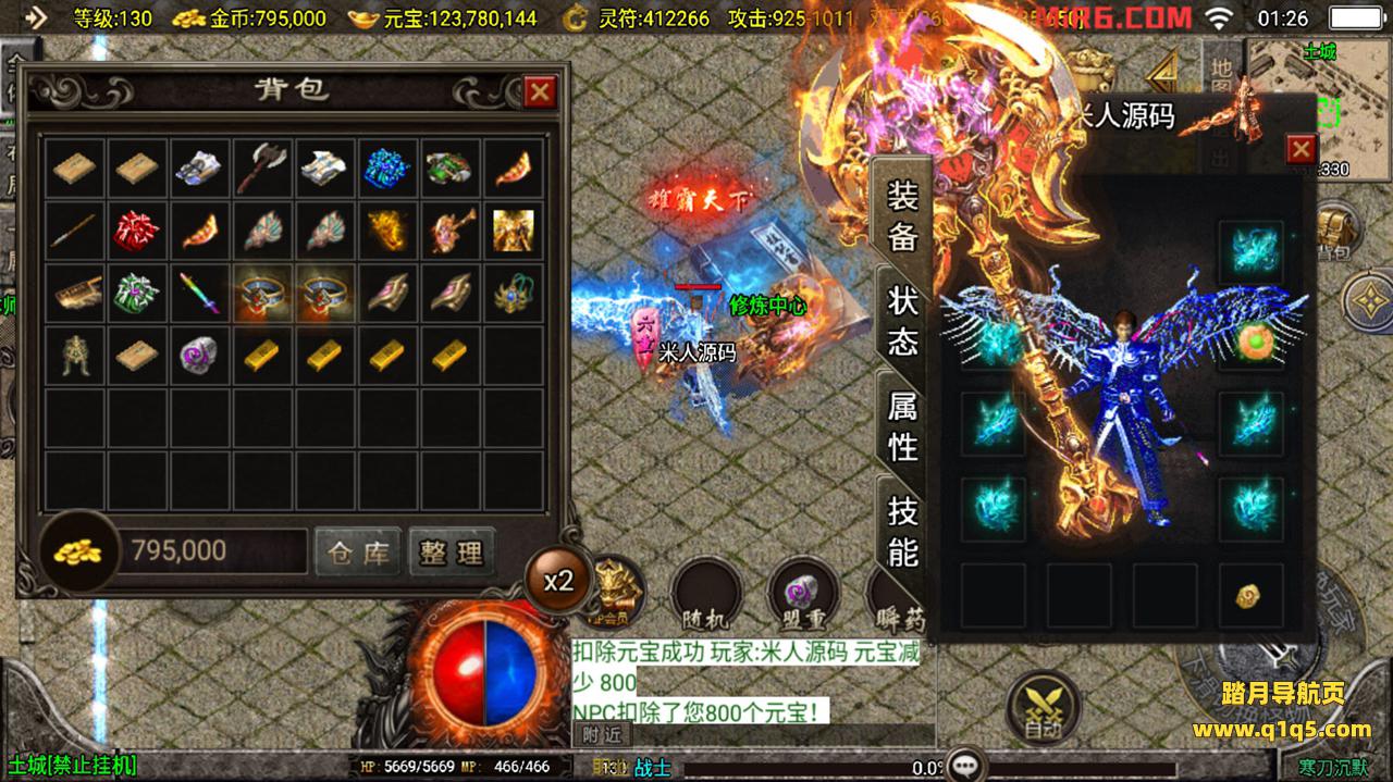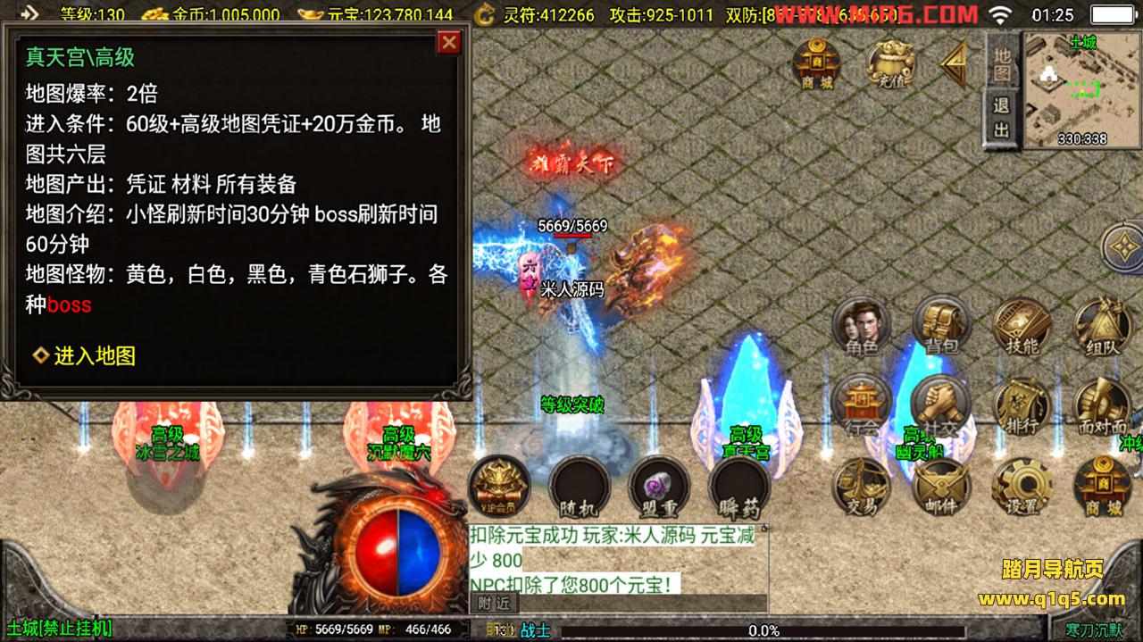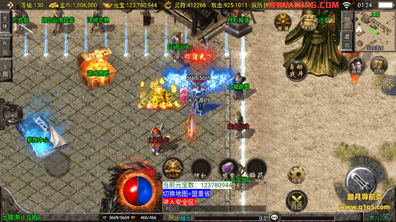 下面我们测试下游戏里的功能。好了,其他功能自行测试吧。更多的游戏资源请访问www.q1q5.com下载,我们每款游戏资源均单独制作了独立的视频架设教程,让小白也可以快速上手游戏架设,体验做GM的乐趣!
