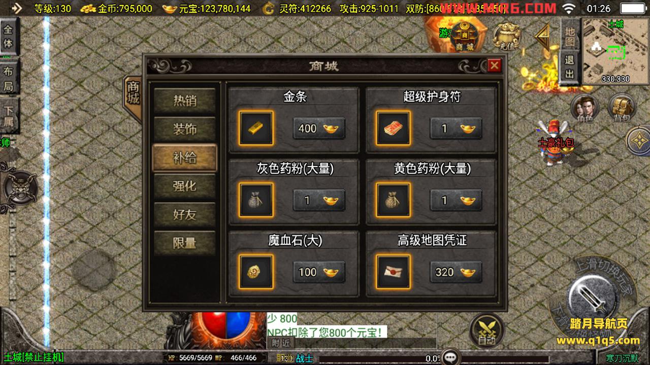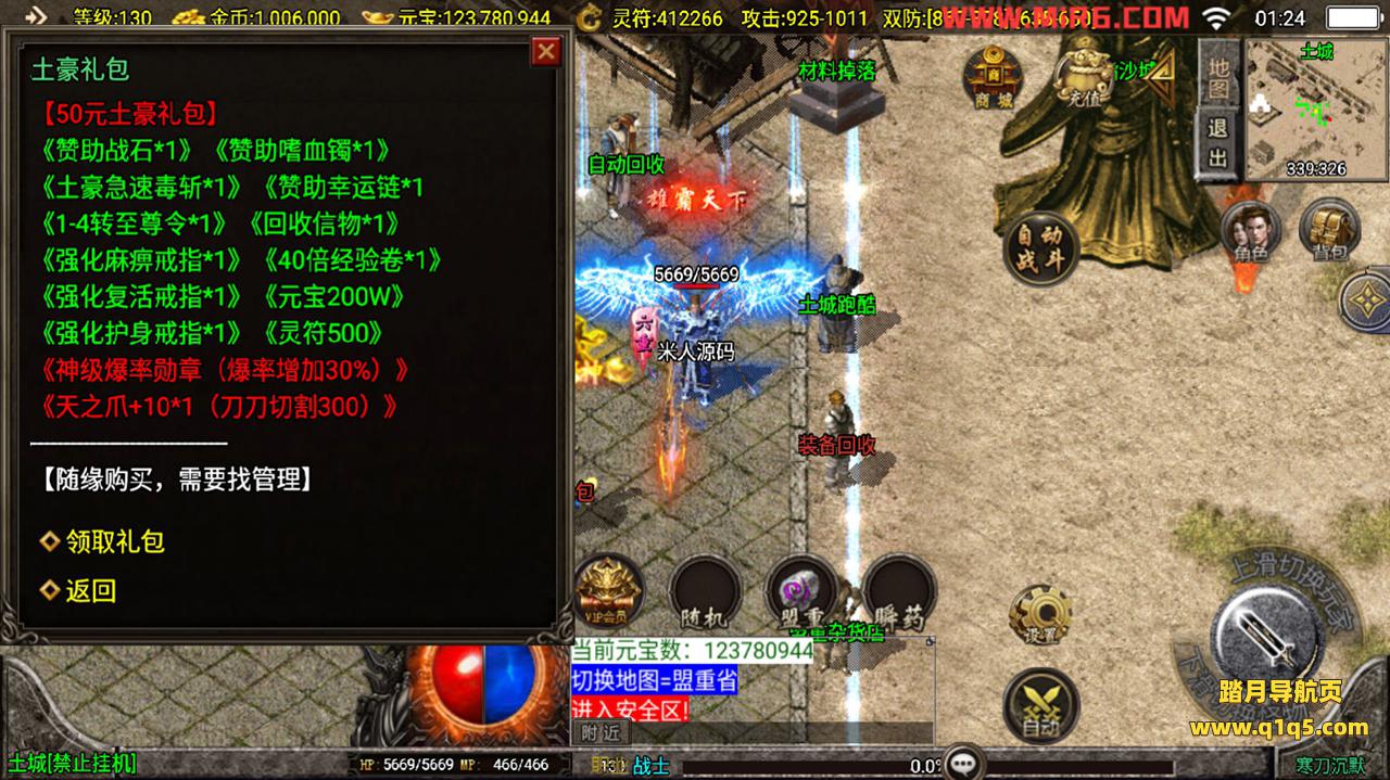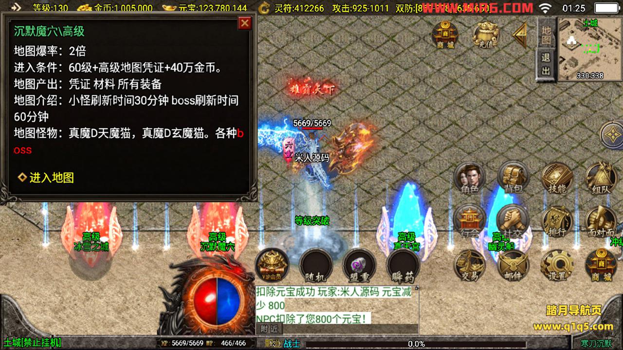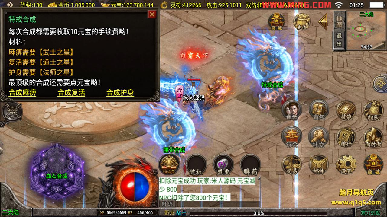 下面我们测试下游戏里的功能。好了,其他功能自行测试吧。更多的游戏资源请访问www.q1q5.com下载,我们每款游戏资源均单独制作了独立的视频架设教程,让小白也可以快速上手游戏架设,体验做GM的乐趣!