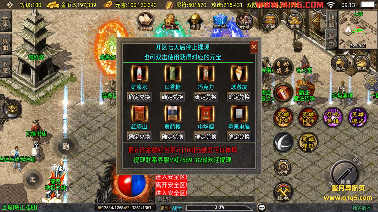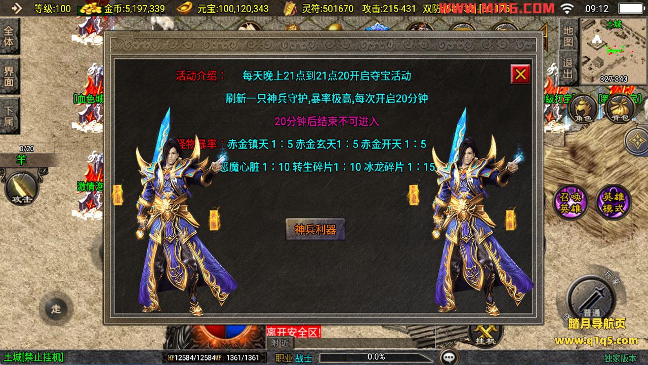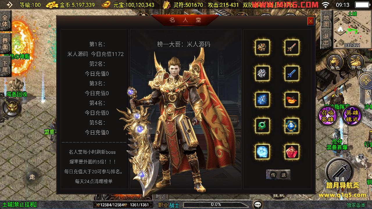 下面我们来测试下游戏里的功能看看。好了。其他功能就自行测试吧。更多的游戏资源可以访问www.q1q5.com下载,我们每款游戏资源均单独制作了独立的视频架设教程,让小白也可以快速上手游戏架设,快来体验自己做GM的乐趣吧!
