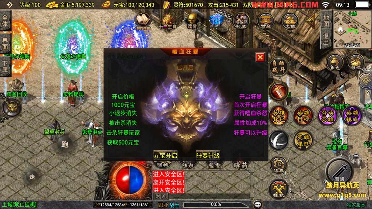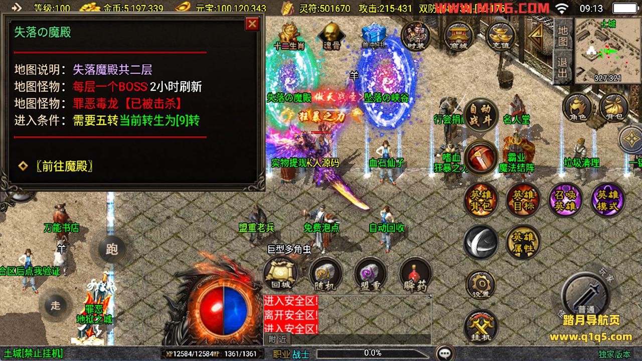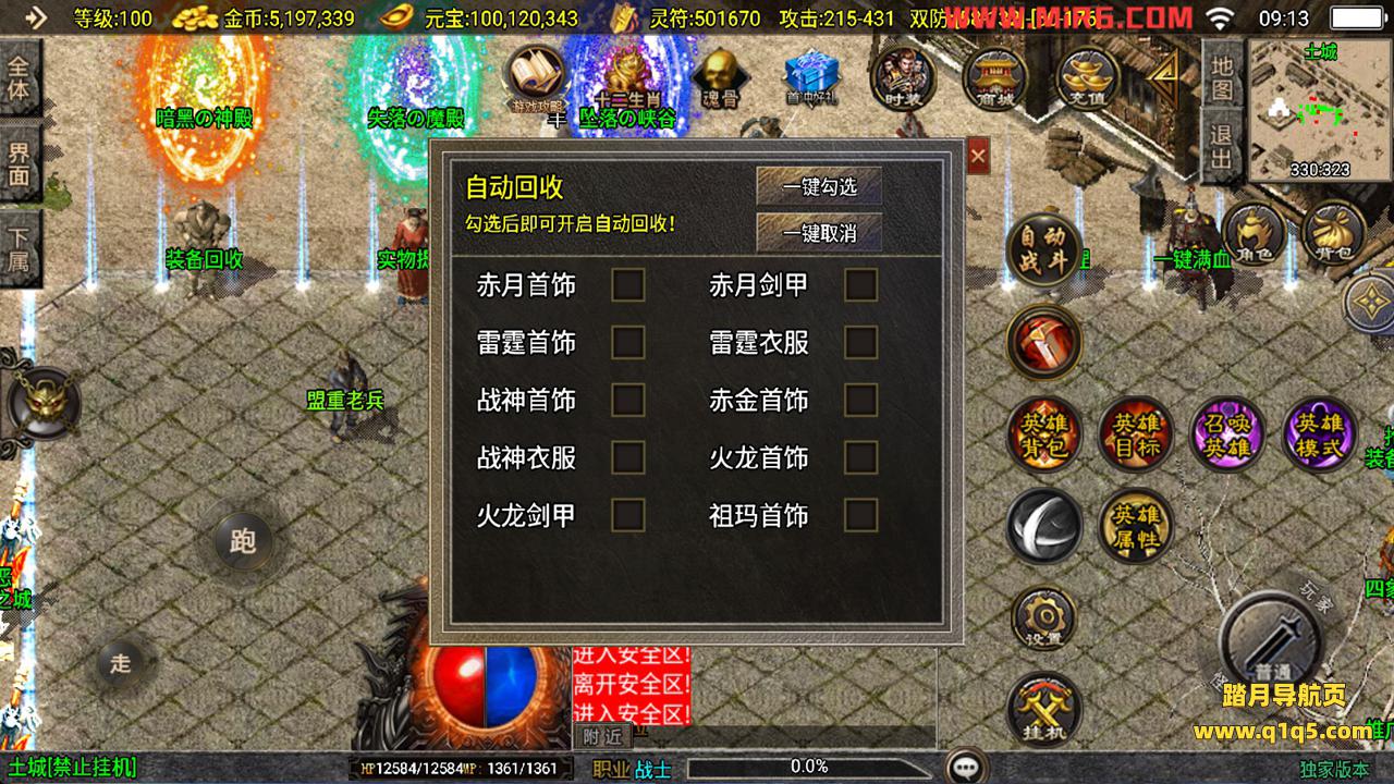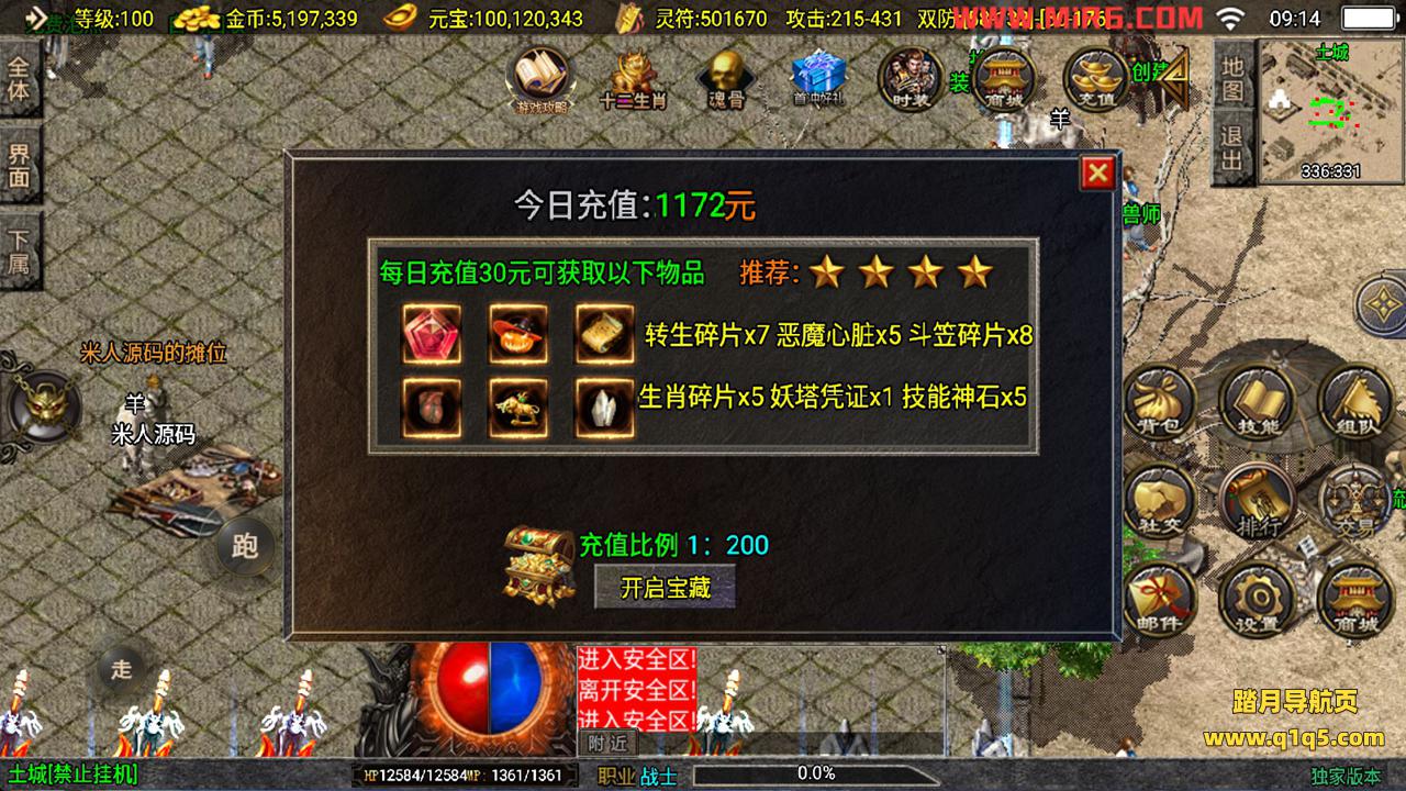 下面我们来测试下游戏里的功能看看。好了。其他功能就自行测试吧。更多的游戏资源可以访问www.q1q5.com下载,我们每款游戏资源均单独制作了独立的视频架设教程,让小白也可以快速上手游戏架设,快来体验自己做GM的乐趣吧!