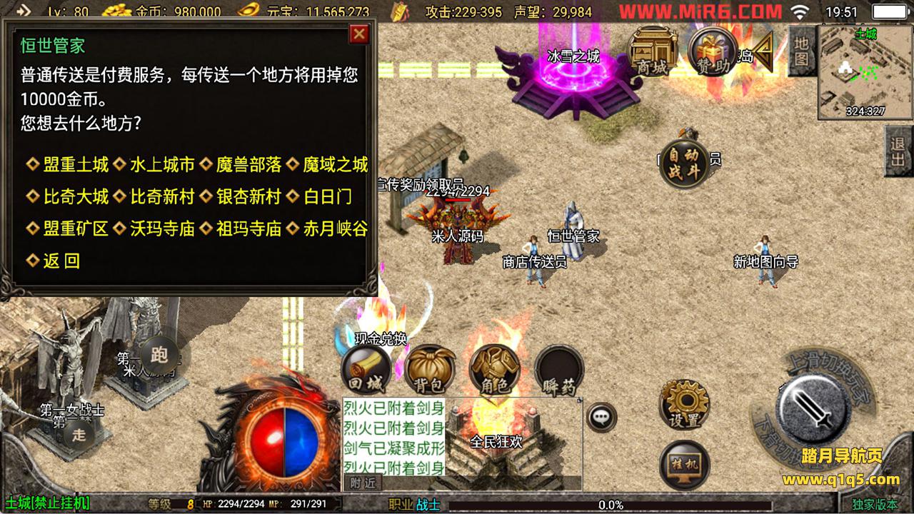 下面我们来测试下游戏里的功能看看。好了,其他功能就自行测试吧。更多的游戏资源可以访问www.q1q5.com下载,我们每款游戏资源均单独制作了独立的视频架设教程,让小白也可以快速上手游戏架设,快来体验自己做GM的乐趣吧!