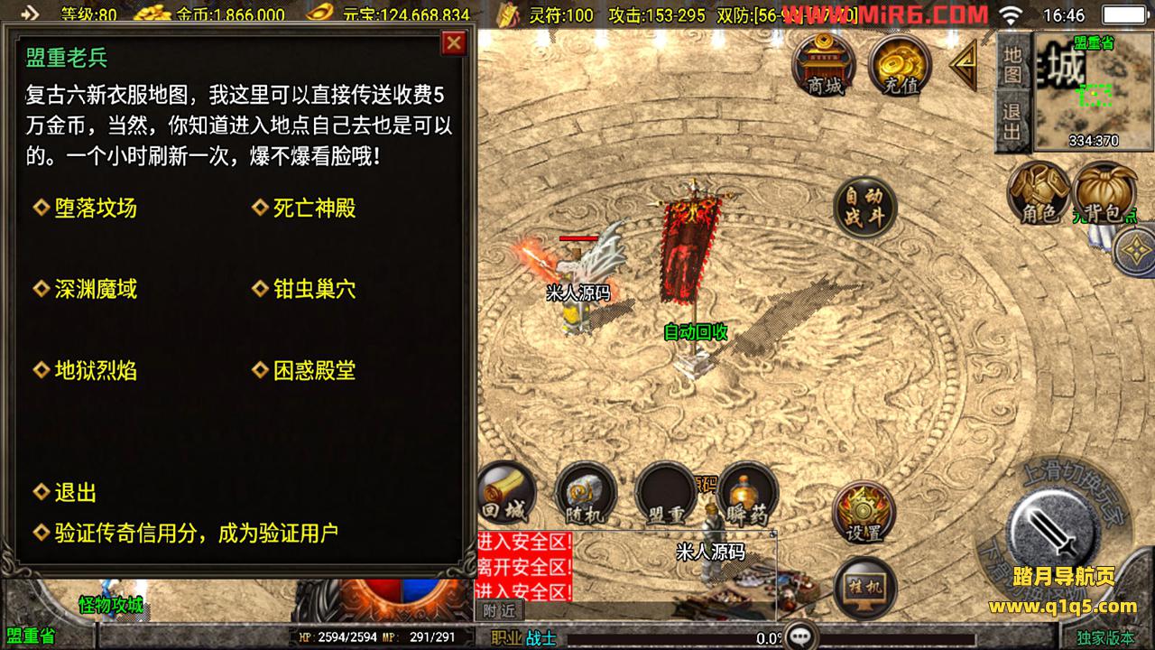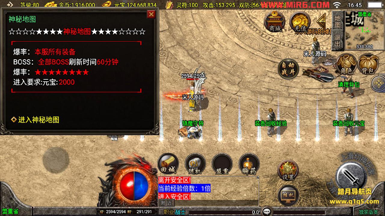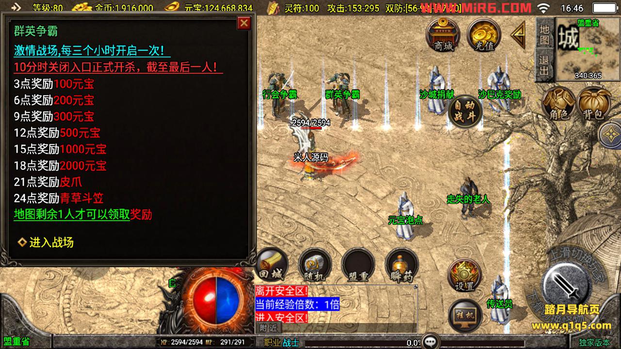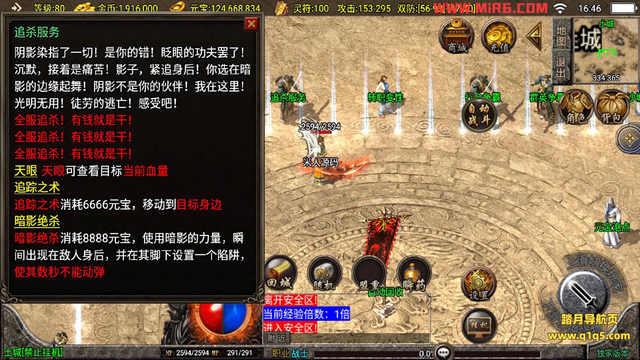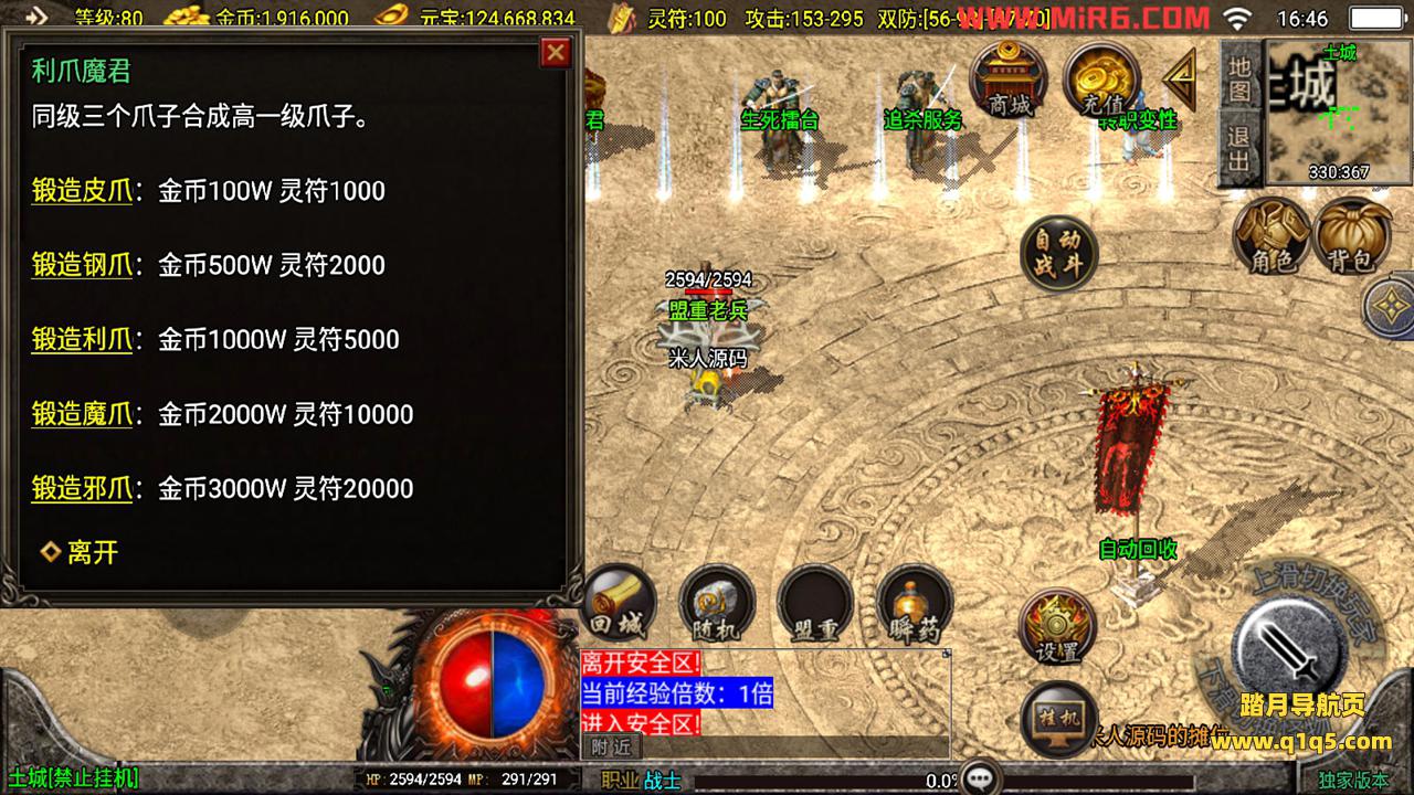 下面我们测试下游戏里的功能。好了,其他功能自行测试吧。更多的游戏资源请访问www.q1q5.com下载,我们每款游戏资源均单独制作了独立的视频架设教程,让小白也可以快速上手游戏架设,体验做GM的乐趣!