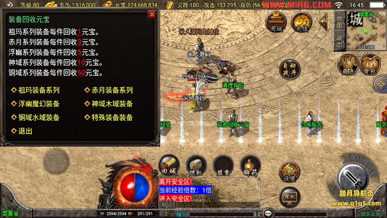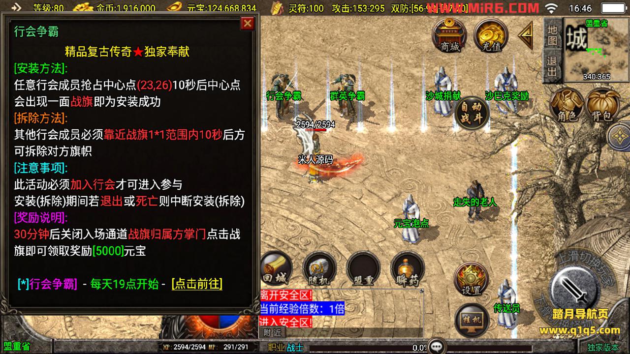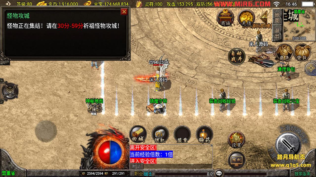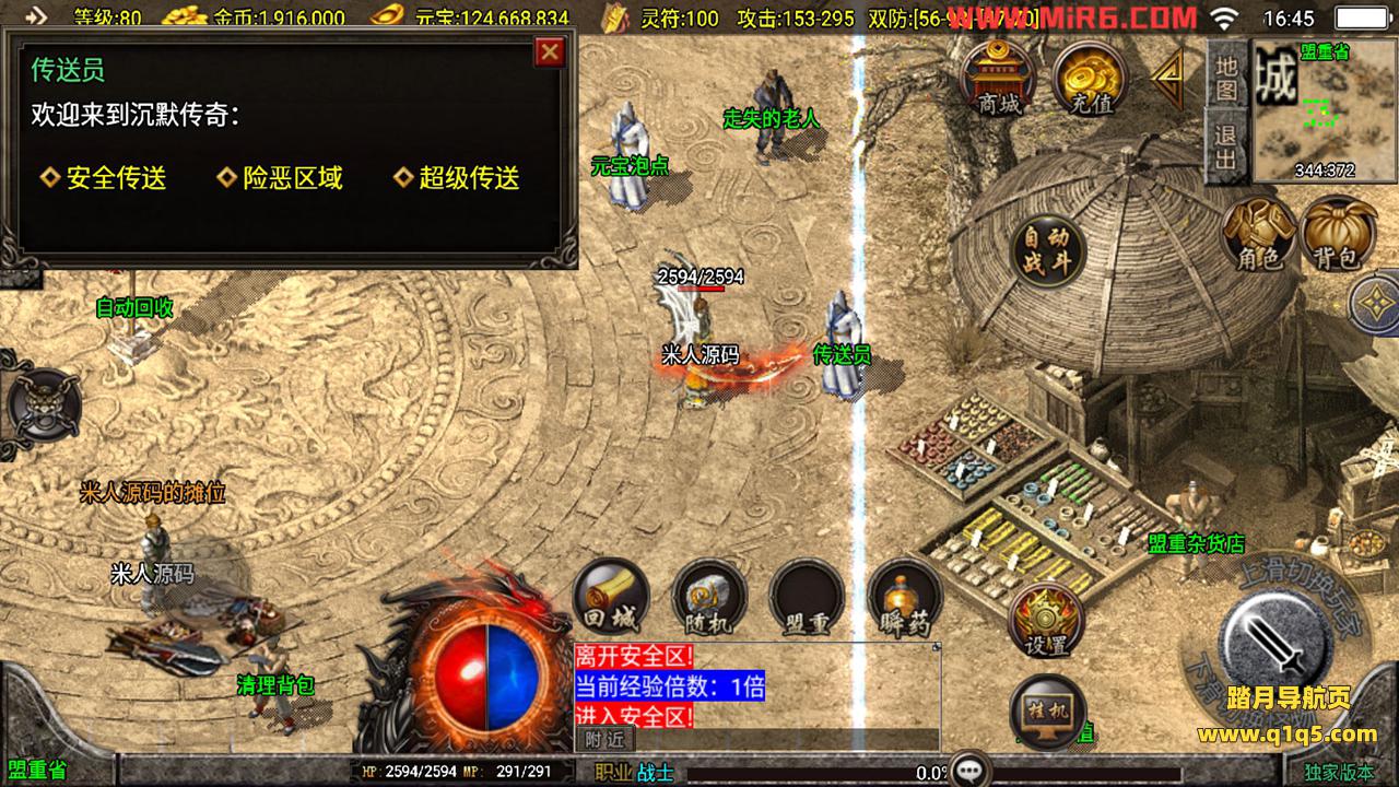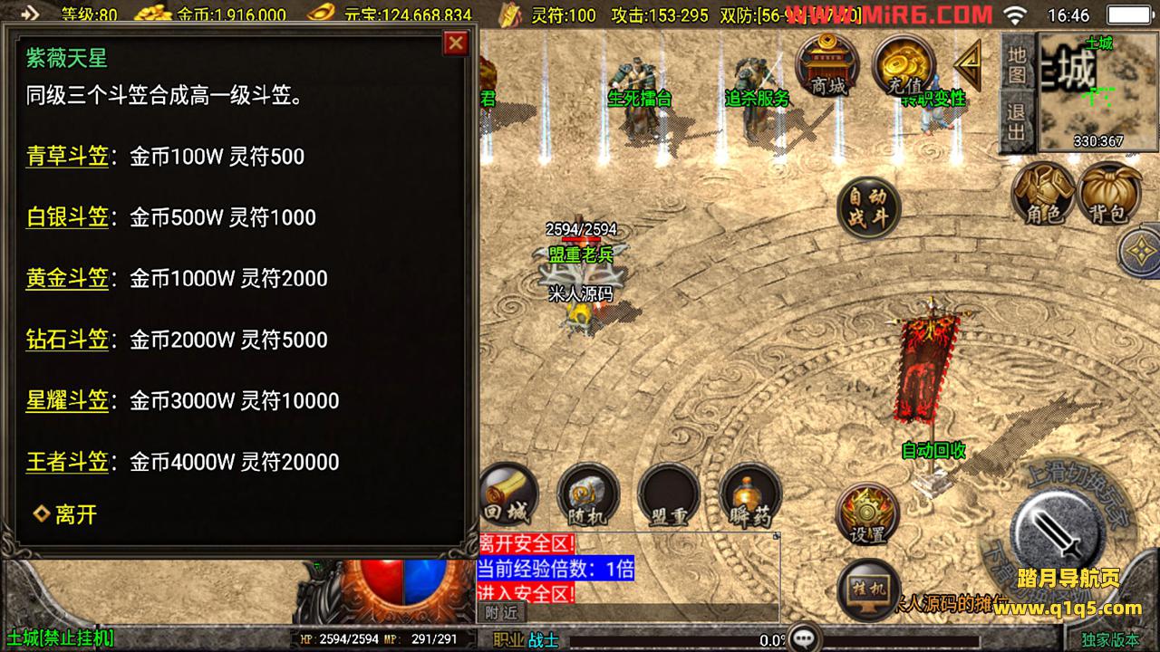 下面我们测试下游戏里的功能。好了,其他功能自行测试吧。更多的游戏资源请访问www.q1q5.com下载,我们每款游戏资源均单独制作了独立的视频架设教程,让小白也可以快速上手游戏架设,体验做GM的乐趣!
