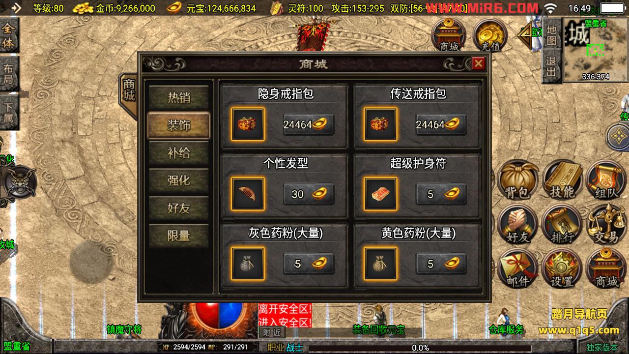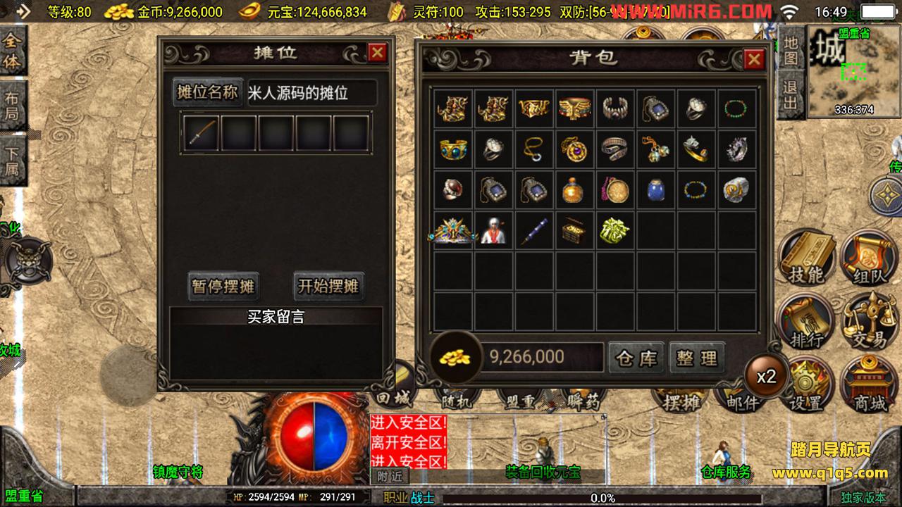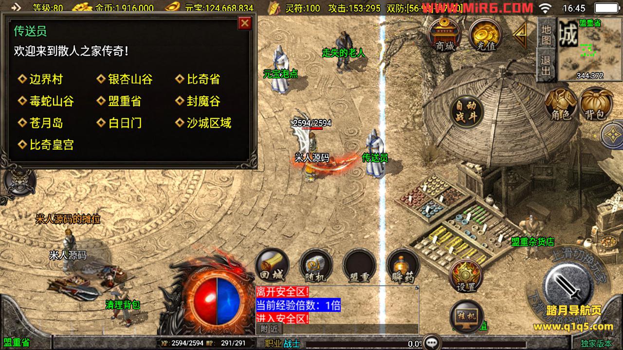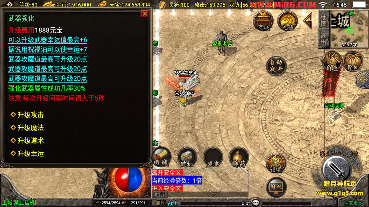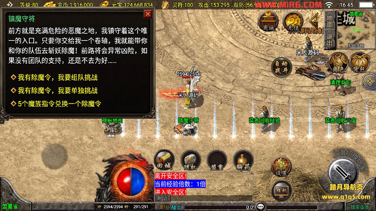 下面我们测试下游戏里的功能。好了,其他功能自行测试吧。更多的游戏资源请访问www.q1q5.com下载,我们每款游戏资源均单独制作了独立的视频架设教程,让小白也可以快速上手游戏架设,体验做GM的乐趣!