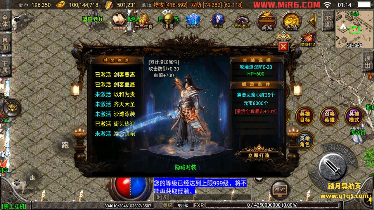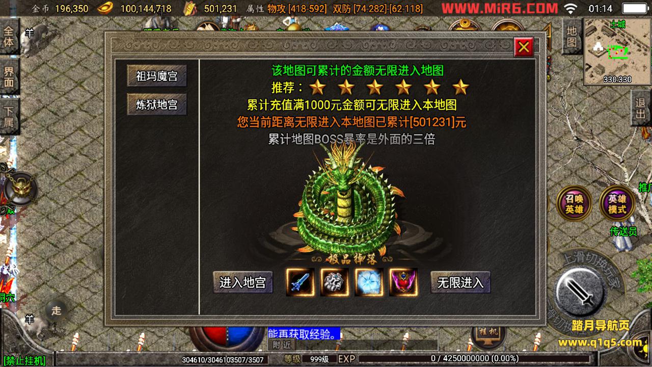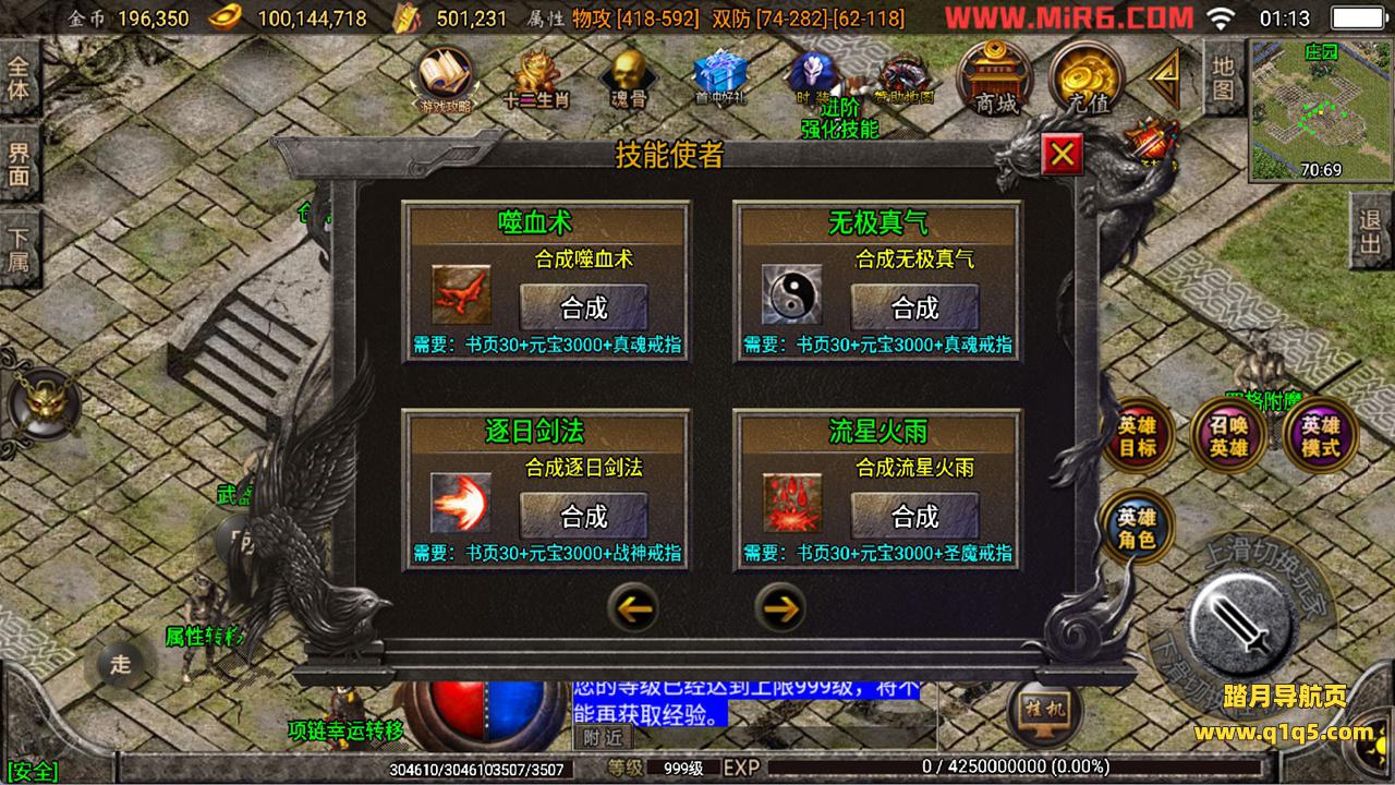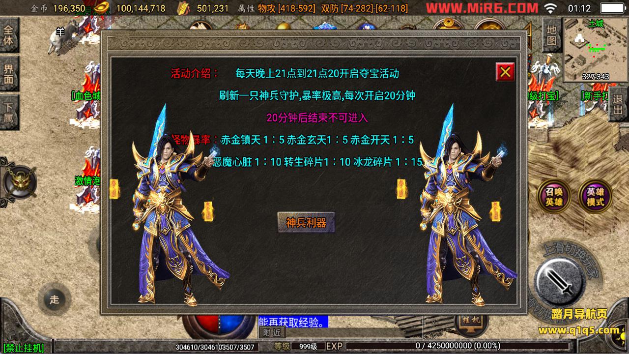 下面我们来测试下游戏里的功能看看。好了,其他功能就自行测试吧。更多的游戏资源可以访问www.q1q5.com下载,我们每款游戏资源均单独制作了独立的视频架设教程,让小白也可以快速上手游戏架设,快来体验自己做GM的乐趣吧!